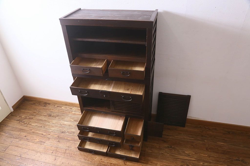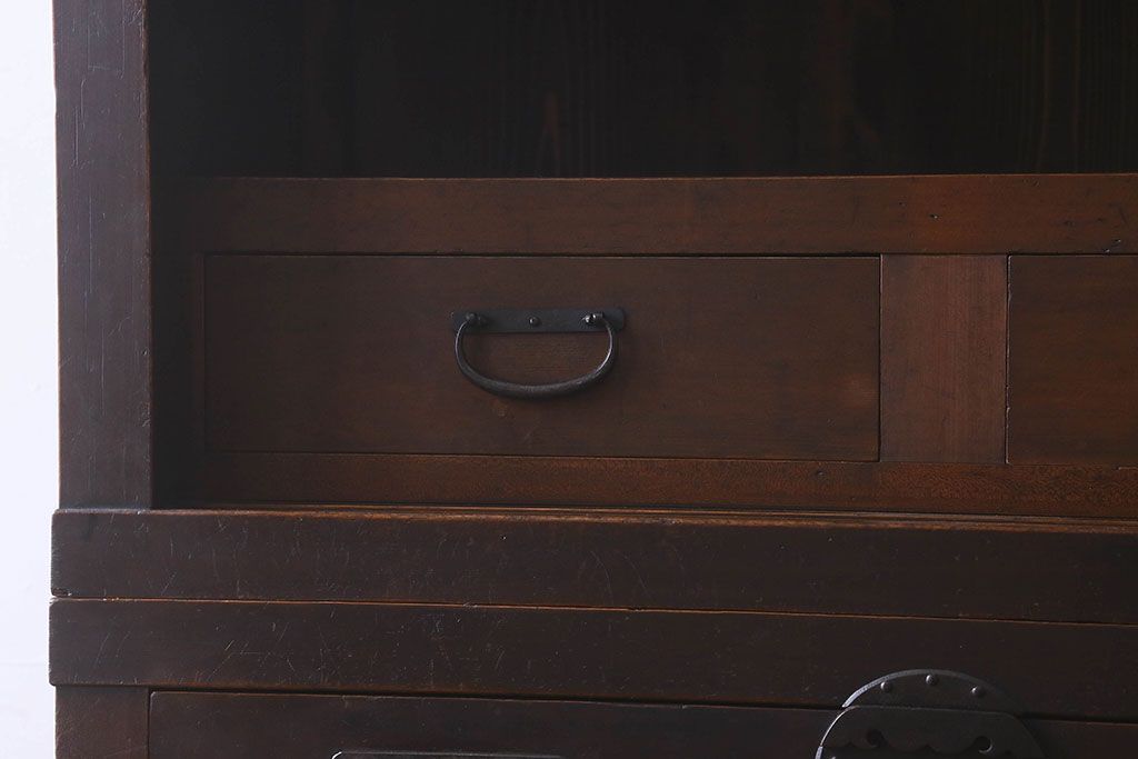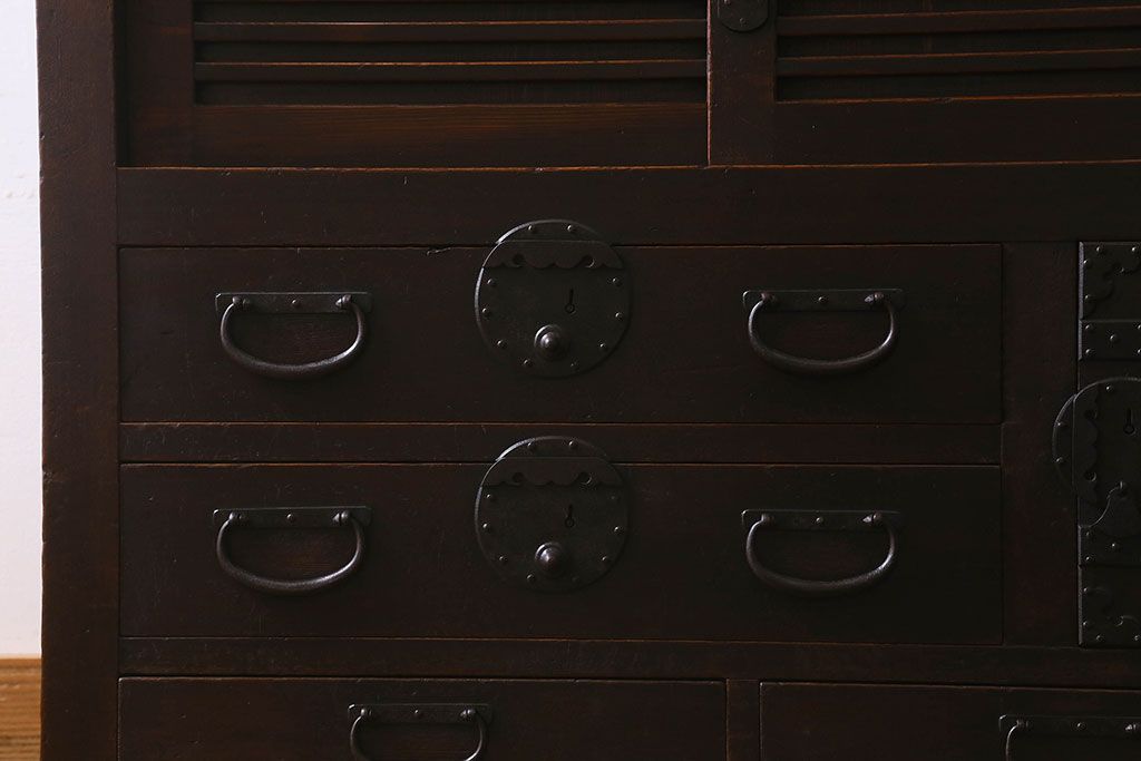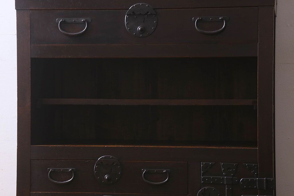 アンティーク家具 和製アンティーク 明治期!古い木製の美濃帳場箪笥(収納箪笥、収納棚)