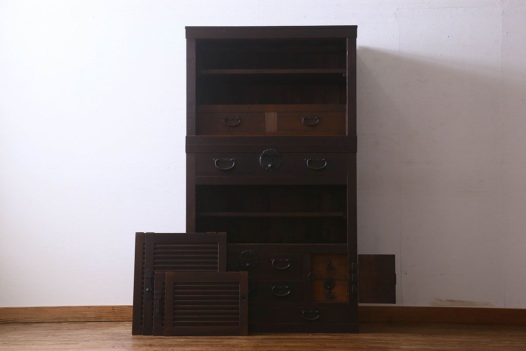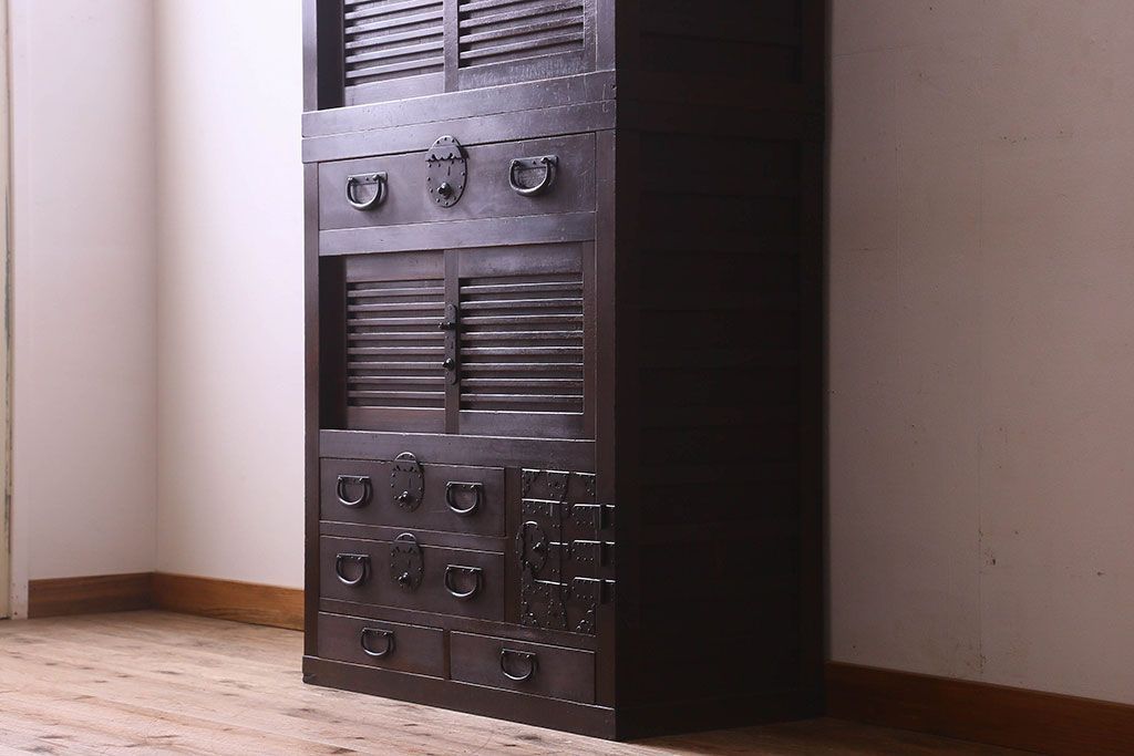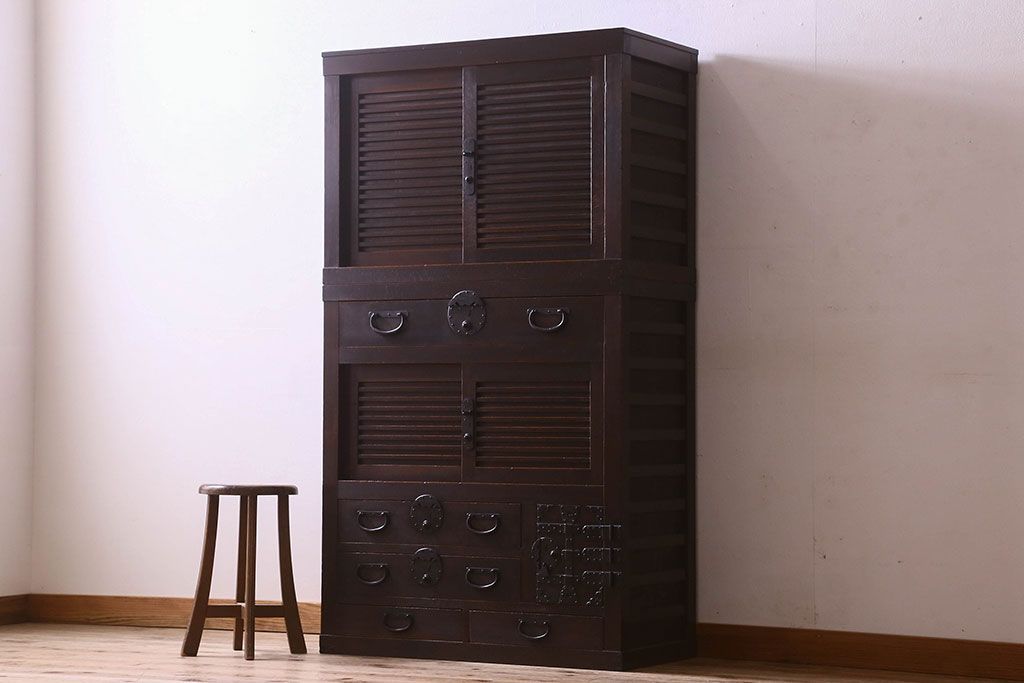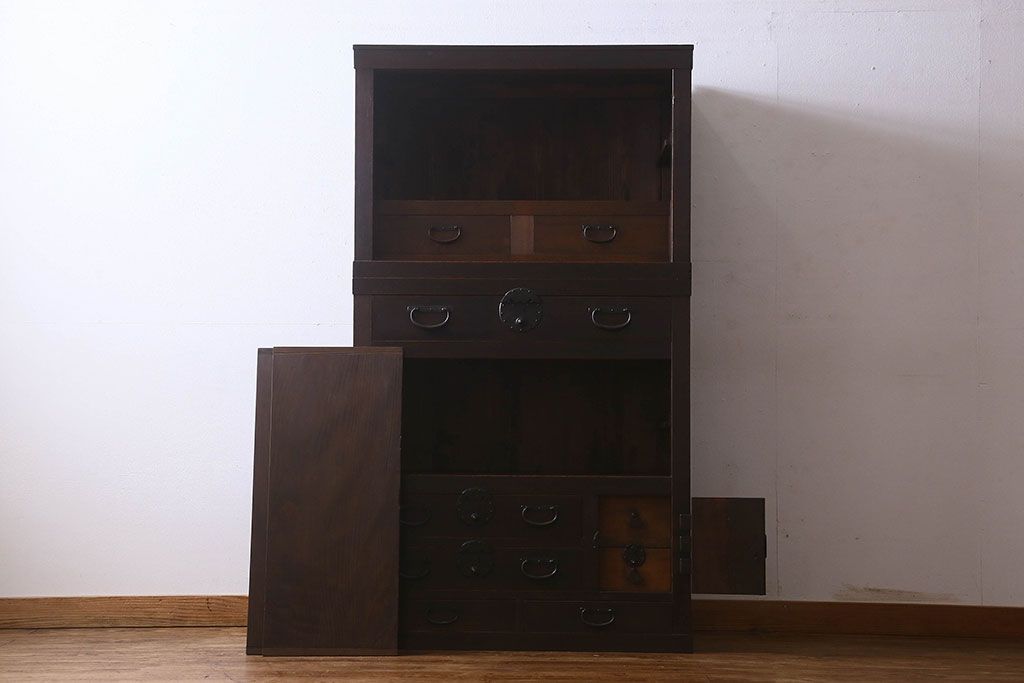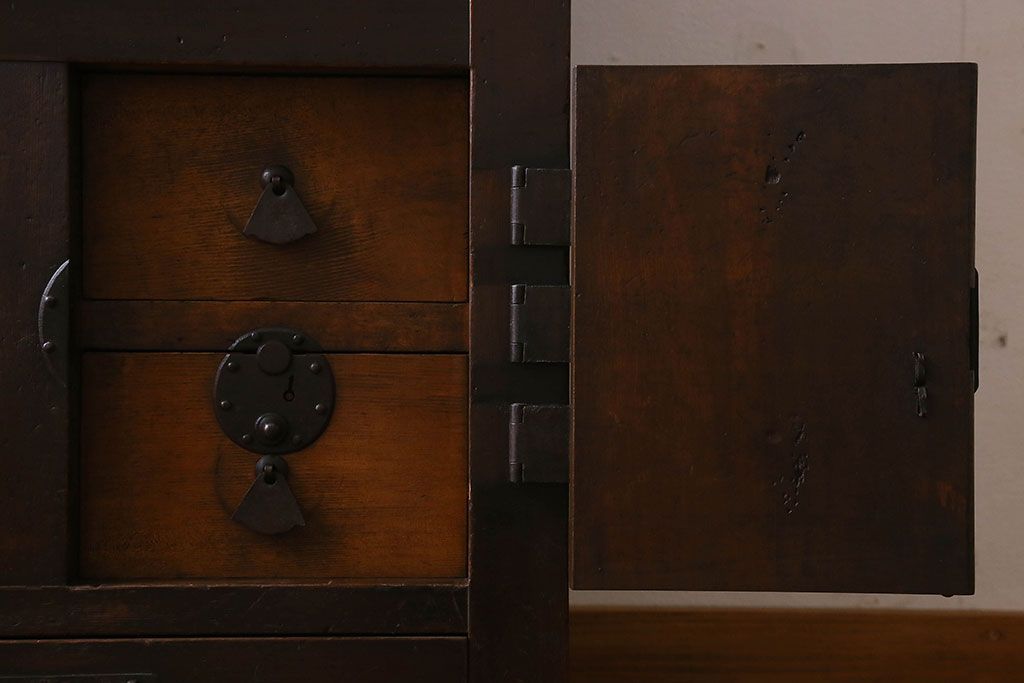 アンティーク家具 和製アンティーク 明治期!古い木製の美濃帳場箪笥(収納箪笥、収納棚)
