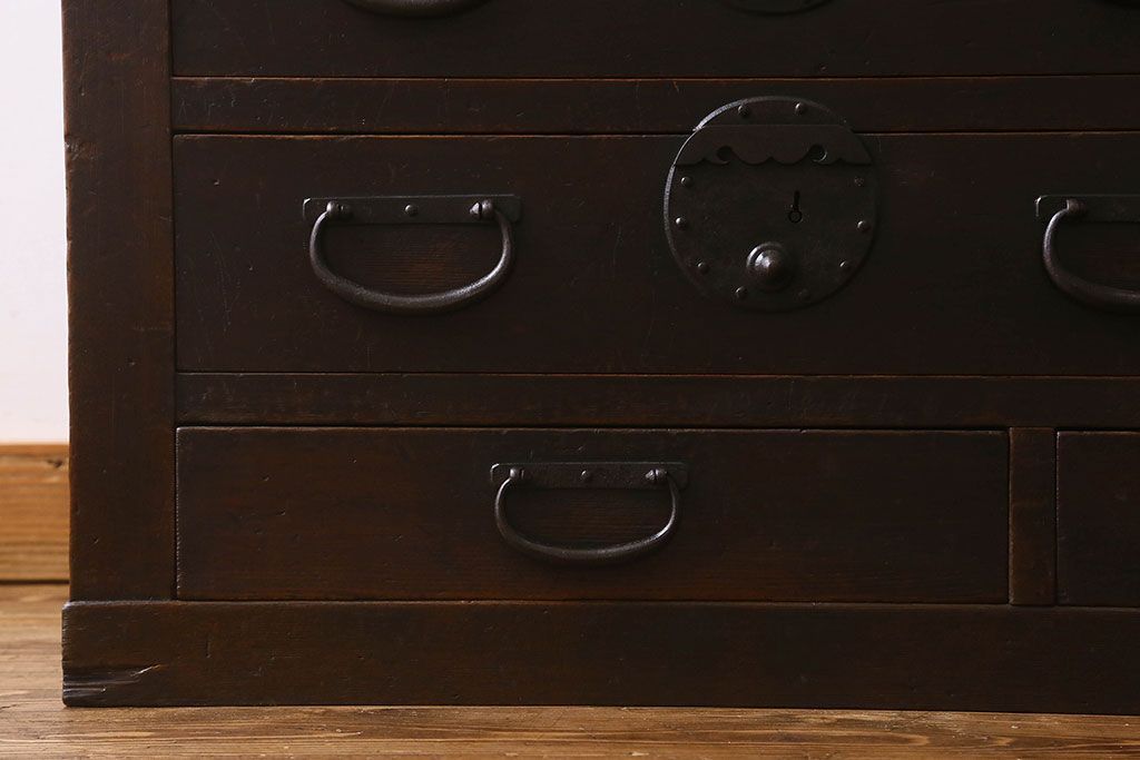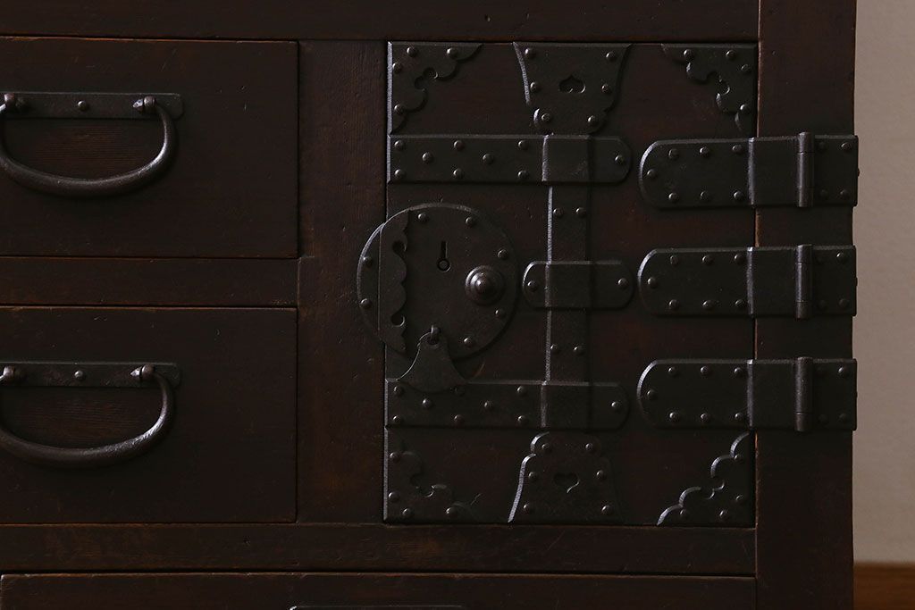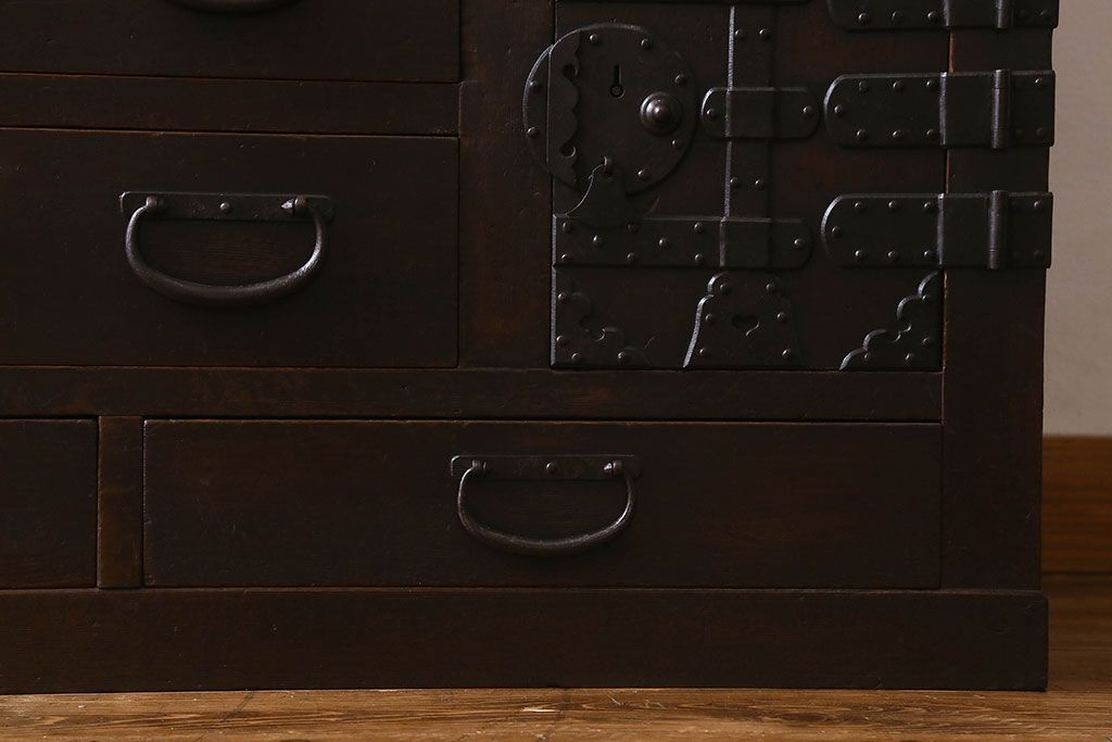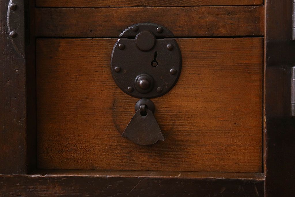 ラフジュ工房> 和箪笥> 船箪笥 > アンティーク家具 和製アンティーク 明治期!古い木製の美濃帳場箪笥(収納箪笥、収納棚)