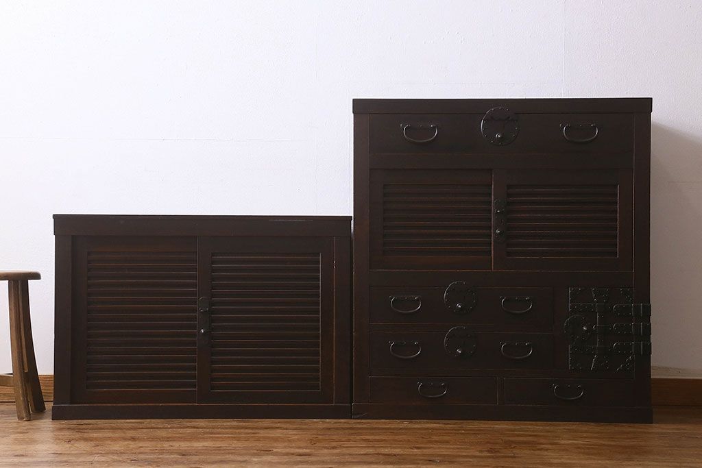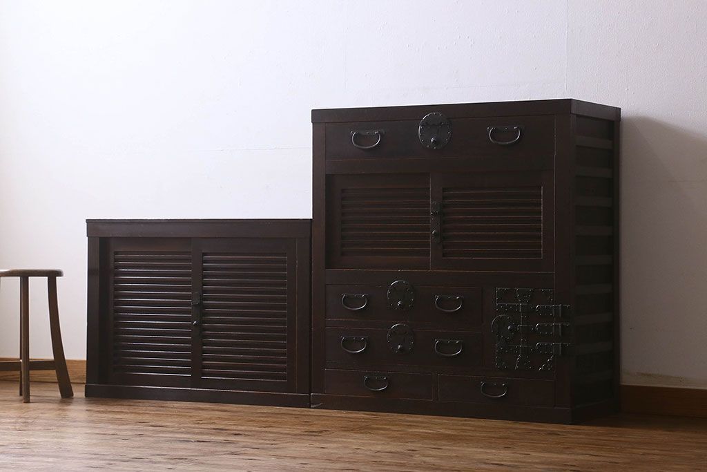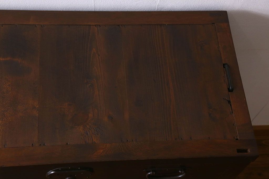 ラフジュ工房> 和箪笥 > アンティーク家具 和製アンティーク 明治期!古い木製の美濃帳場箪笥(収納箪笥、収納棚)