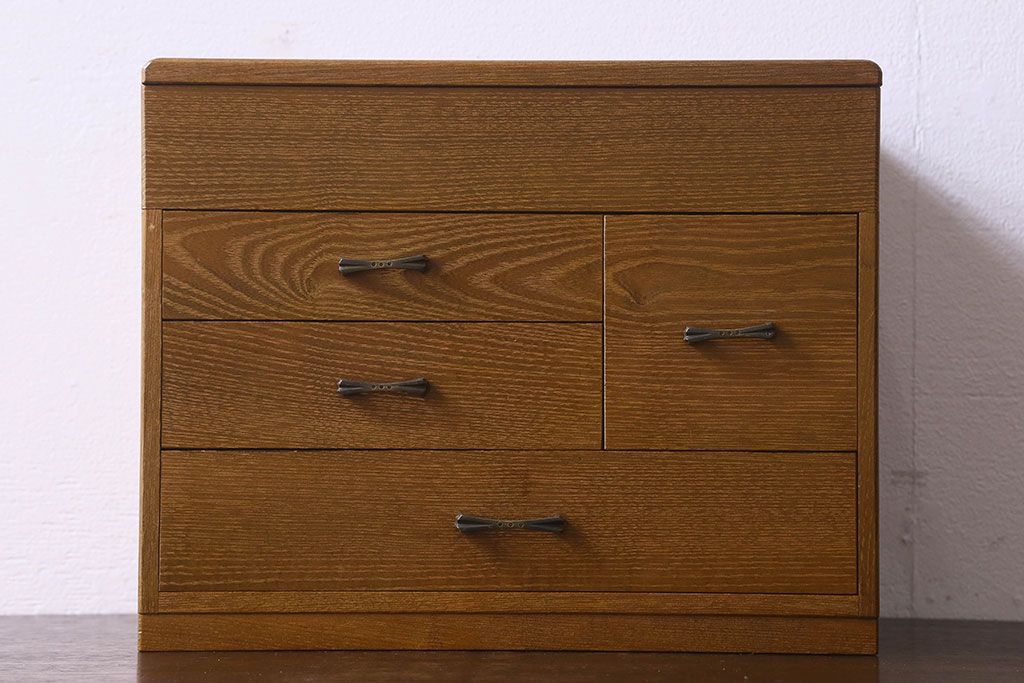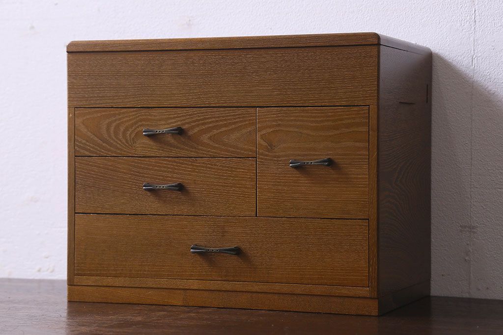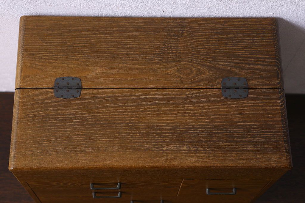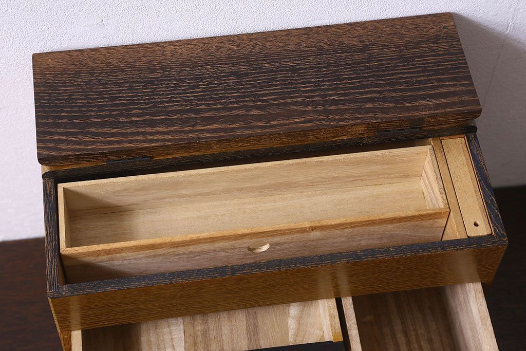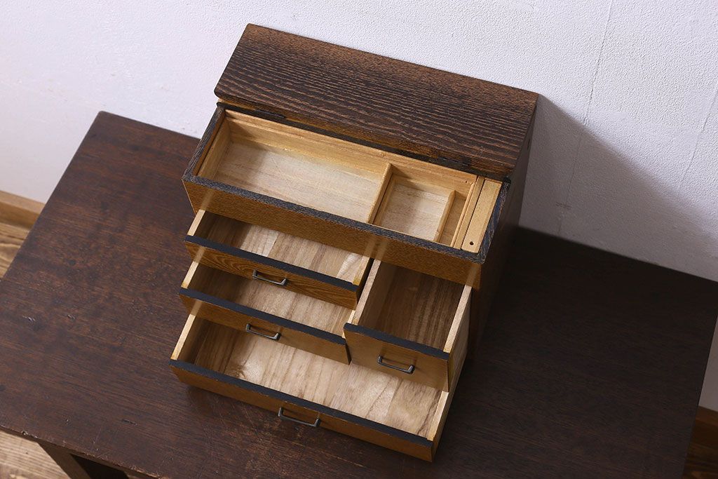 昭和レトロ 美品 木の色合いが魅力的な桑材の針箱(裁縫箱、収納箱、小引き出し)です。