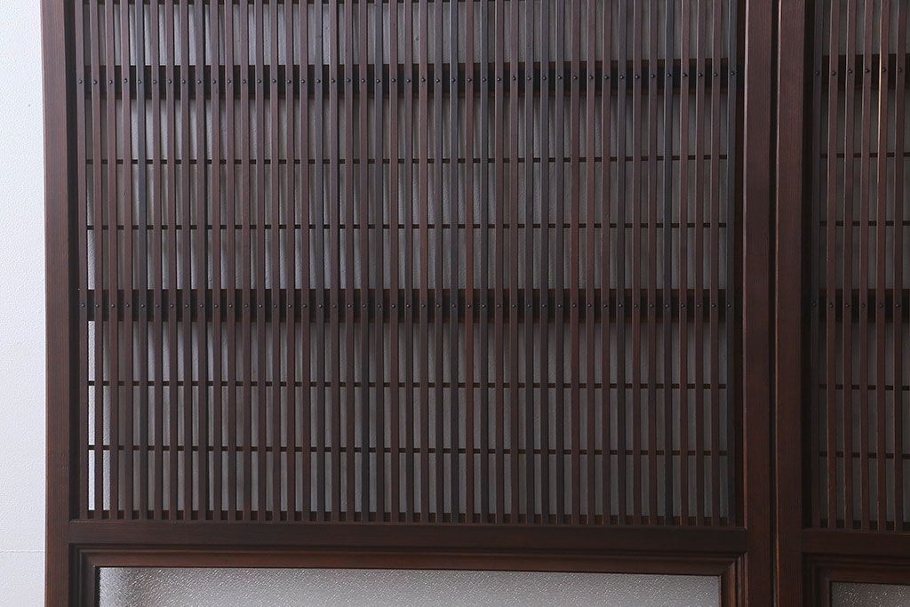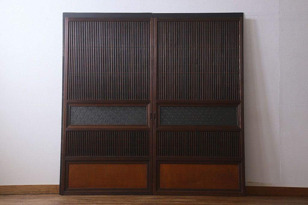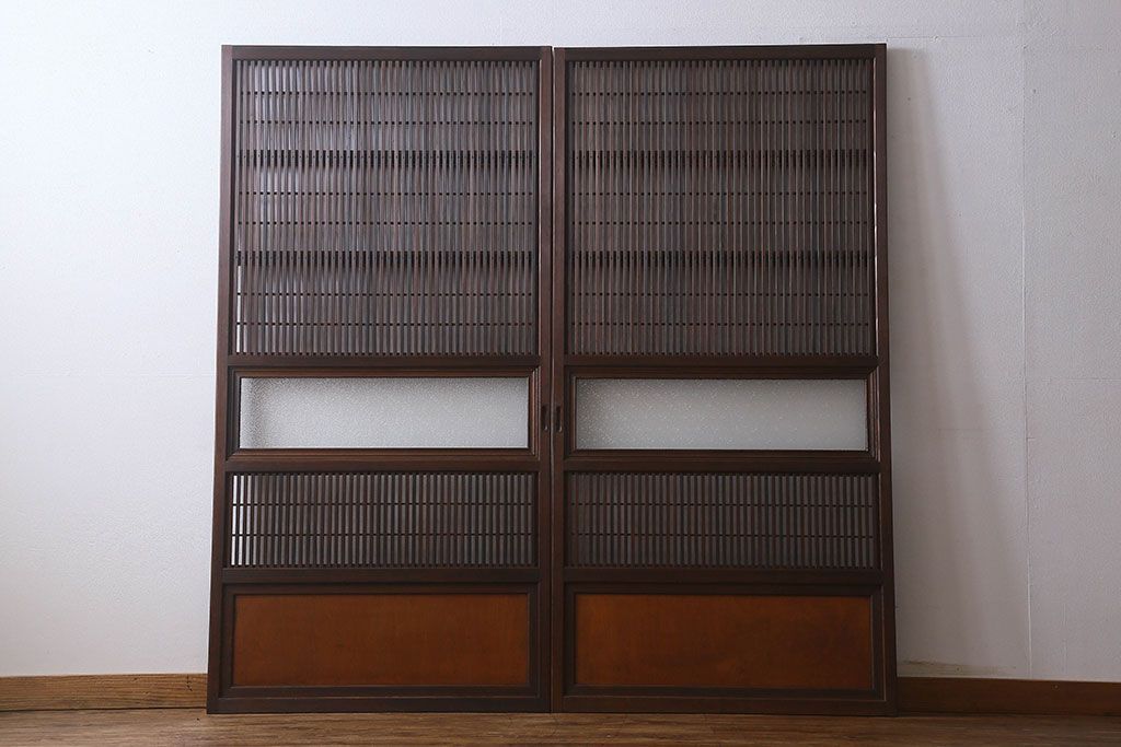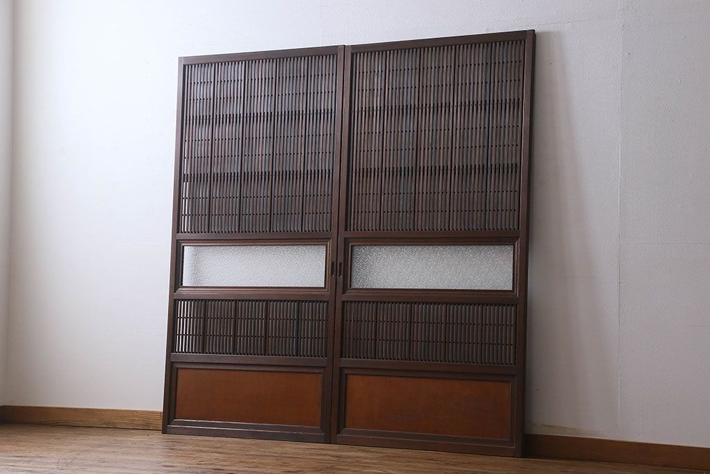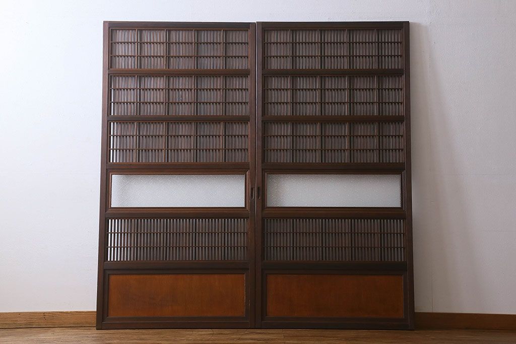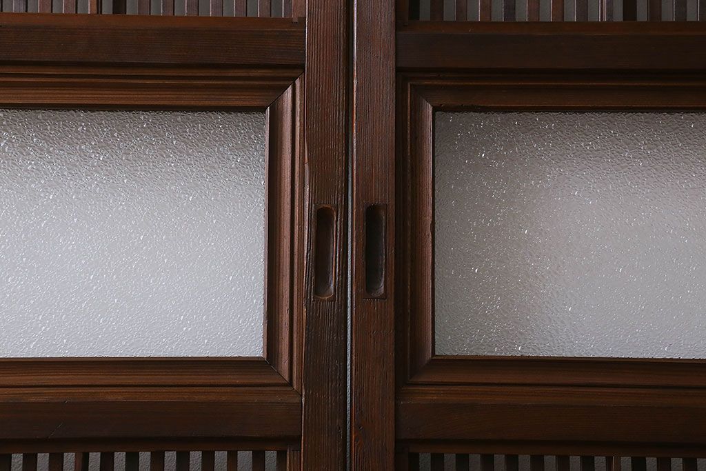 和製アンティーク 裏障子付き ガラス帯の格子戸(引き戸、建具)2枚セットです。