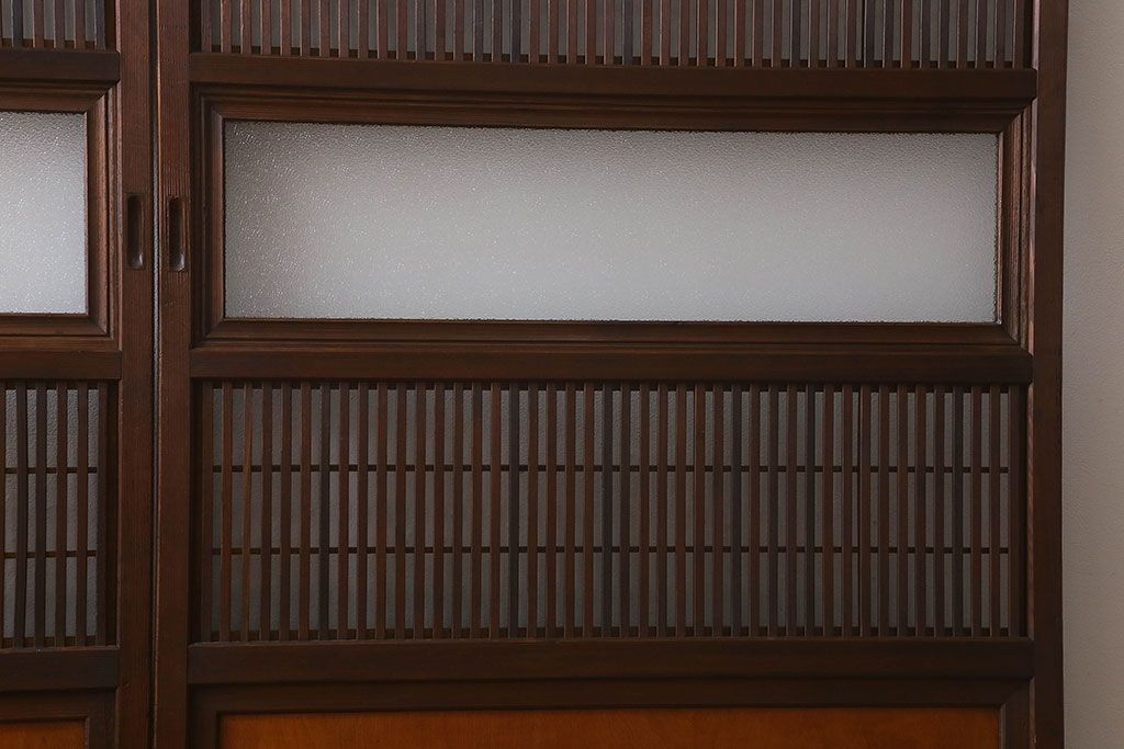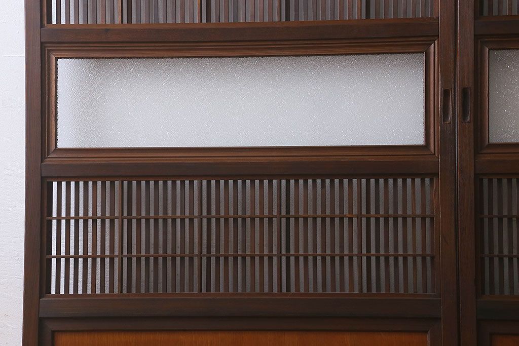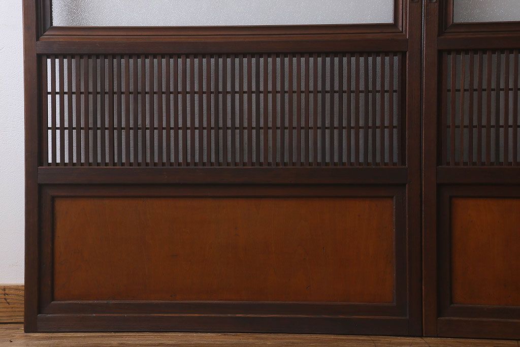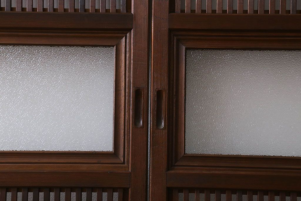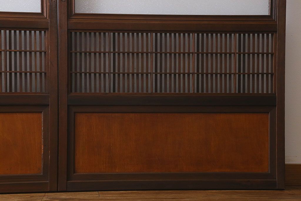 和製アンティーク 裏障子付き ガラス帯の格子戸(引き戸、建具)2枚セット