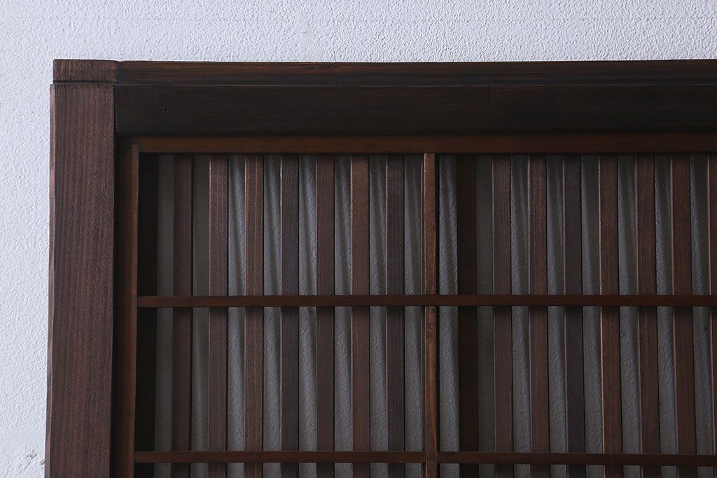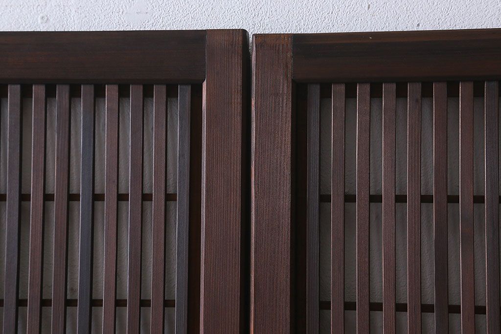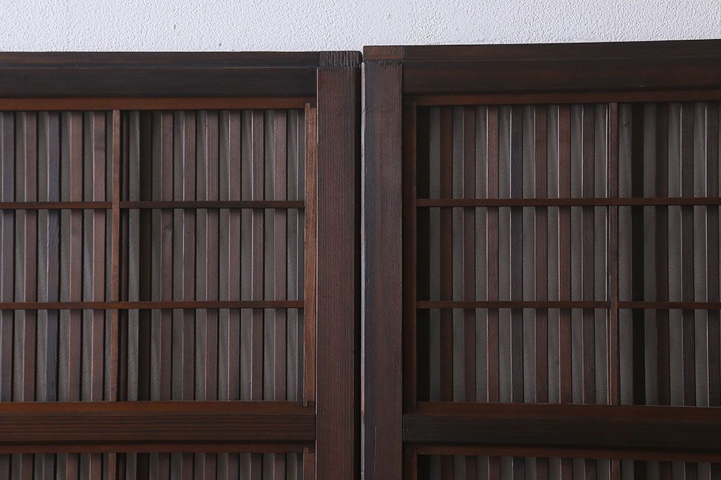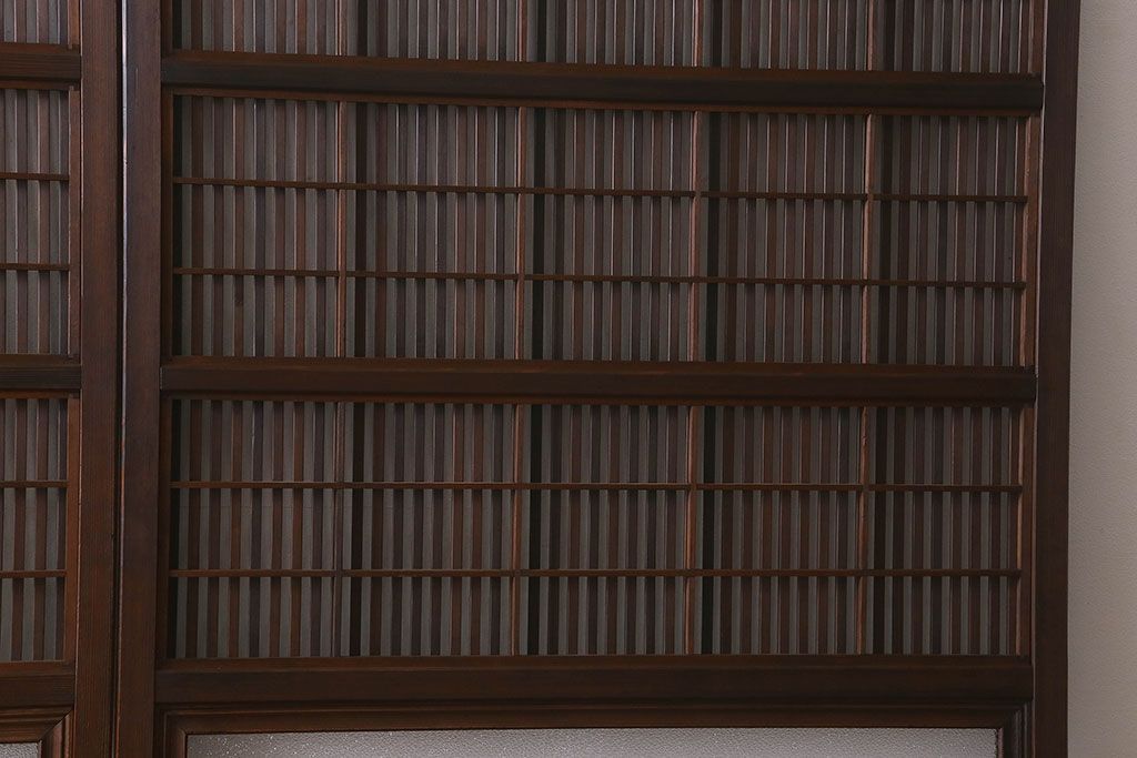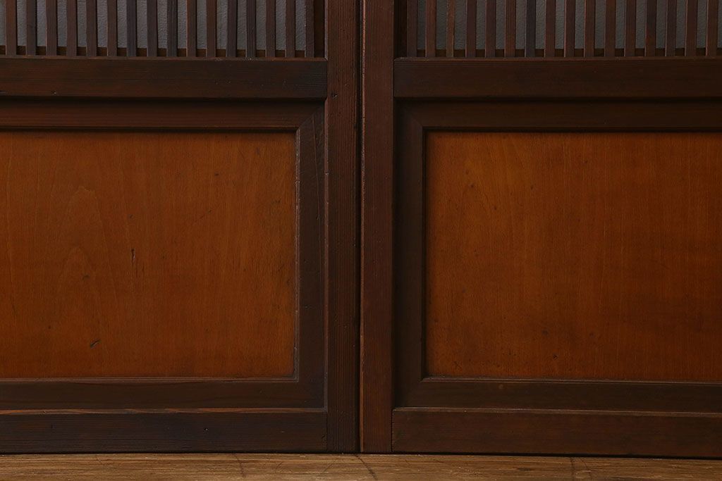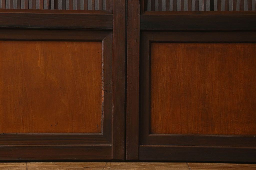 和製アンティーク 裏障子付き ガラス帯の格子戸(引き戸、建具)2枚セット