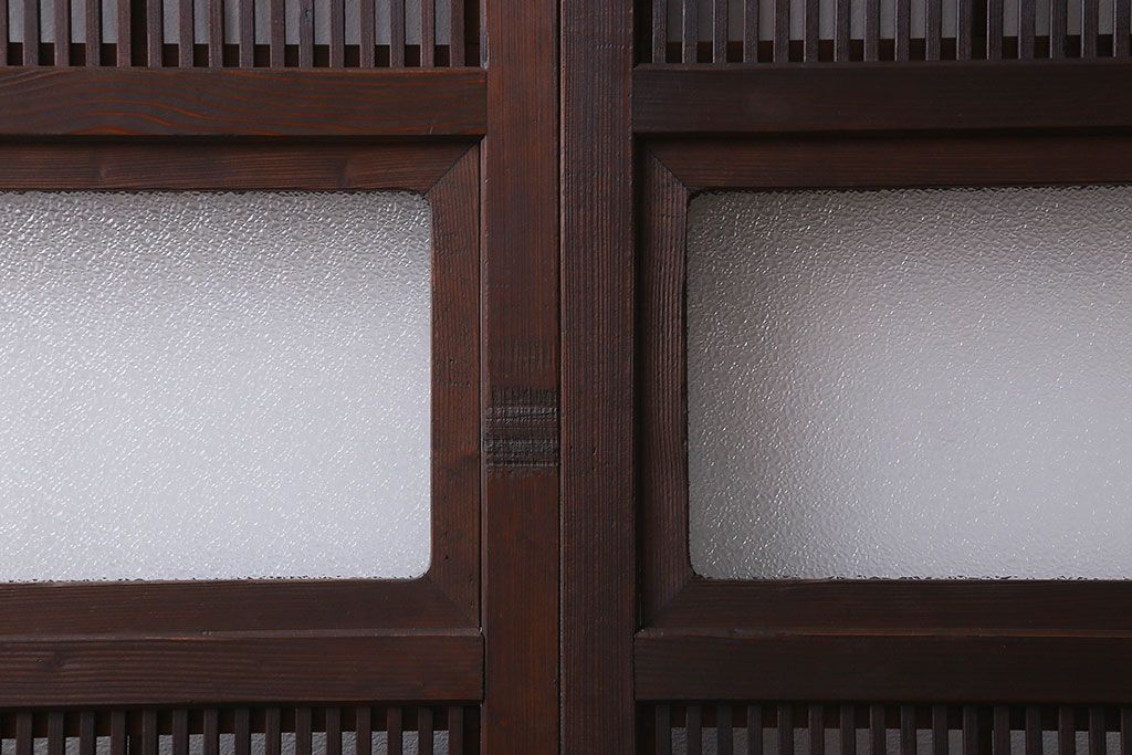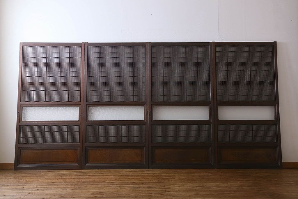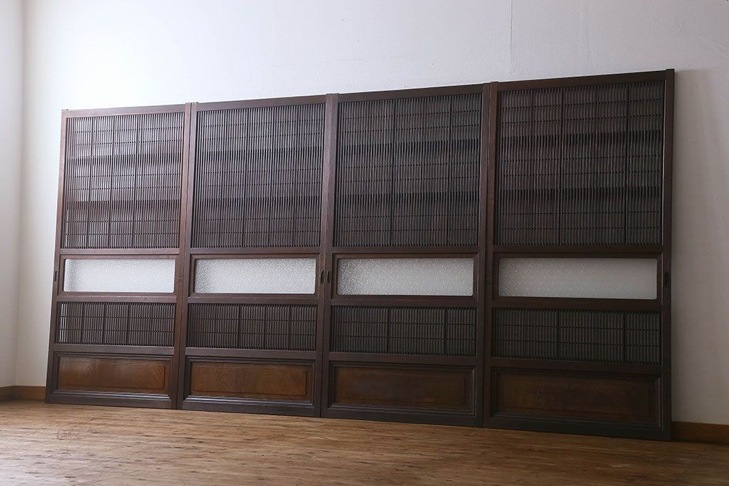 和製アンティーク 細かな格子のデザインが美しい裏障子付き格子戸(建具、引き戸)4枚セットです。