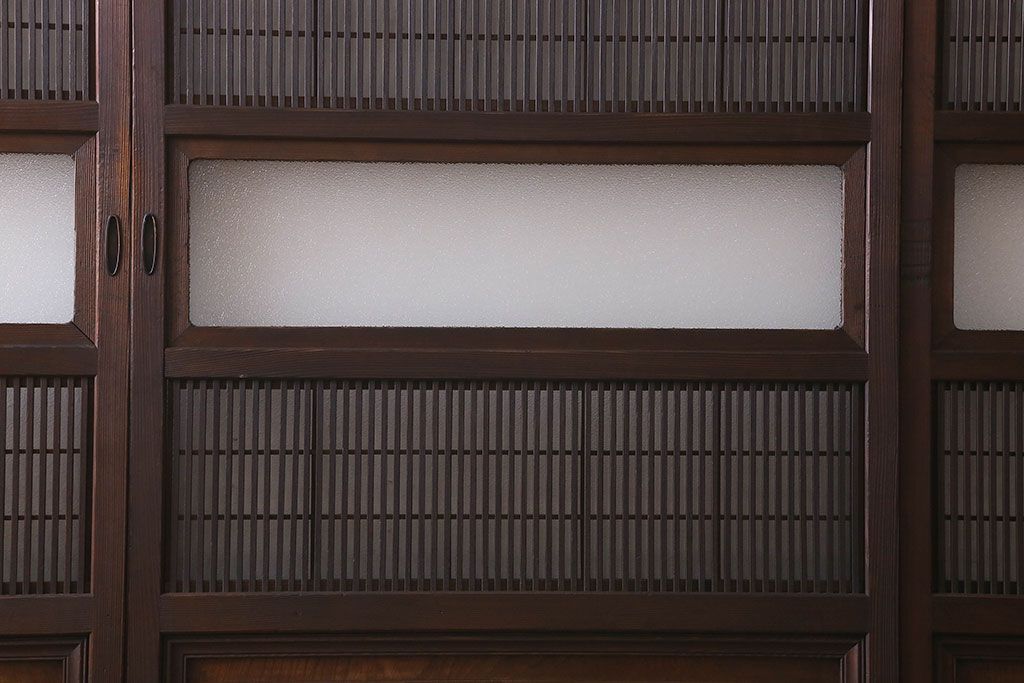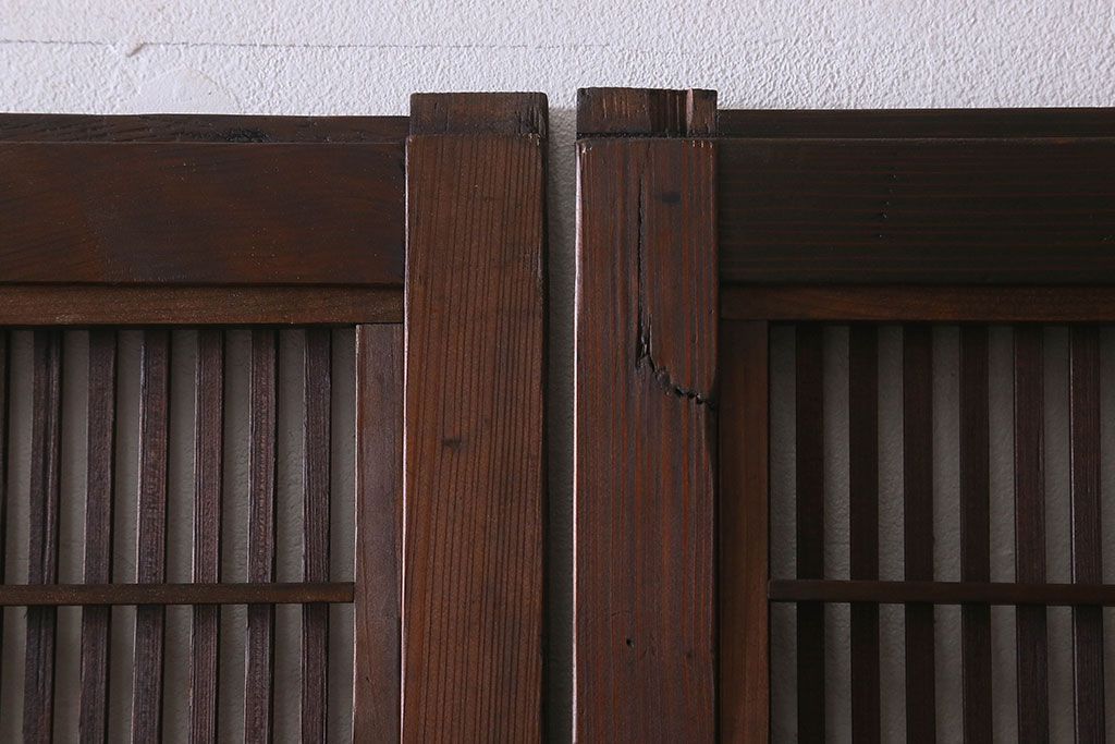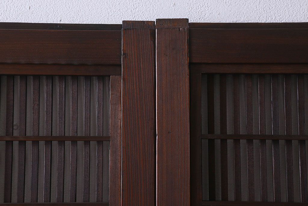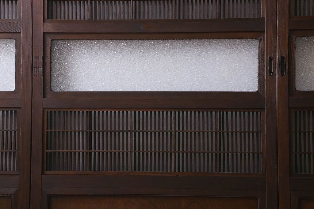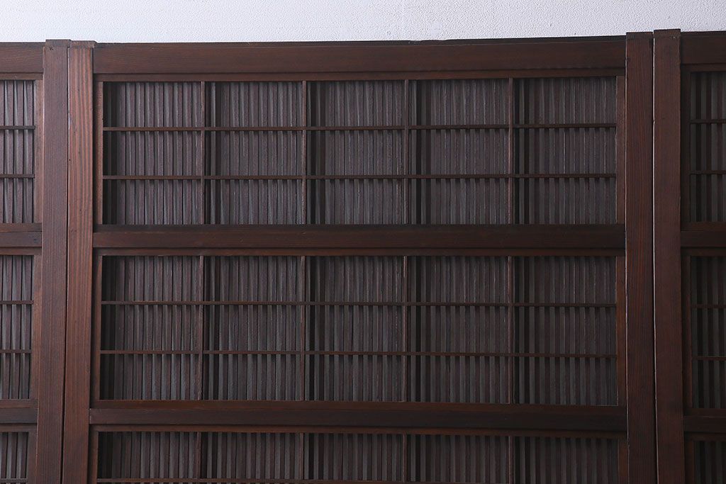 【I様ご成約済み】和製アンティーク 細かな格子のデザインが美しい裏障子付き格子戸(建具、引き戸)4枚セット