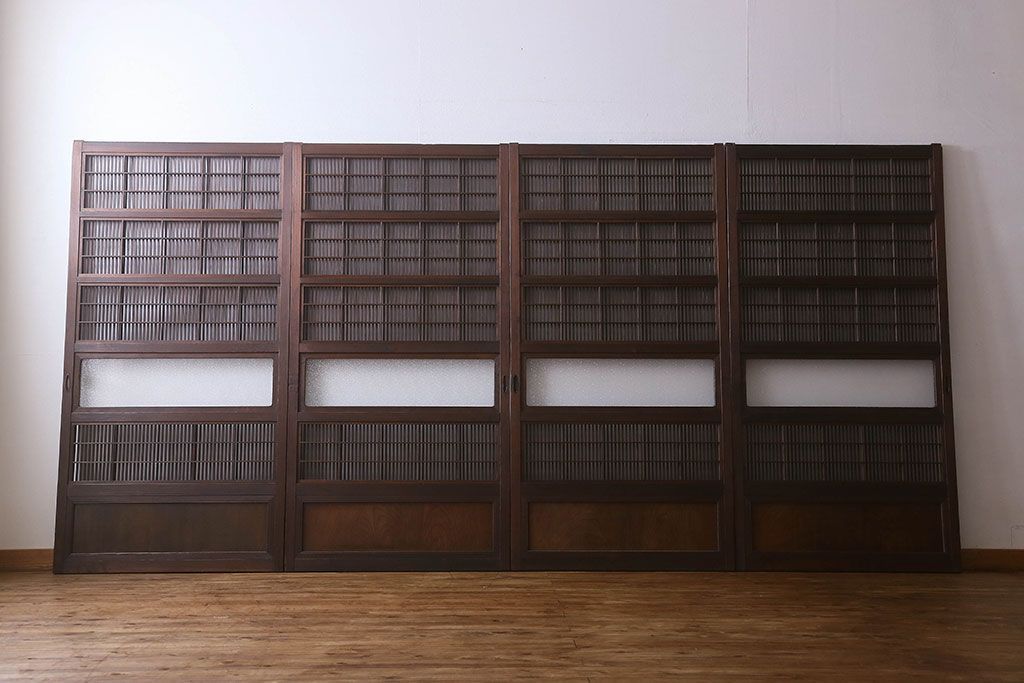 ドア・建具> 4枚〜セット > 【I様ご成約済み】和製アンティーク 細かな格子のデザインが美しい裏障子付き格子戸(建具、引き戸)4枚セット