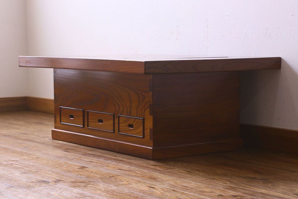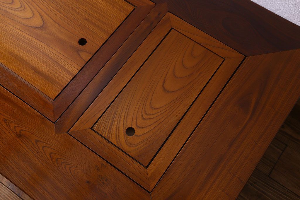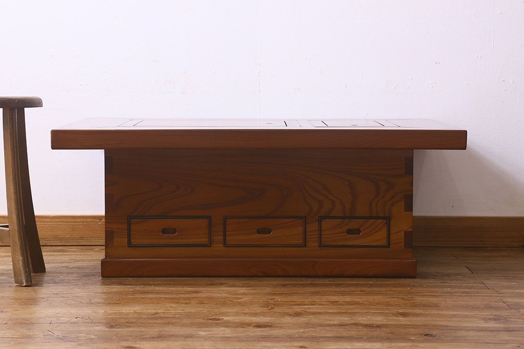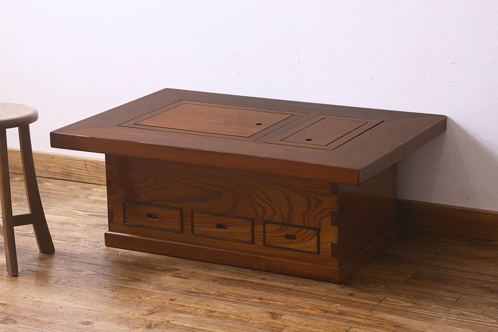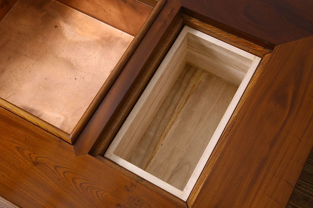 ラフジュ工房> 民芸家具 > アンティーク雑貨 中古美品 存在感抜群!重厚な雰囲気漂う総ケヤキ材の関西火鉢(長火鉢、木製火鉢、テーブル)