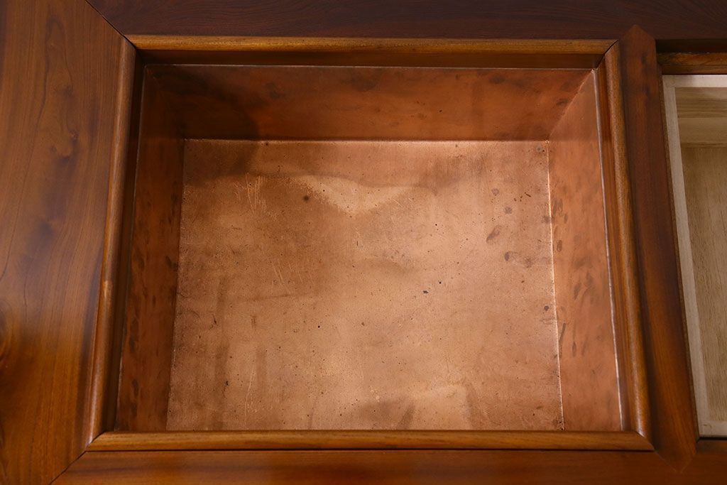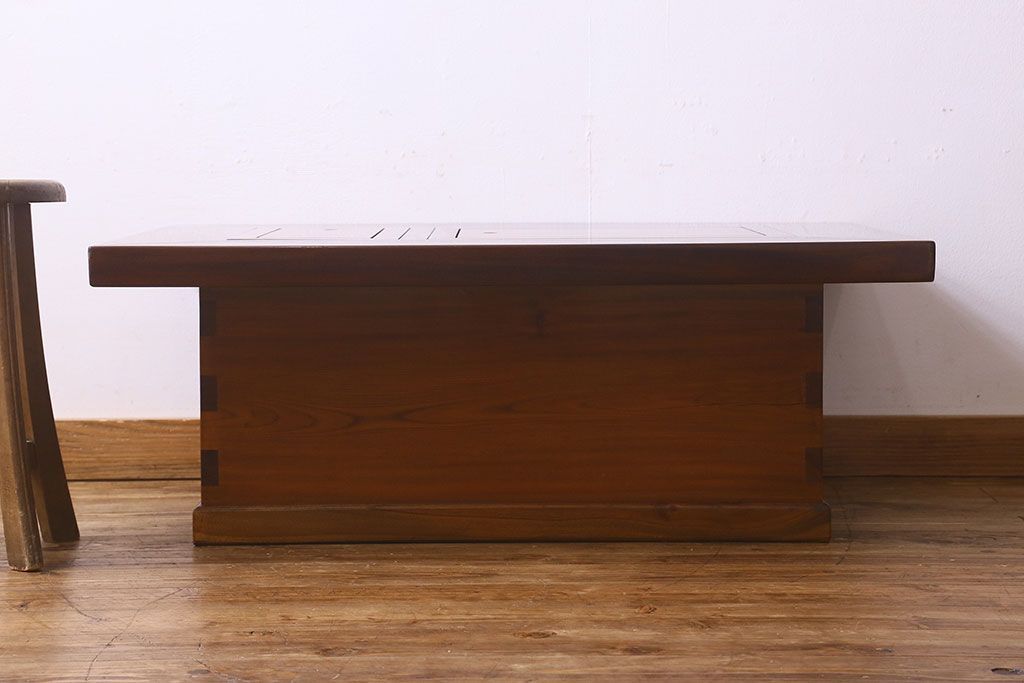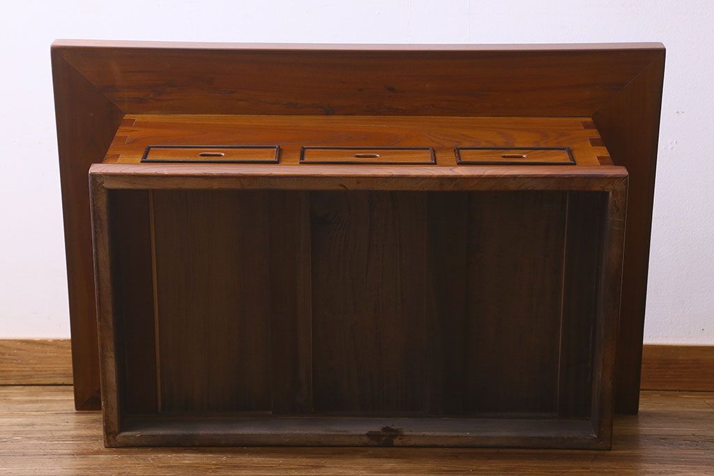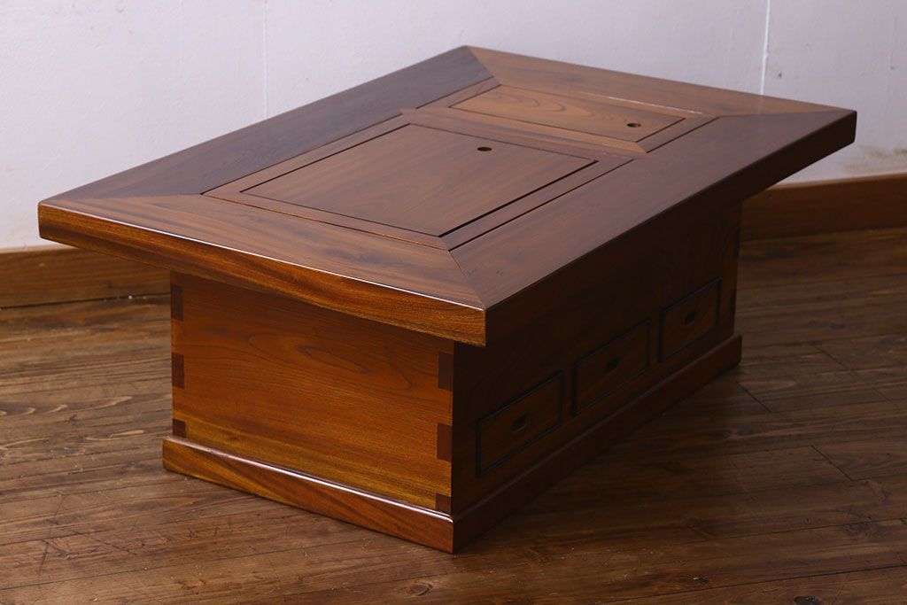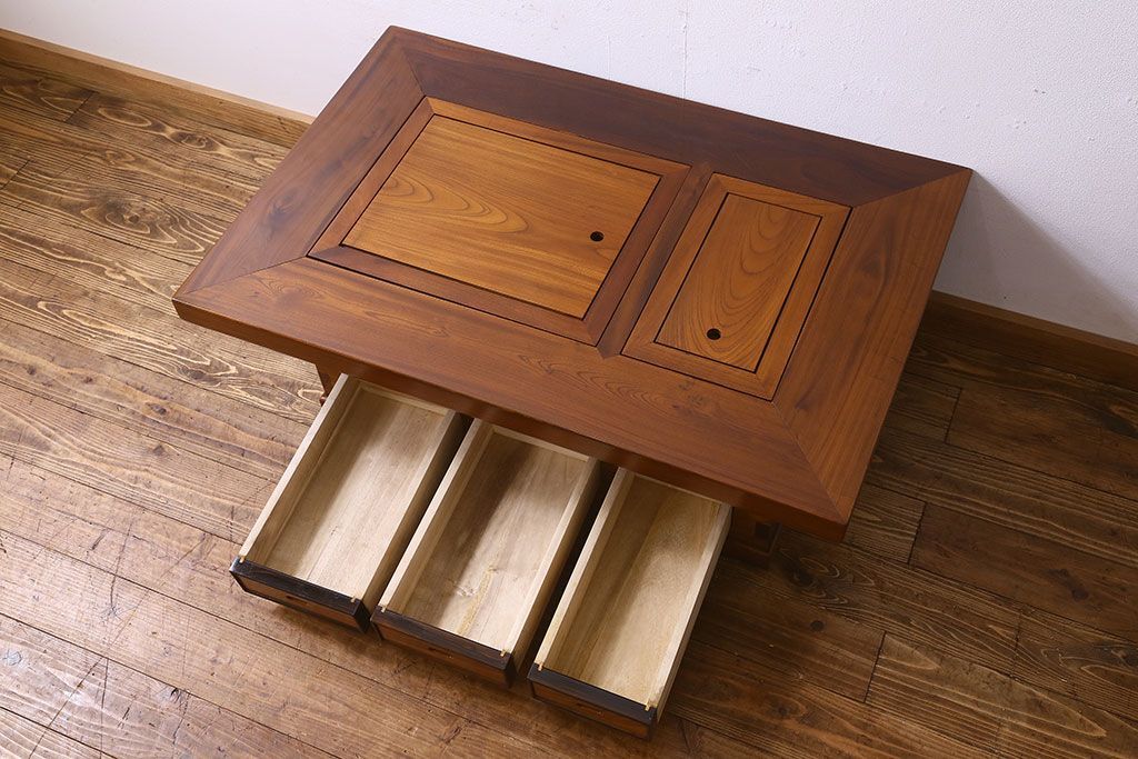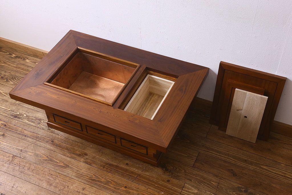 ラフジュ工房> 民芸家具 > アンティーク雑貨 中古美品 存在感抜群!重厚な雰囲気漂う総ケヤキ材の関西火鉢(長火鉢、木製火鉢、テーブル)