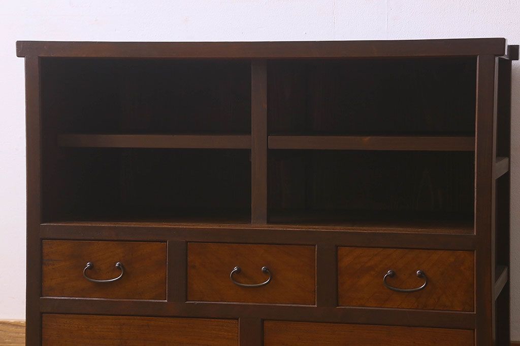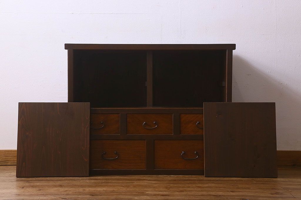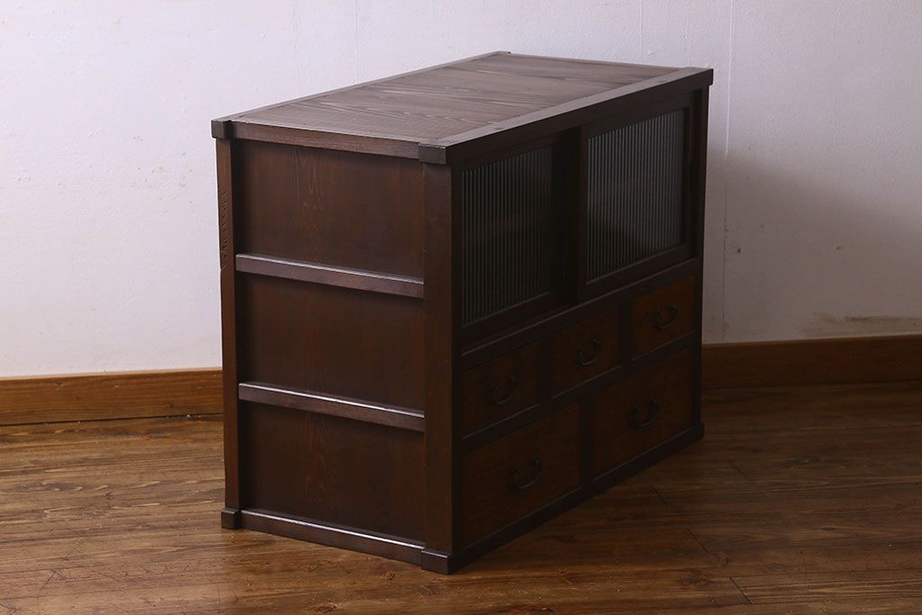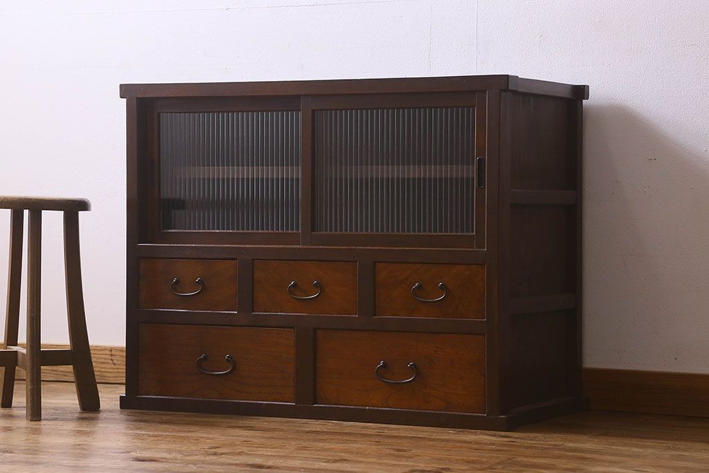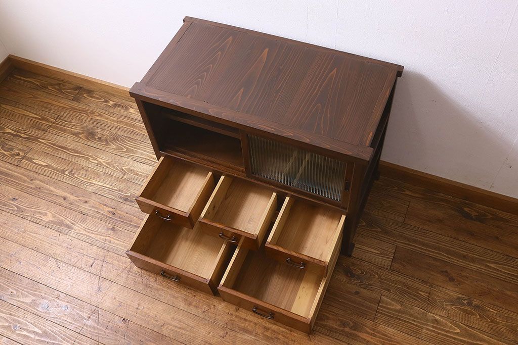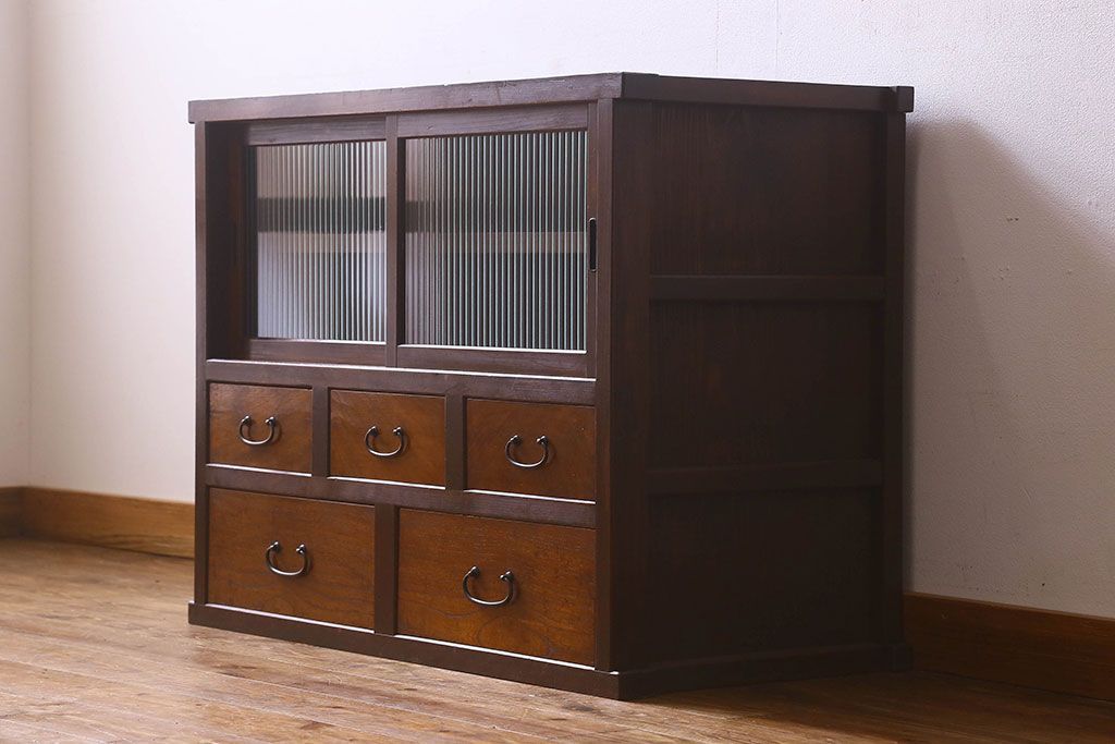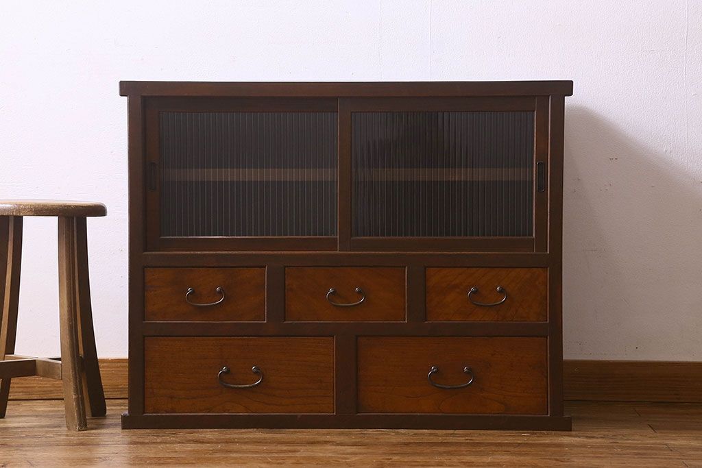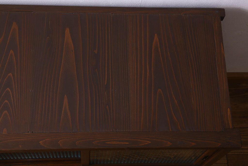 ラフジュ工房> キャビネット・戸棚> テレビ台・ローボード > レトロ家具 和製アンティーク モールガラスのレトロな収納棚(戸棚、食器棚)