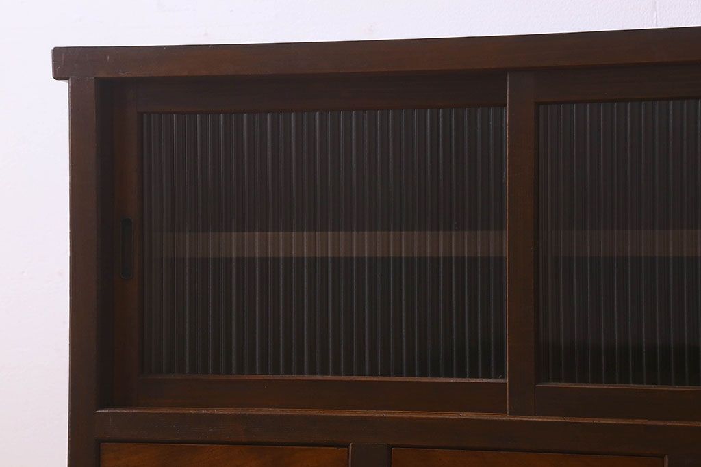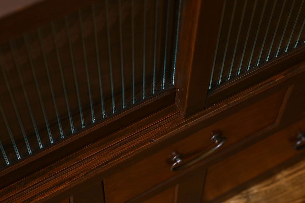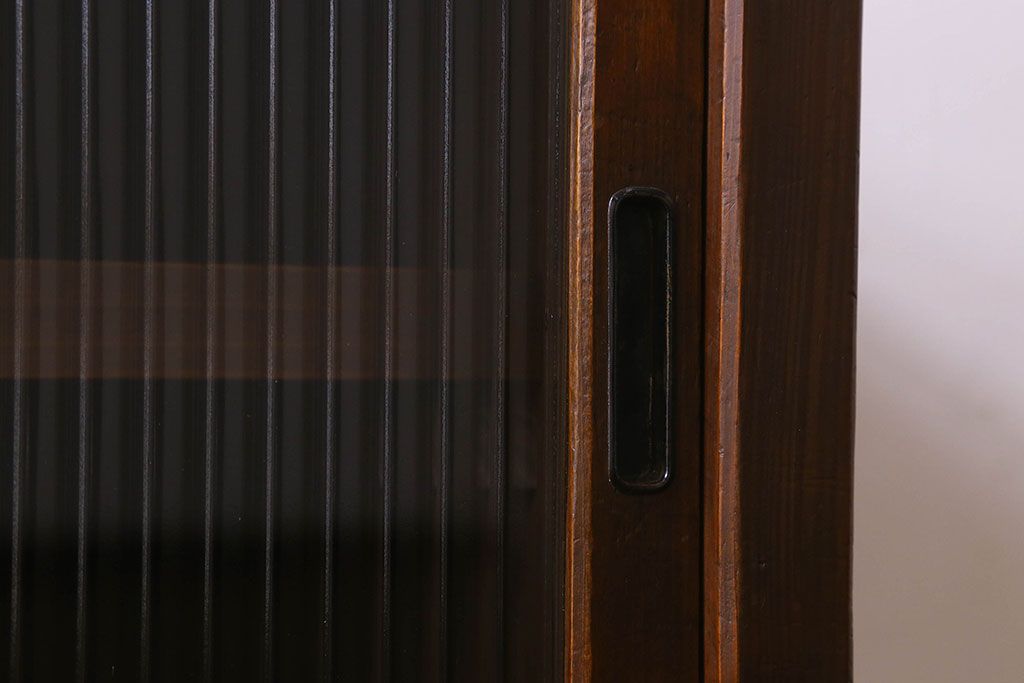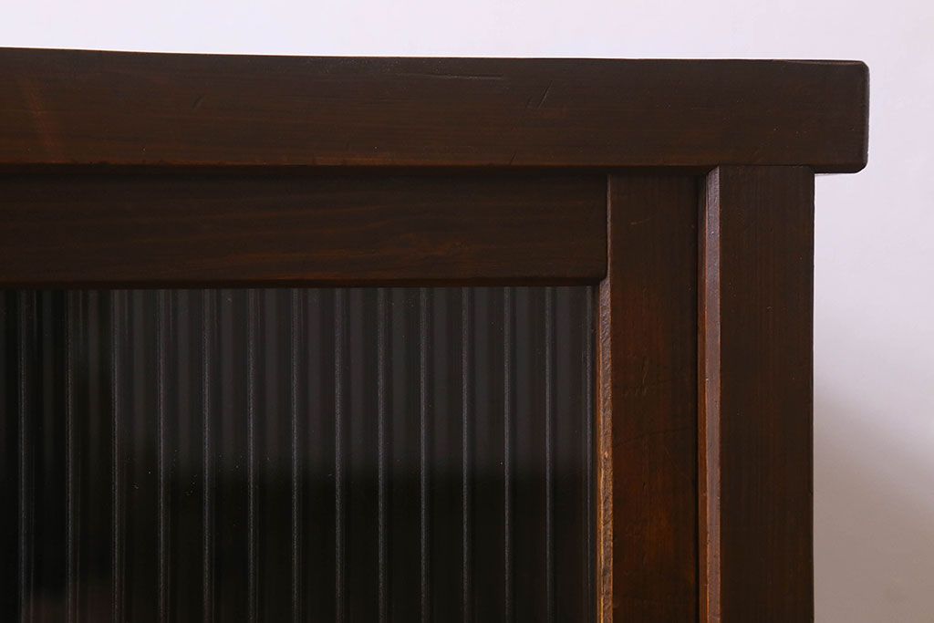 ラフジュ工房> キャビネット・戸棚> サイドボード > レトロ家具 和製アンティーク モールガラスのレトロな収納棚(戸棚、食器棚)