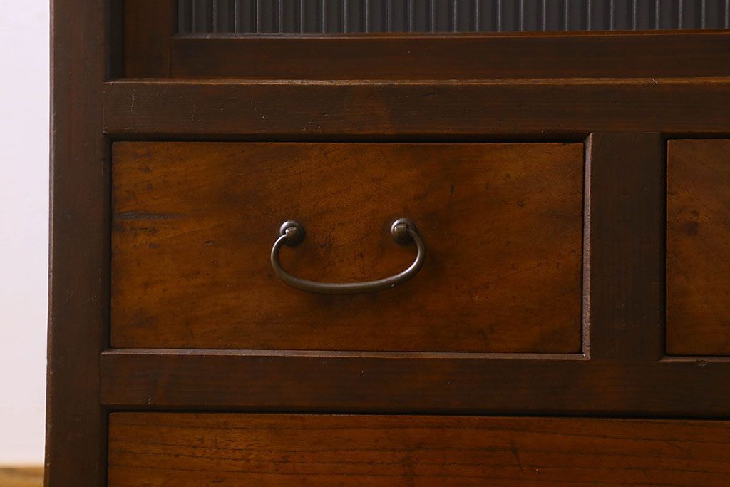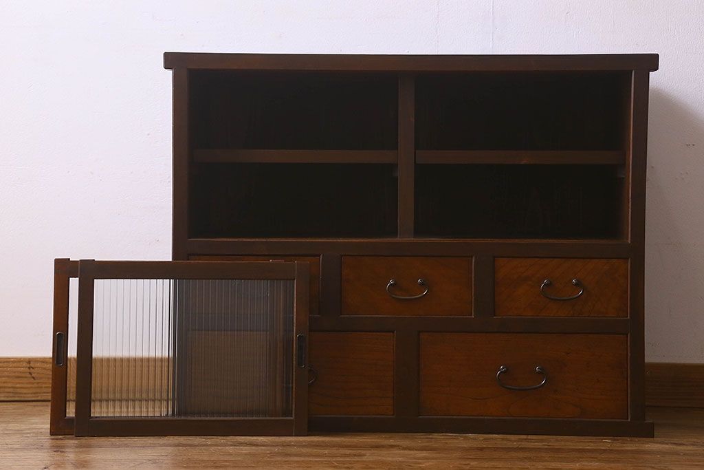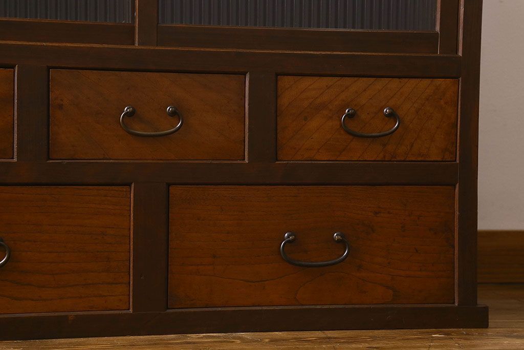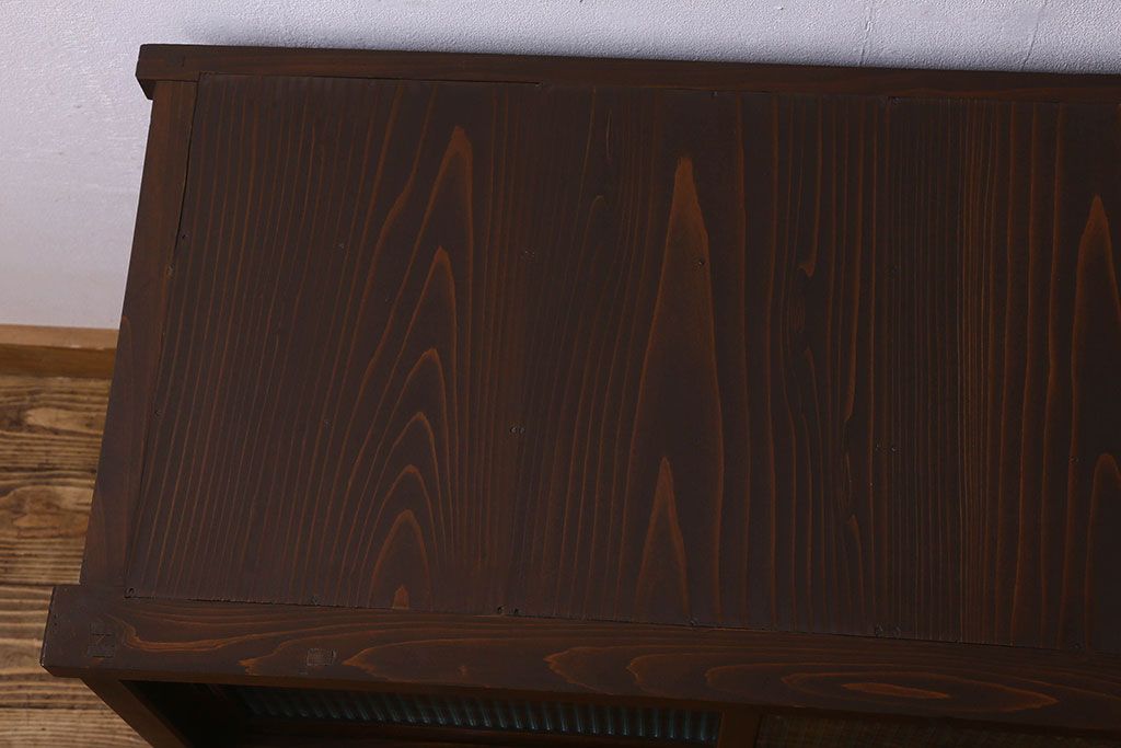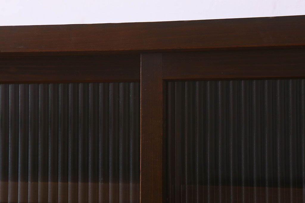 ラフジュ工房> キャビネット・戸棚> サイドボード > レトロ家具 和製アンティーク モールガラスのレトロな収納棚(戸棚、食器棚)
