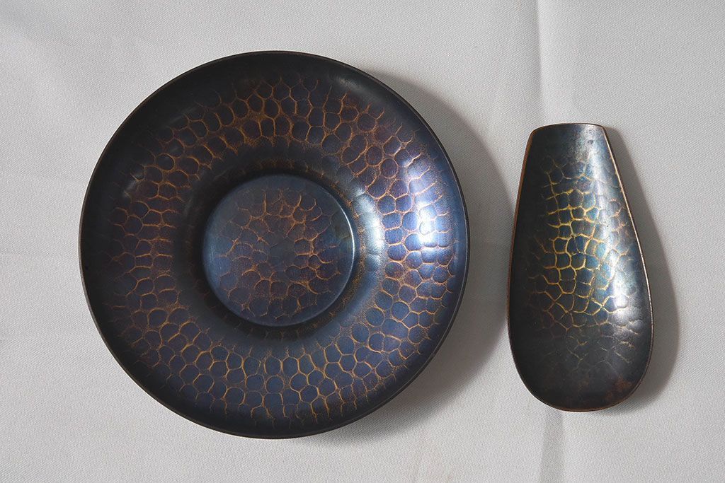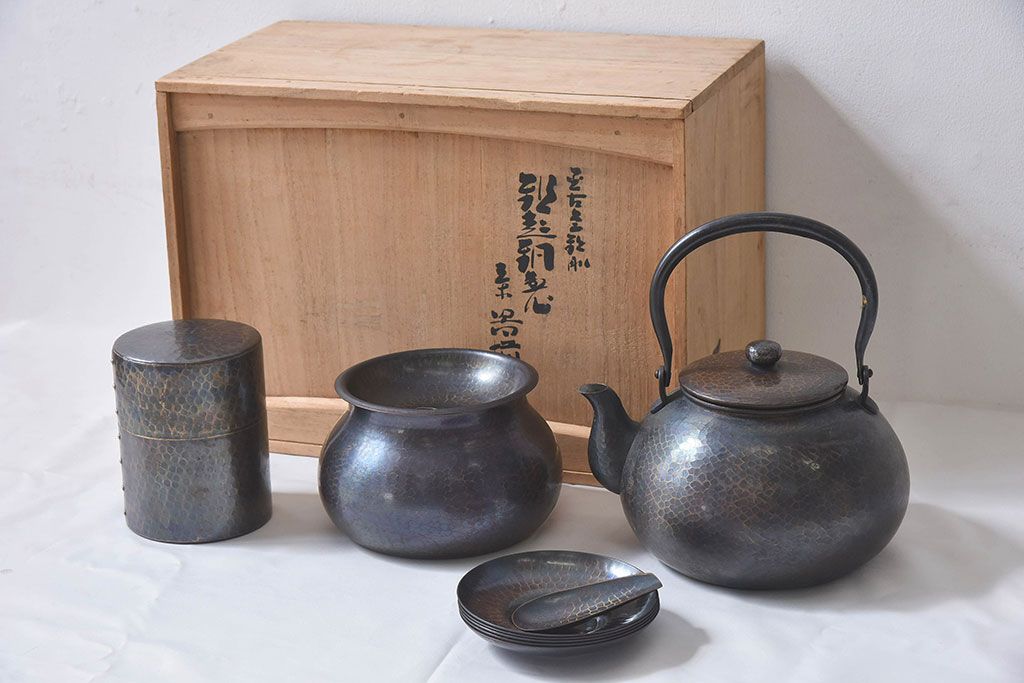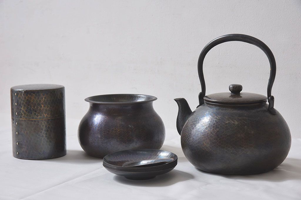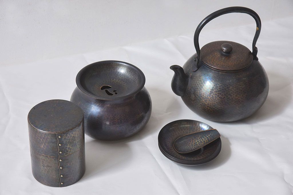 ラフジュ工房> 和食器・茶道具 > アンティーク雑貨 玉川堂 鎚起銅器 茶器揃(皿、急須、茶筒、建水、茶道具)