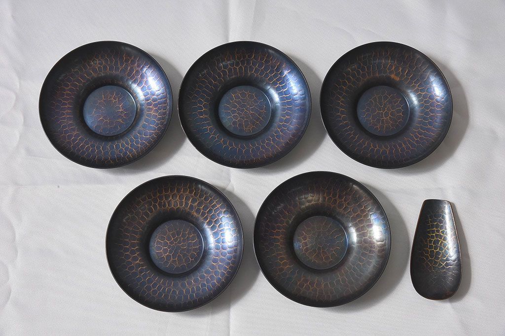アンティーク雑貨 玉川堂 鎚起銅器 茶器揃(皿、急須、茶筒、建水、茶道具)