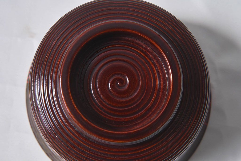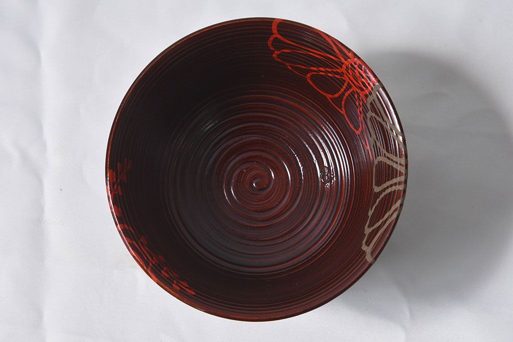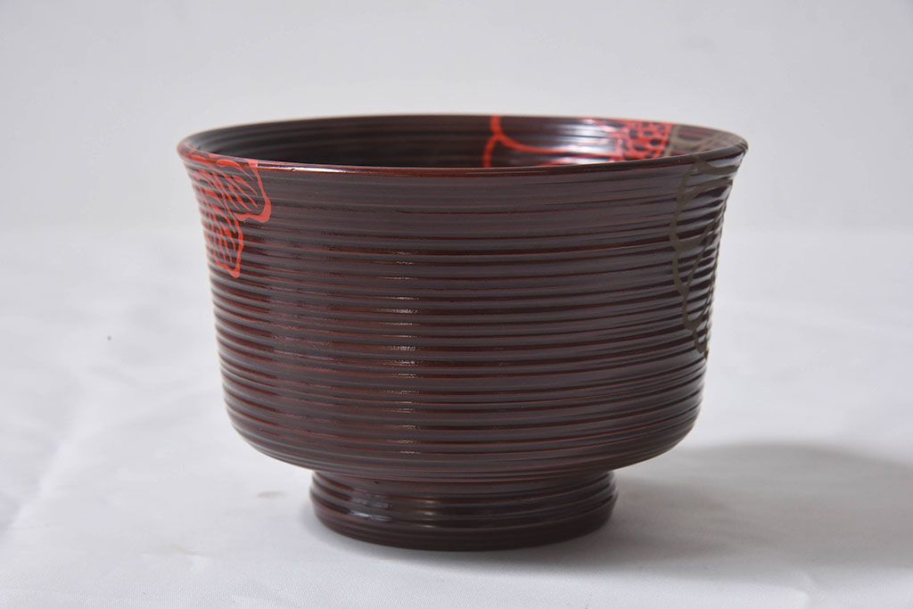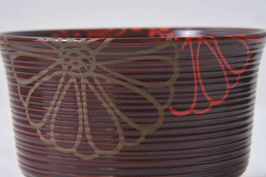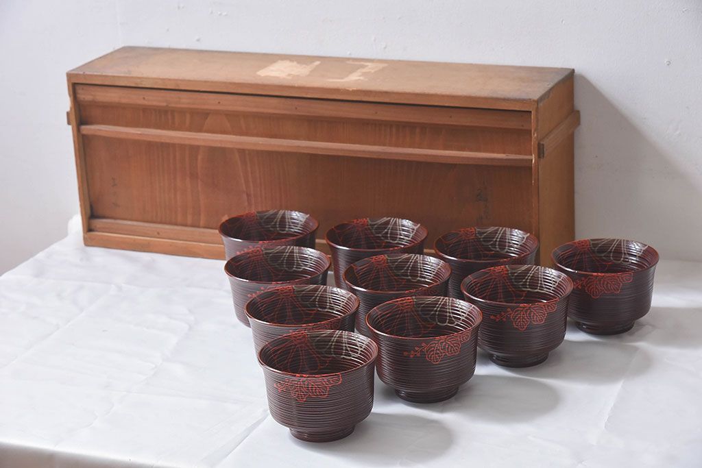 ラフジュ工房> 和食器・茶道具> お椀・茶碗 > アンティーク 春次作 引目溜塗菊桐 盃洗(お椀、漆器)10客