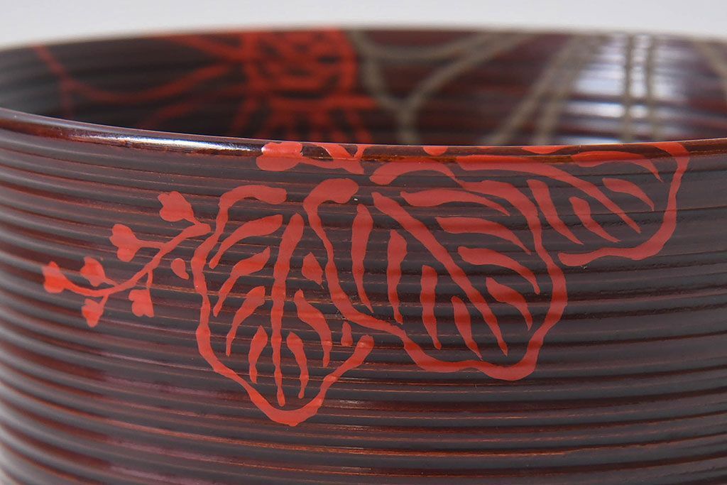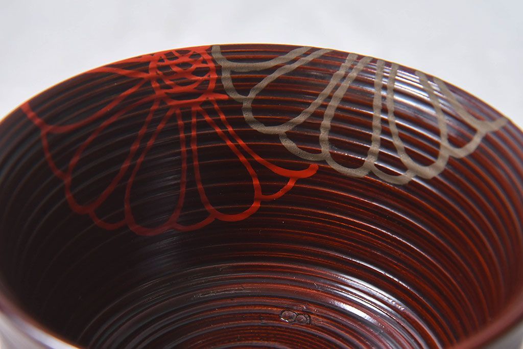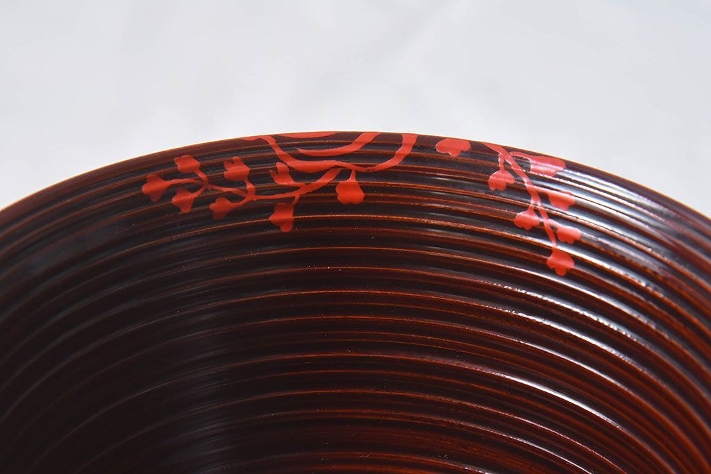 ラフジュ工房> 骨董・美術品> 骨董-漆器 > アンティーク 春次作 引目溜塗菊桐 盃洗(お椀、漆器)10客