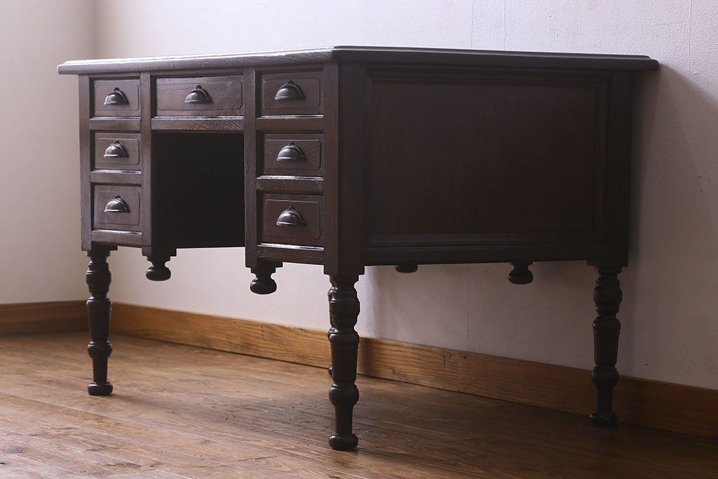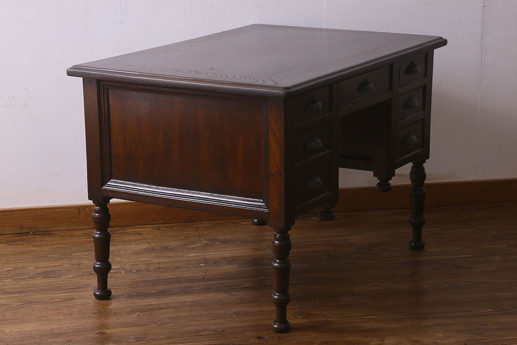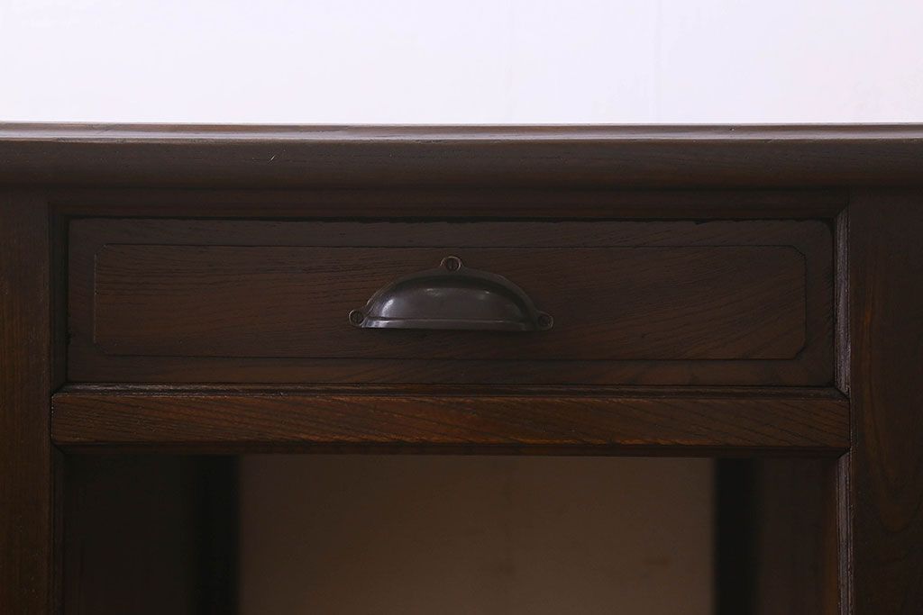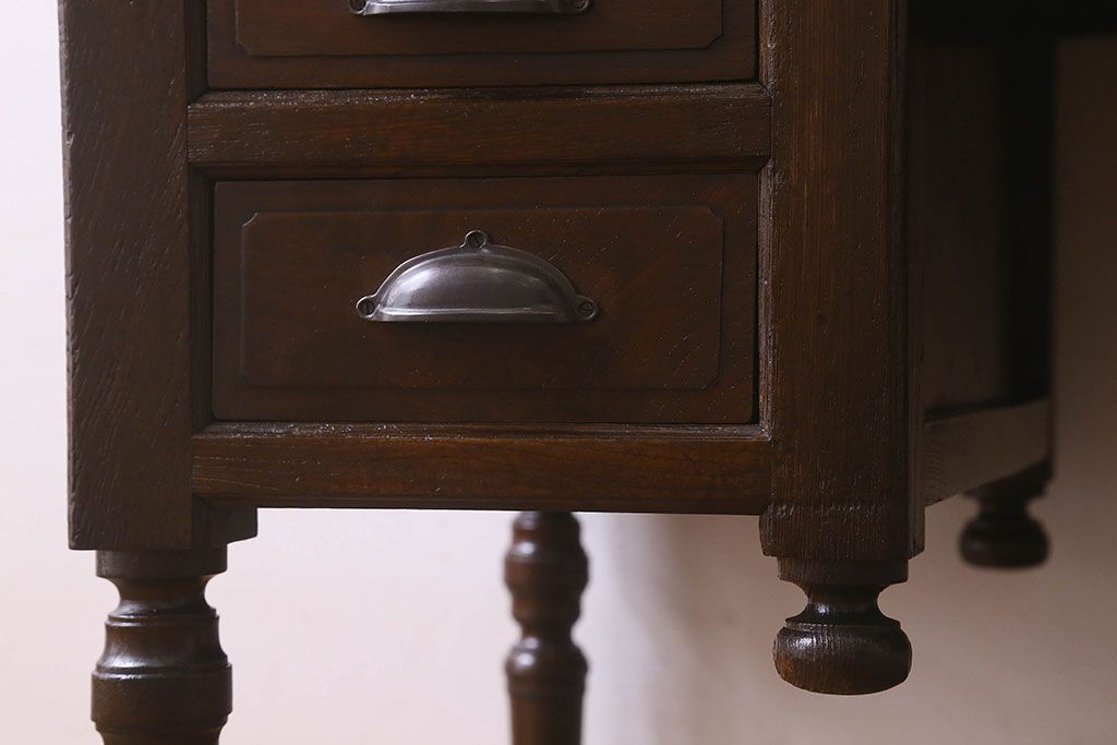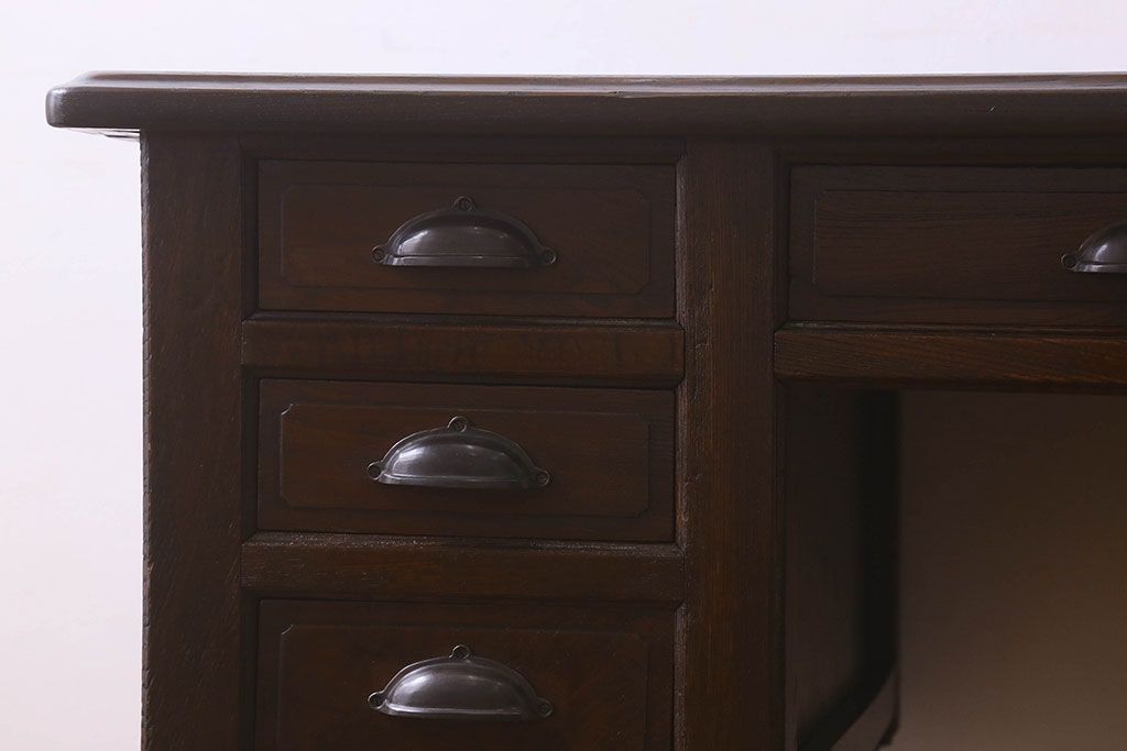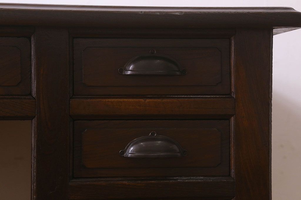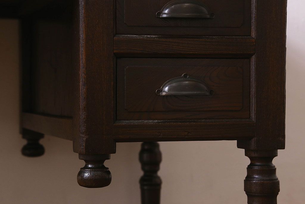 アンティーク家具 和製アンティーク 総ケヤキ材 大正ロマン香る両面両袖机(ワークデスク、在宅ワーク、在宅用)