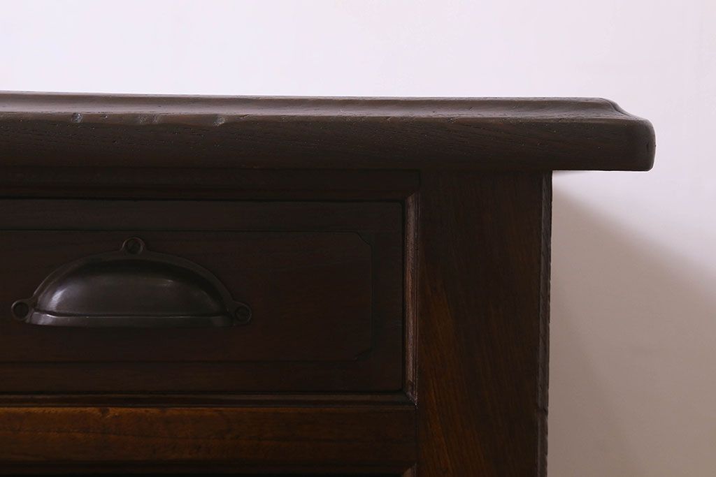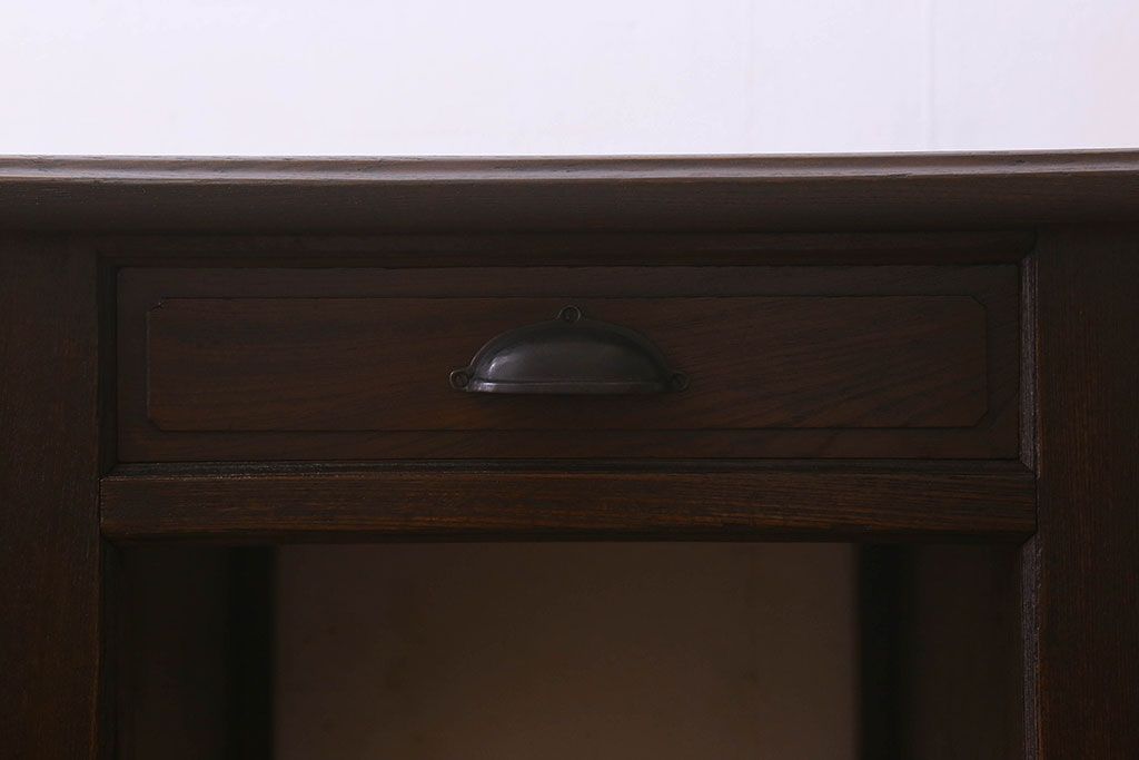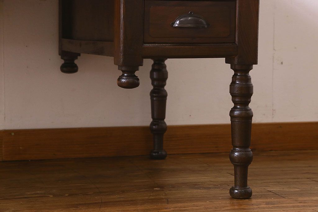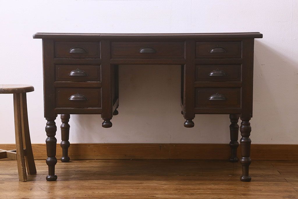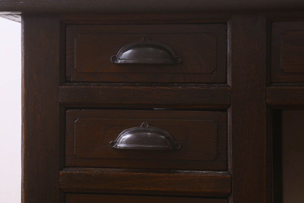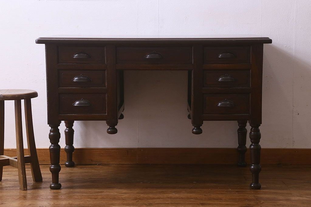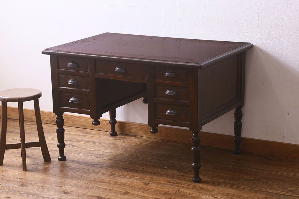 アンティーク家具 和製アンティーク 総ケヤキ材 大正ロマン香る両面両袖机(ワークデスク、在宅ワーク、在宅用)