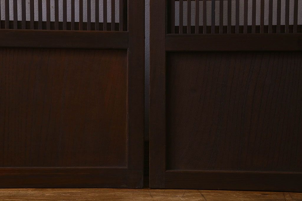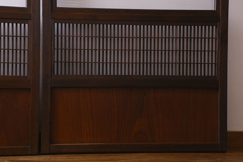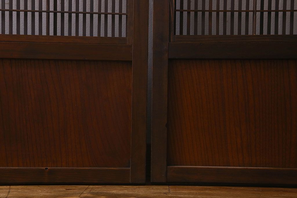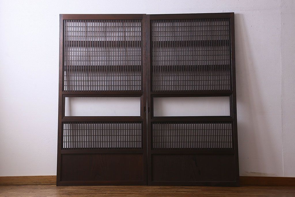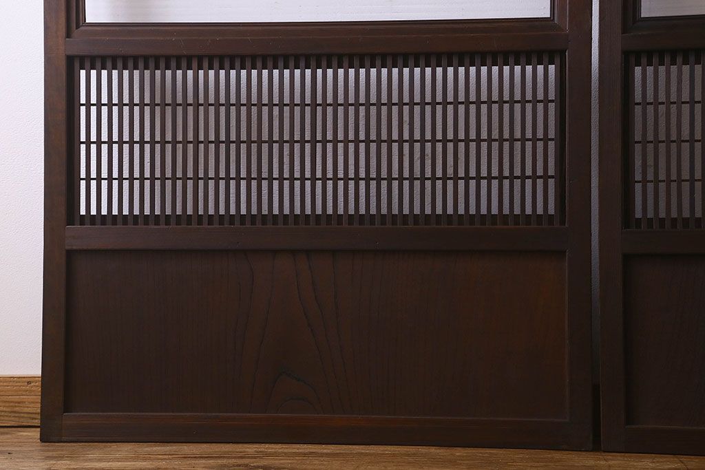 和製アンティーク 腰板ケヤキ材 モダン 裏障子付きの帯格子戸(引き戸、建具)2枚組