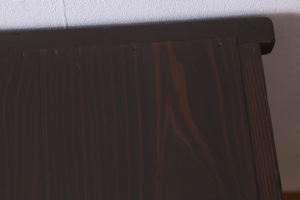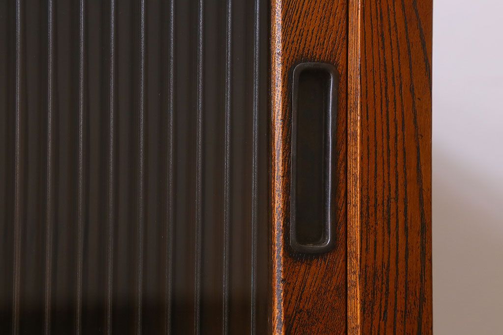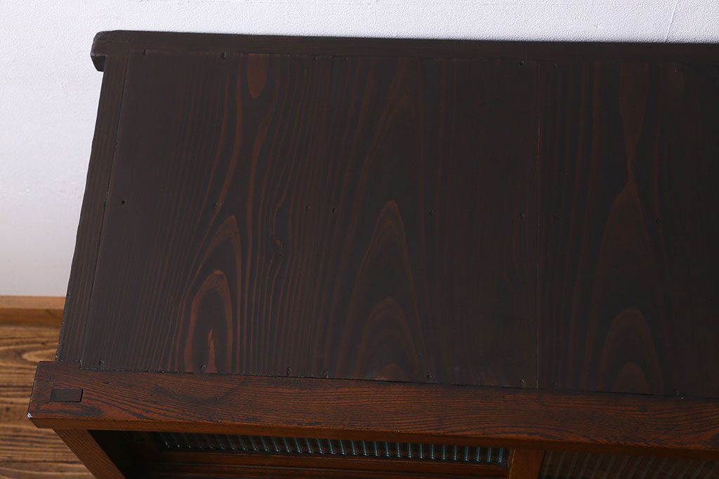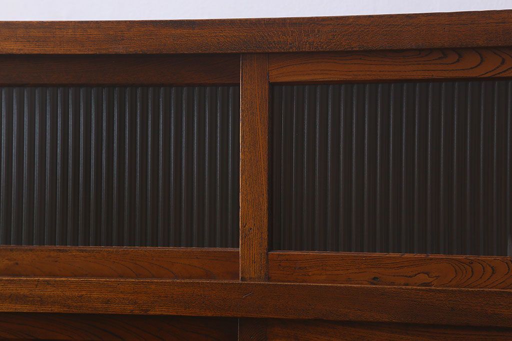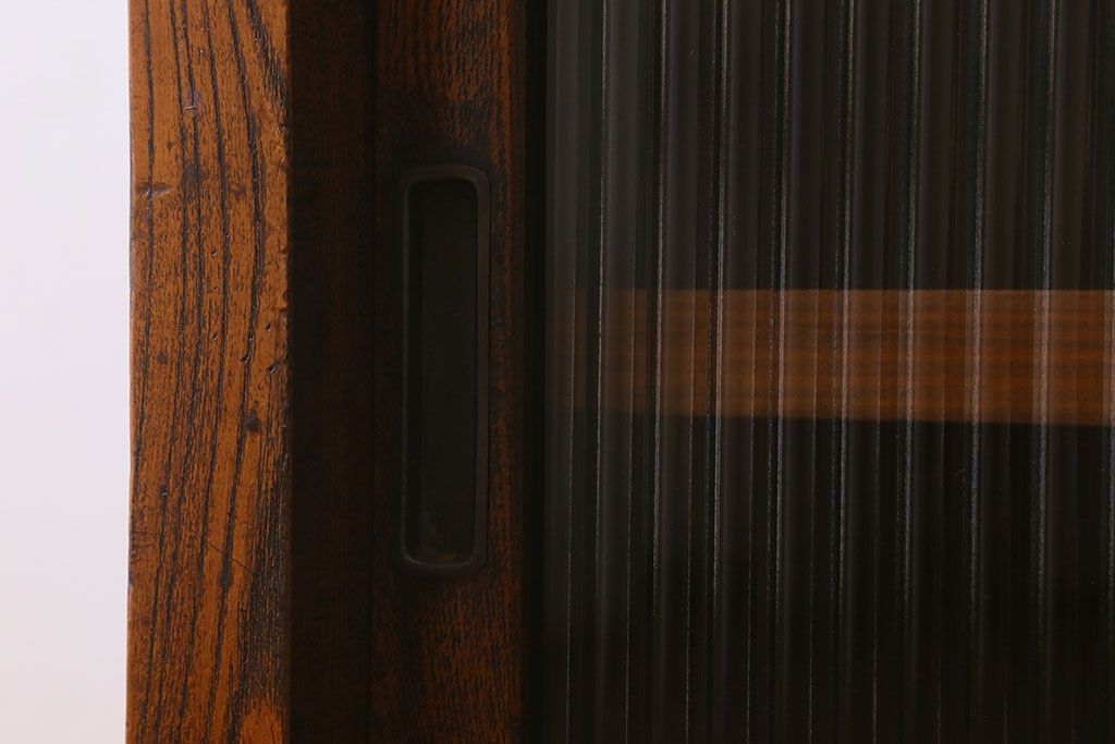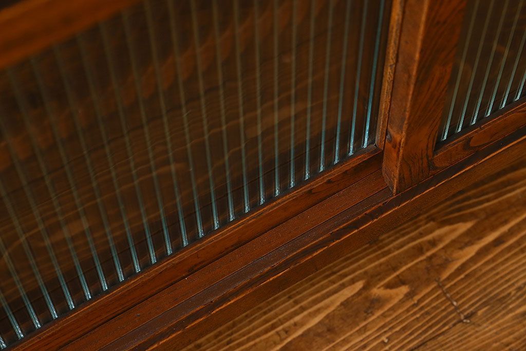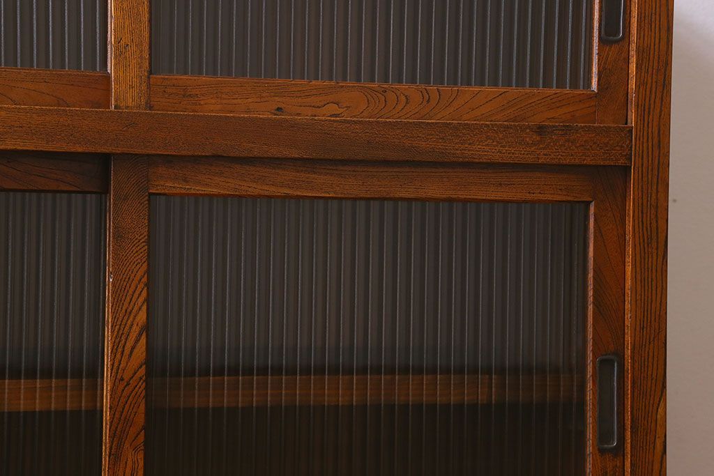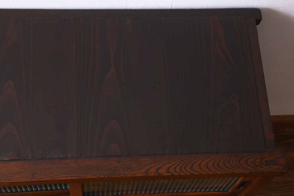 ラフジュ工房> キャビネット・戸棚> 食器棚・カップボード > アンティーク家具 和製アンティーク 前面ケヤキ材 モールガラスがおしゃれな鉄脚付の戸棚(収納棚、食器棚、本箱)