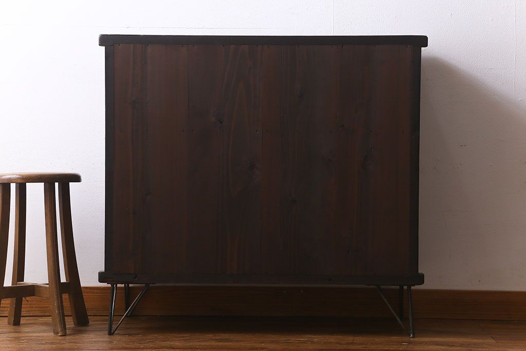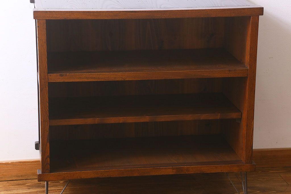 ラフジュ工房> キャビネット・戸棚> 本箱 > アンティーク家具 和製アンティーク 前面ケヤキ材 モールガラスがおしゃれな鉄脚付の戸棚(収納棚、食器棚、本箱)