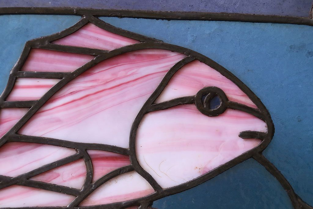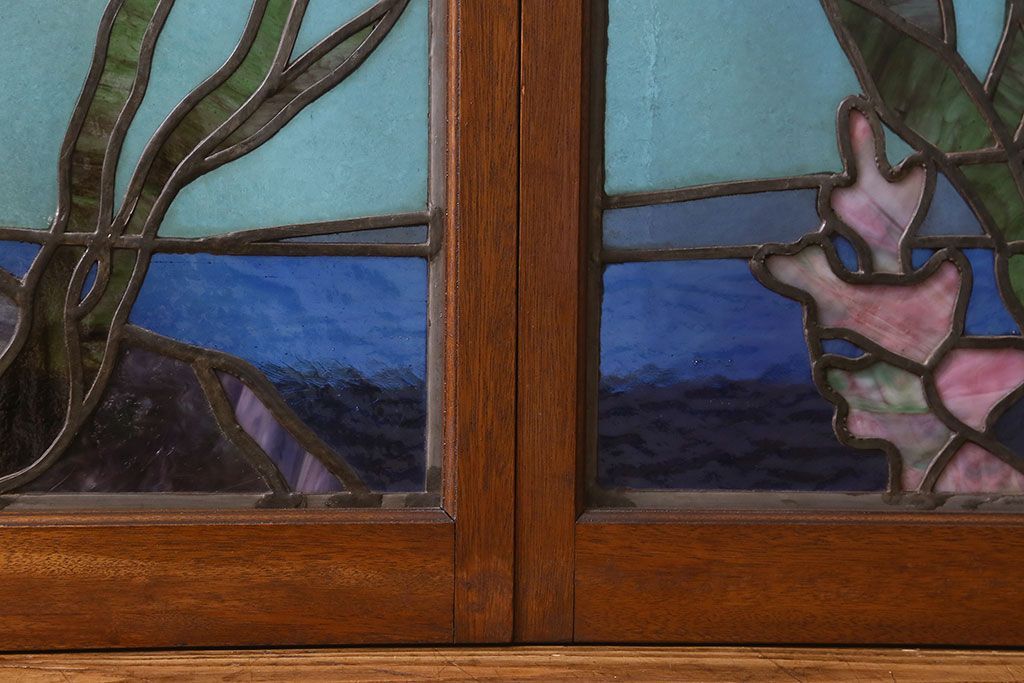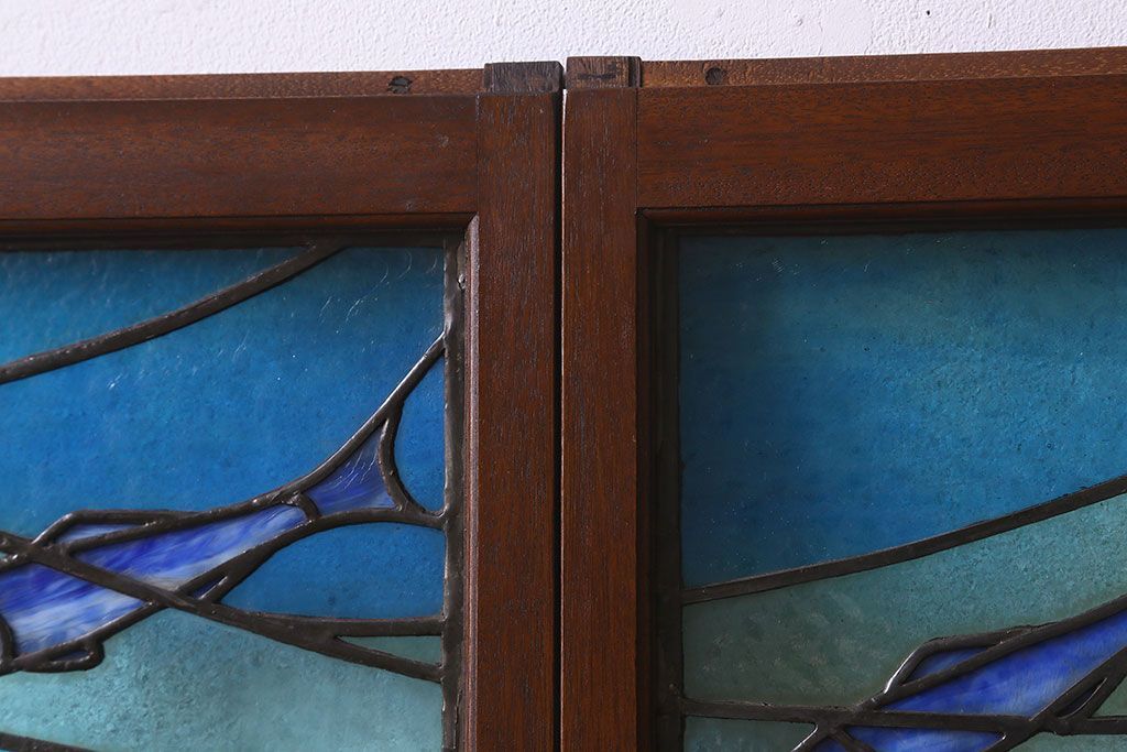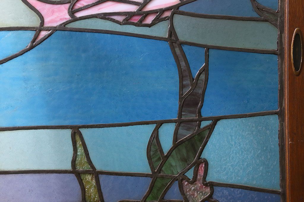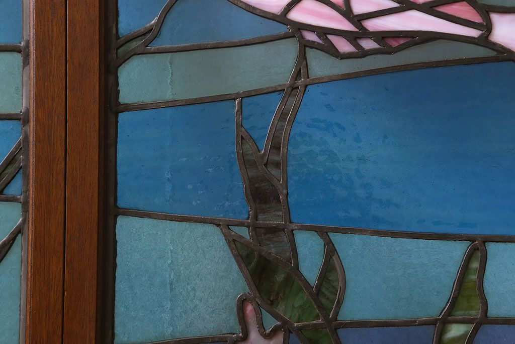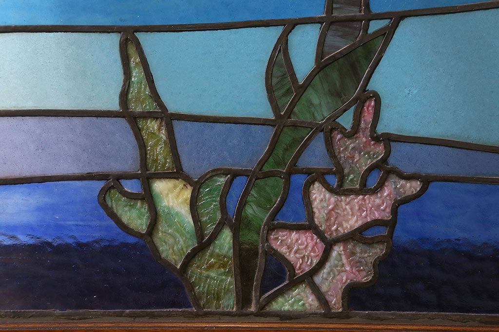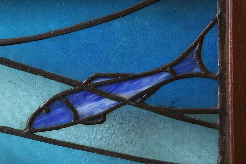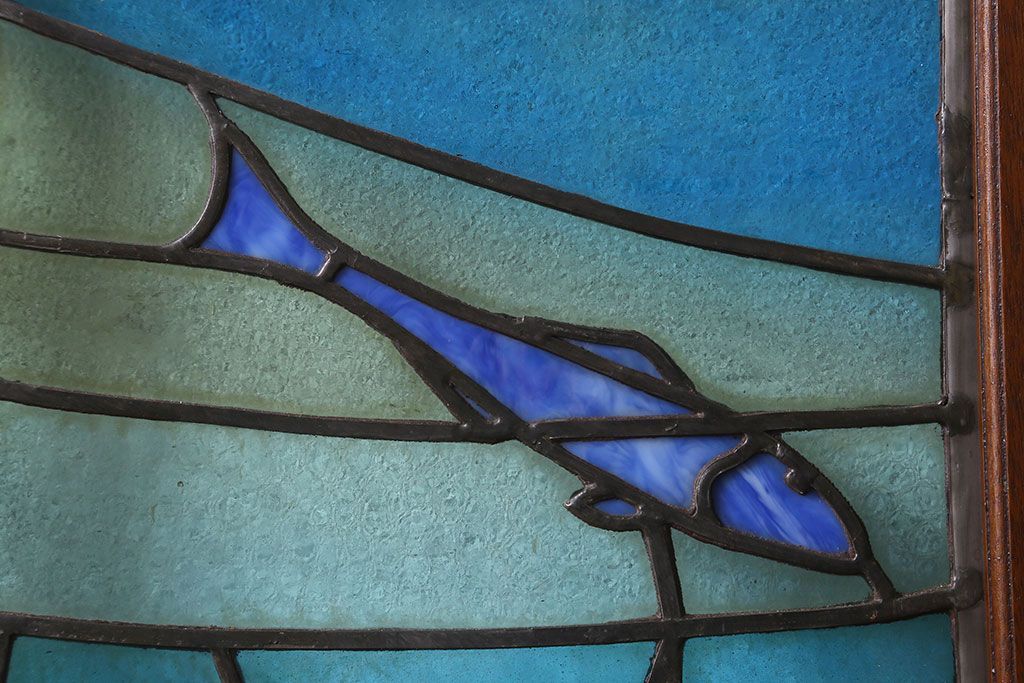 アンティーク雑貨 昭和初期 海の中にいるような図柄が素敵なステンドグラスのガラス戸(引き戸、建具)