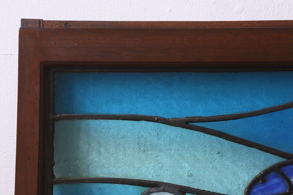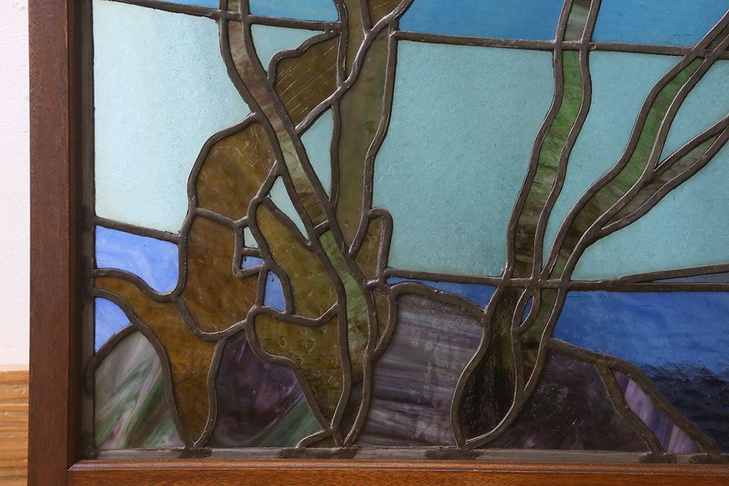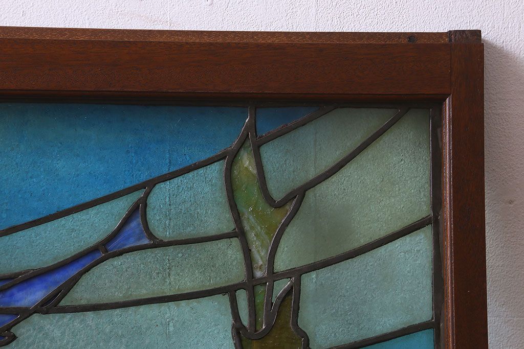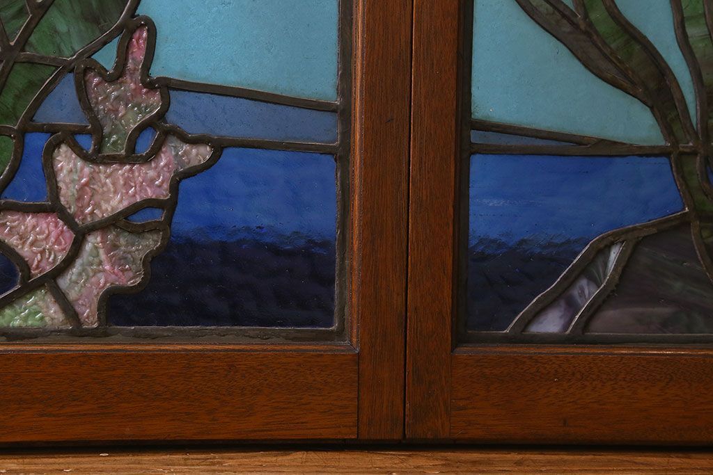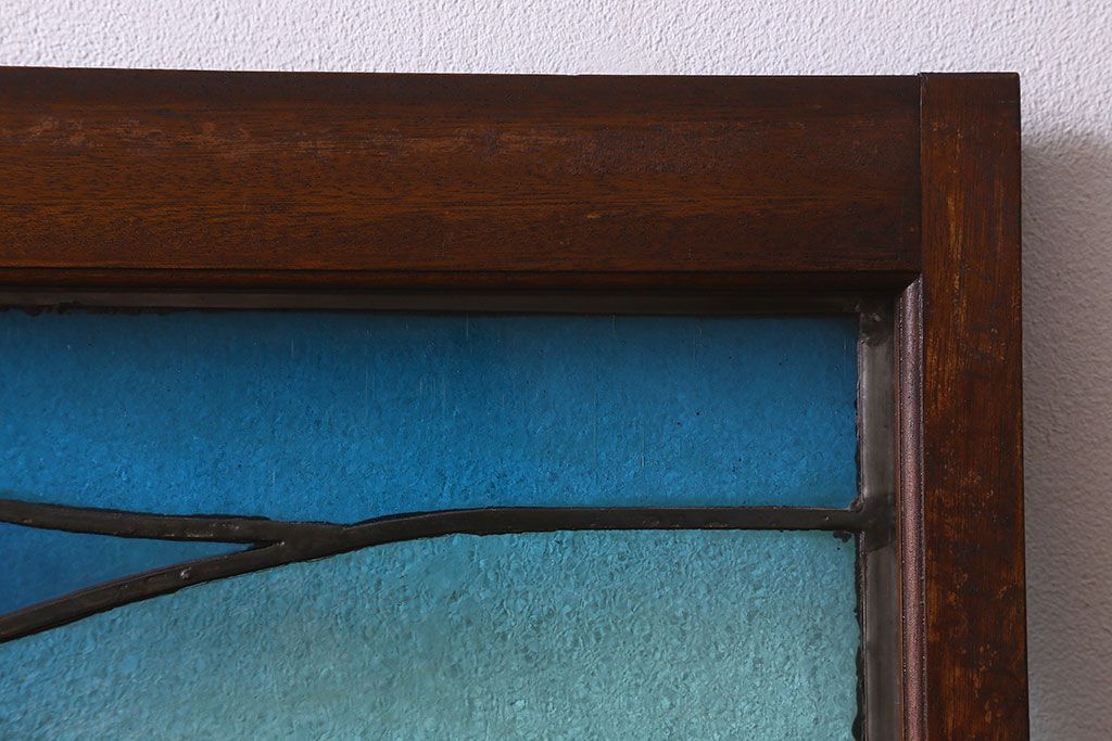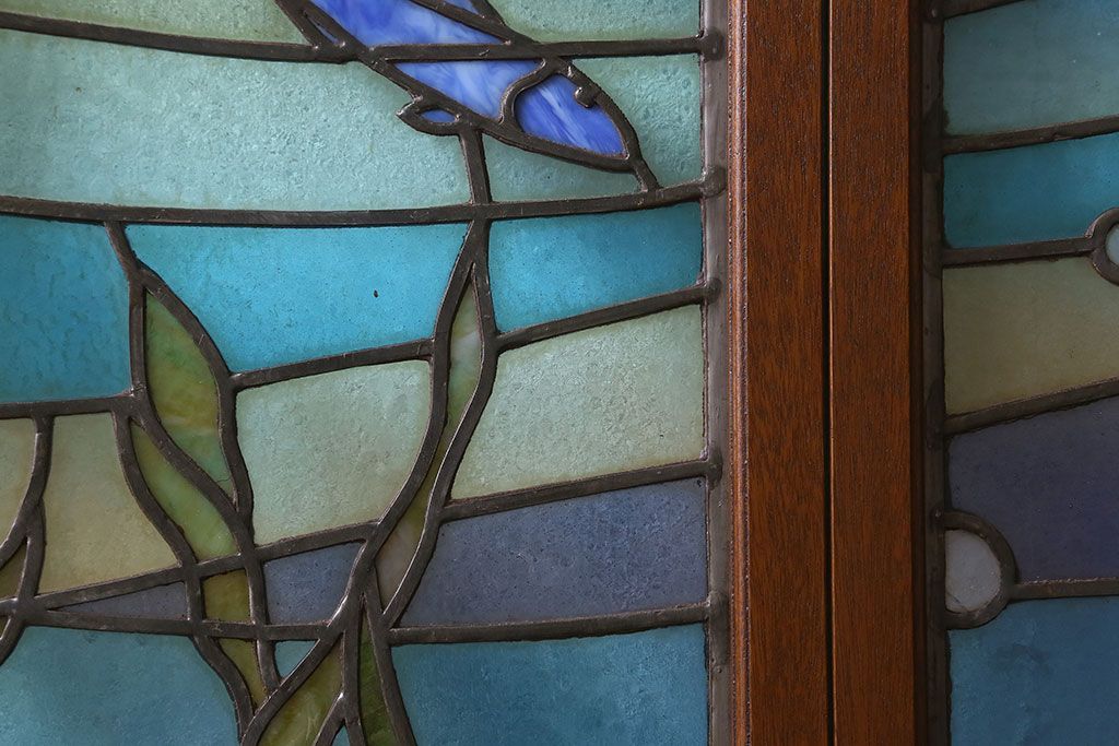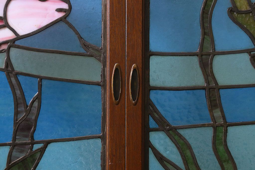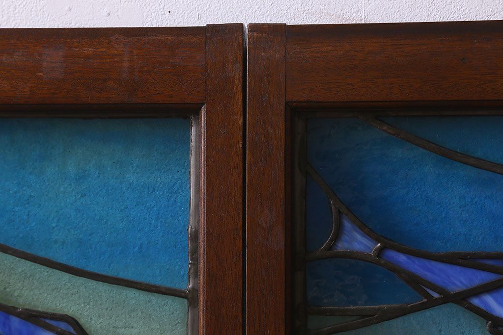 アンティーク雑貨 昭和初期 海の中にいるような図柄が素敵なステンドグラスのガラス戸(引き戸、建具)