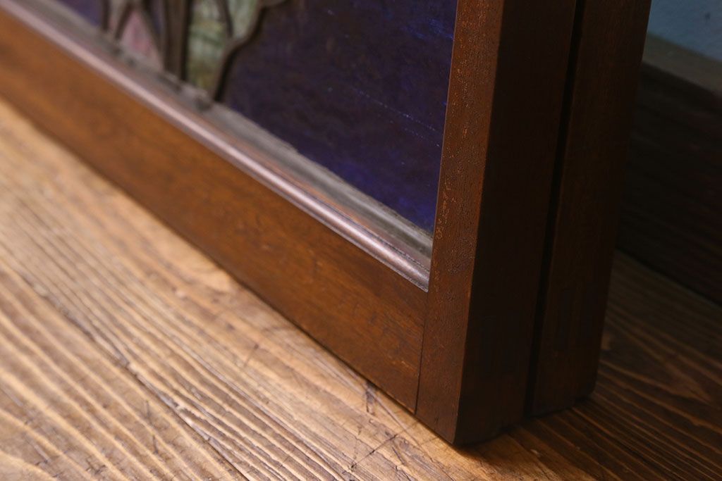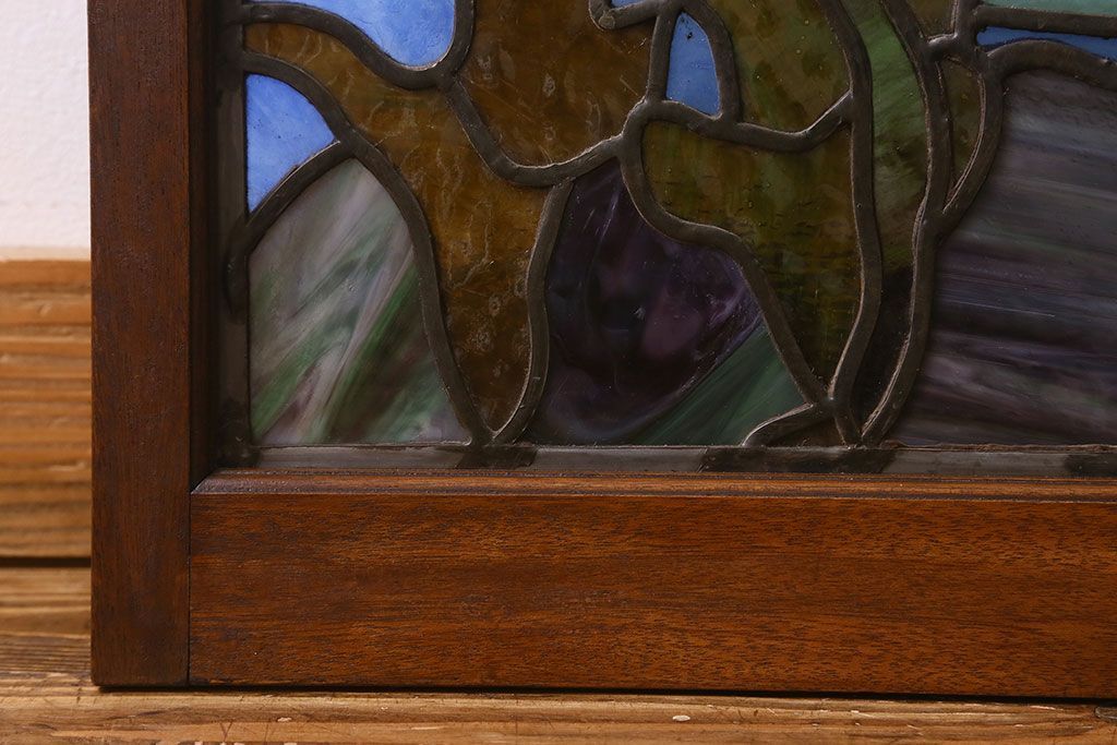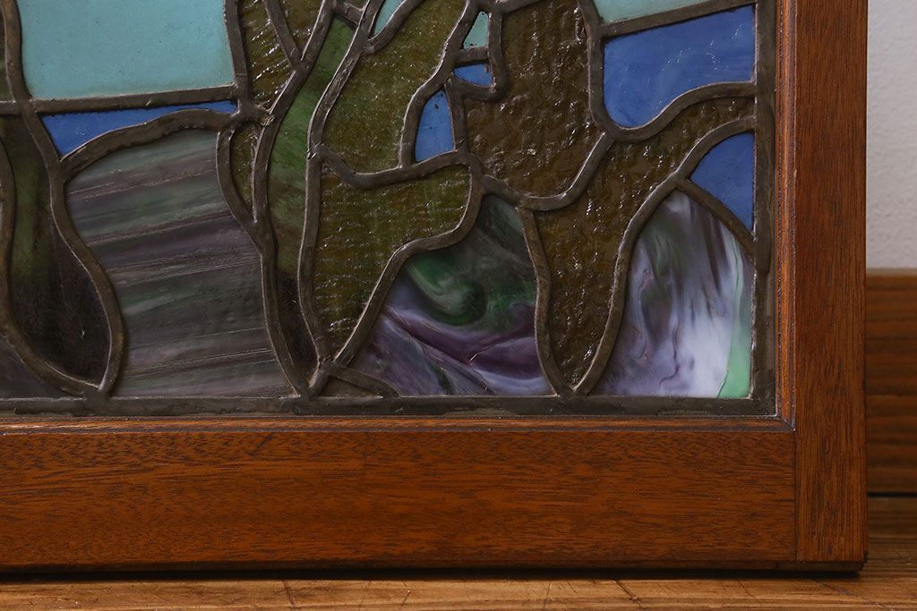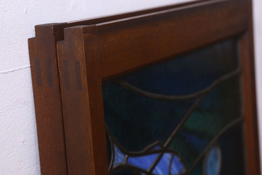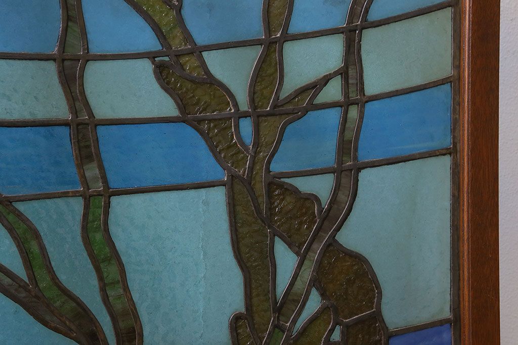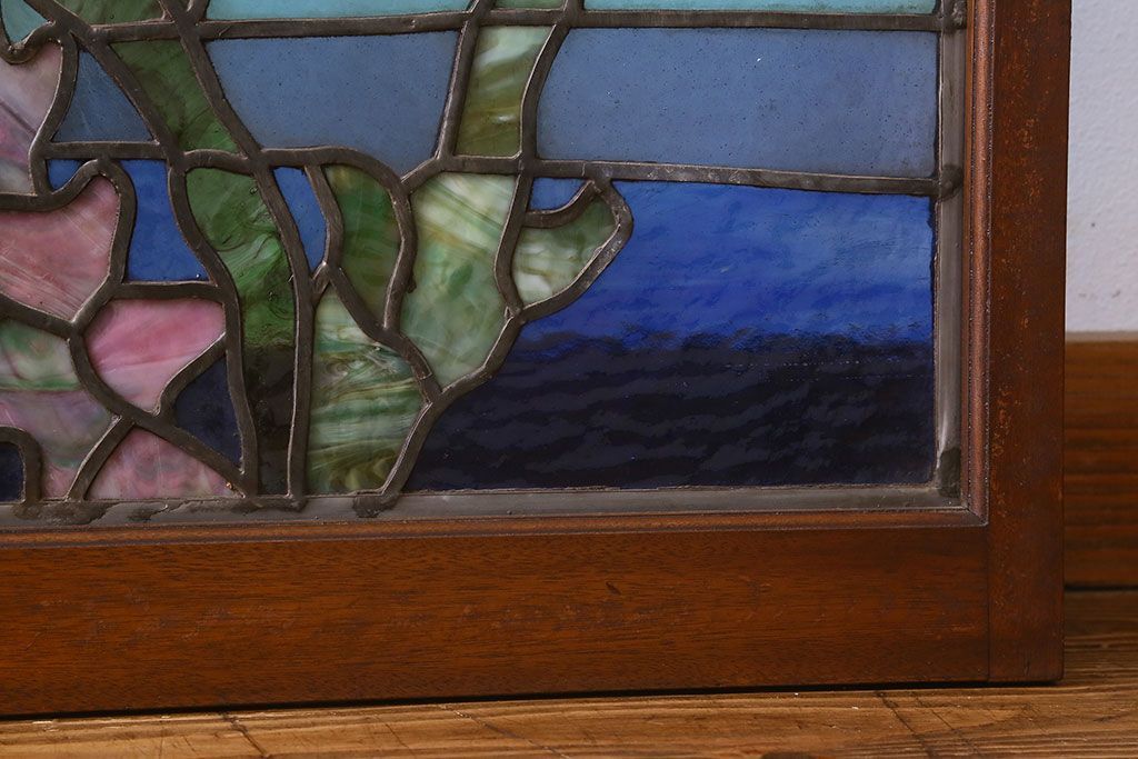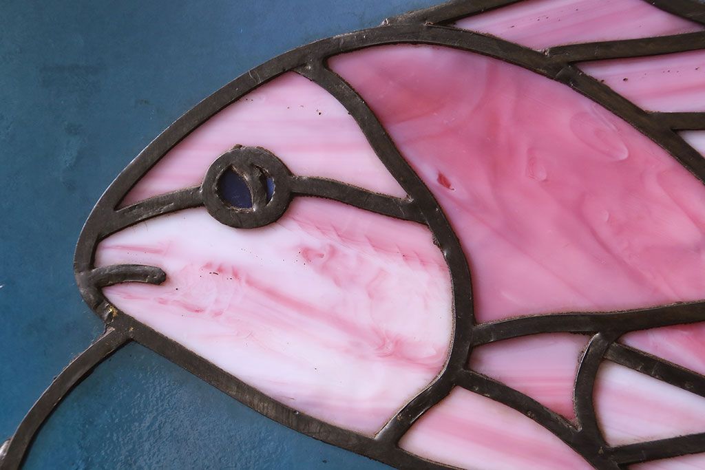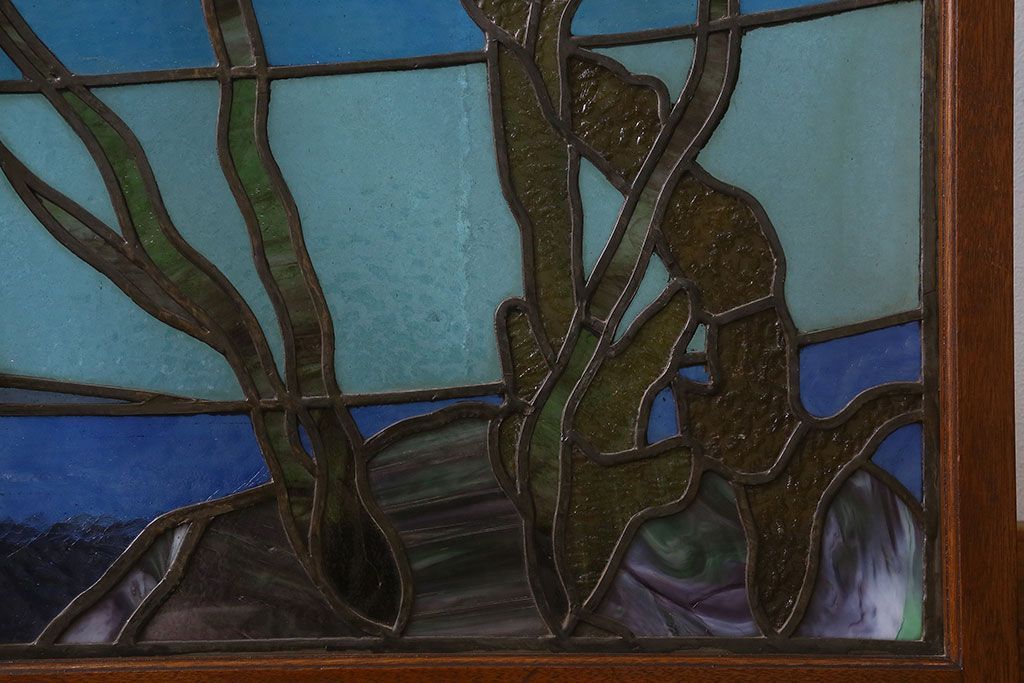 アンティーク雑貨 昭和初期 海の中にいるような図柄が素敵なステンドグラスのガラス戸(引き戸、建具)