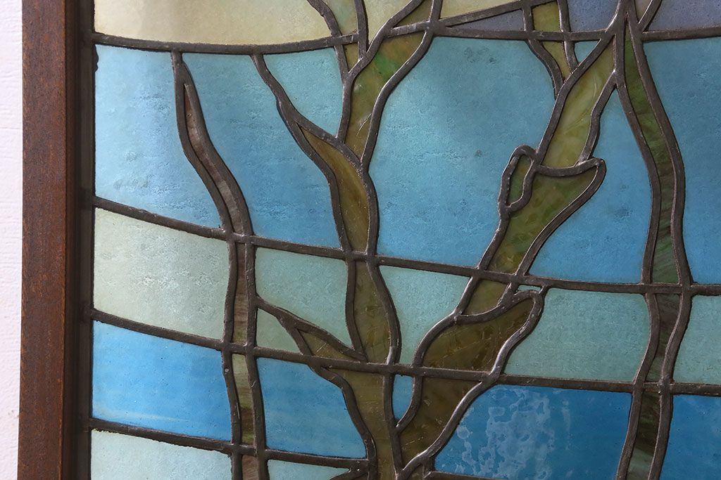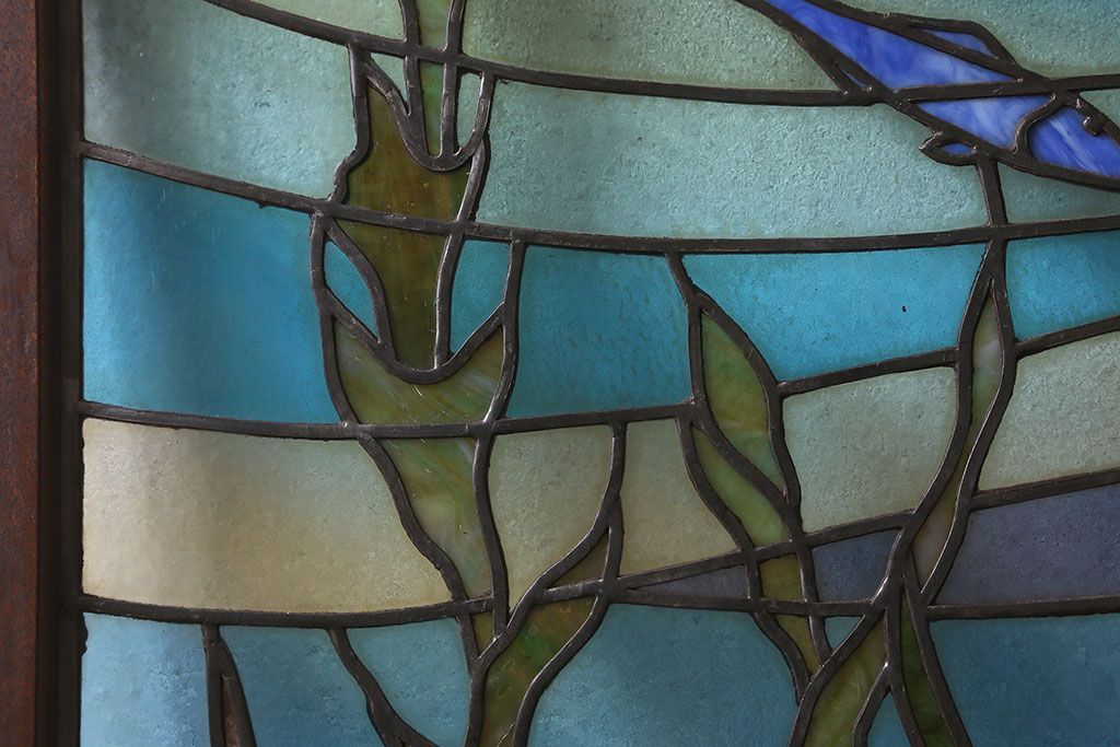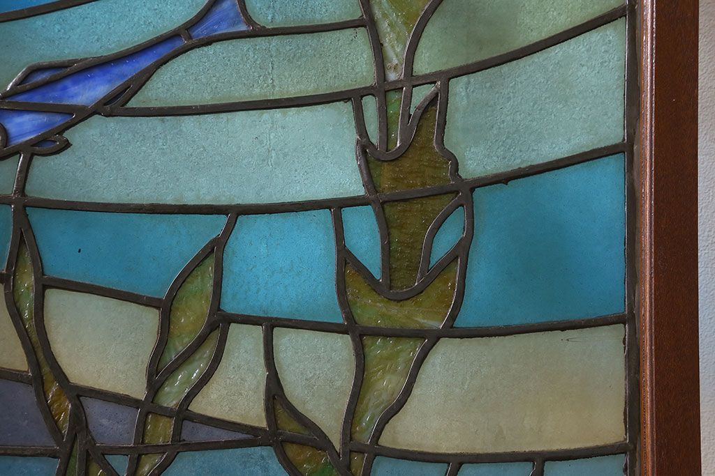 ラフジュ工房> ステンドグラス > アンティーク雑貨 昭和初期 海の中にいるような図柄が素敵なステンドグラスのガラス戸(引き戸、建具)
