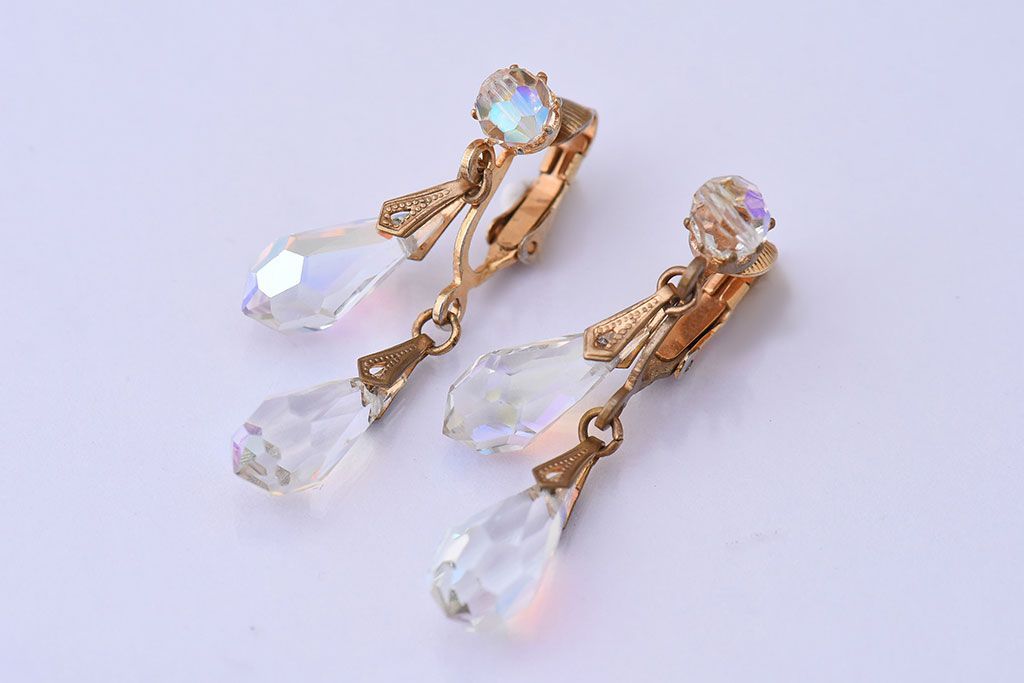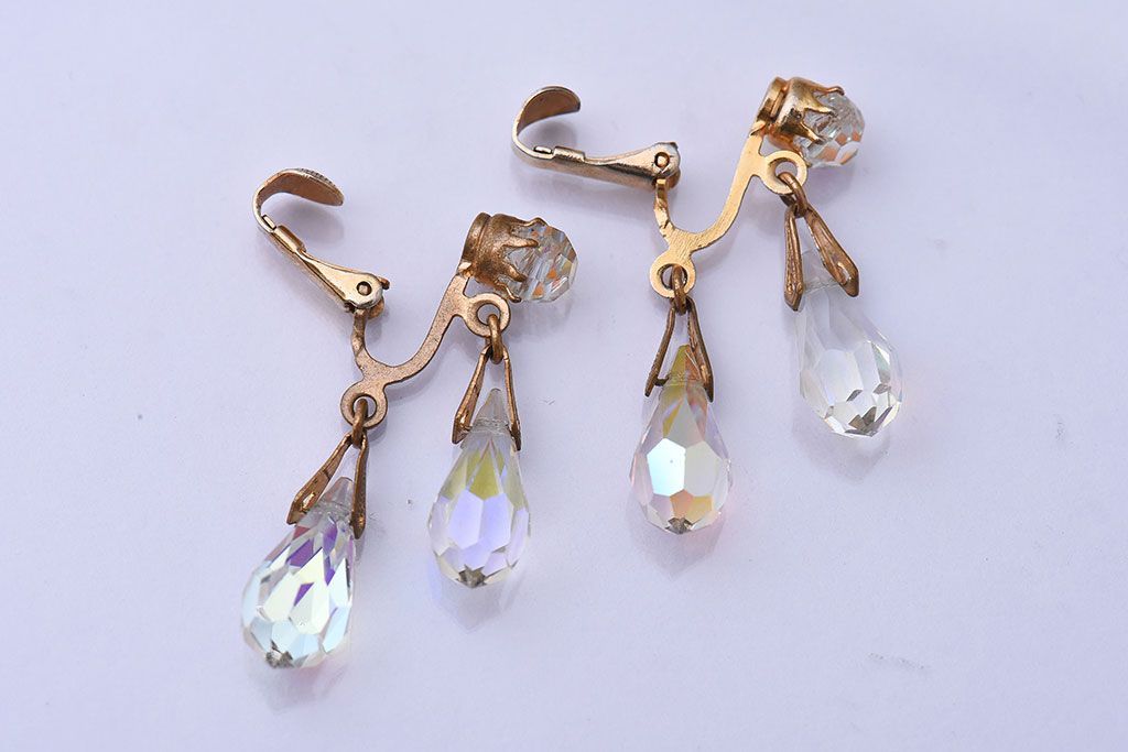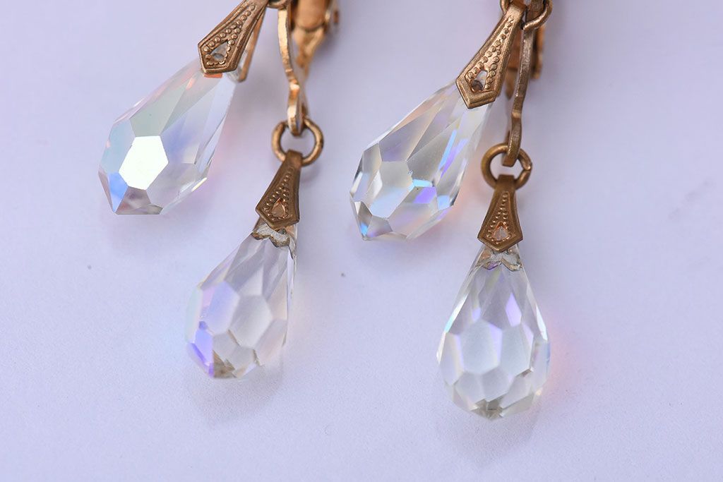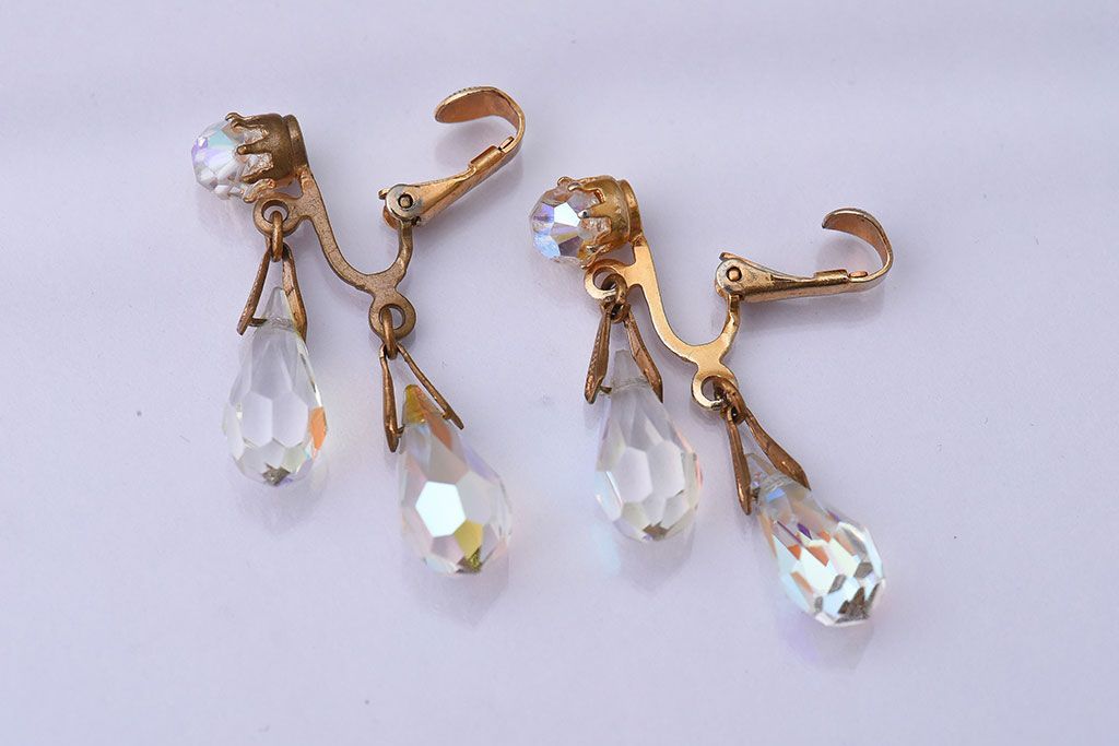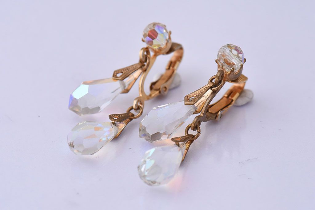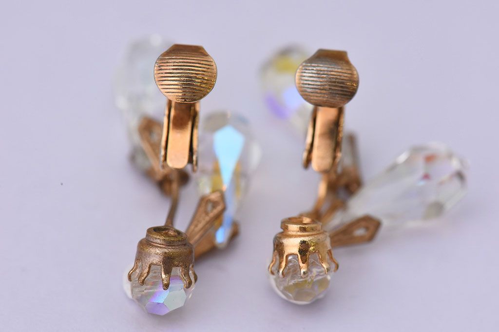 アンティーク雑貨 ヨーロッパビンテージ クリアビジュー付きイヤリング(ジュエリー・アクセサリー)