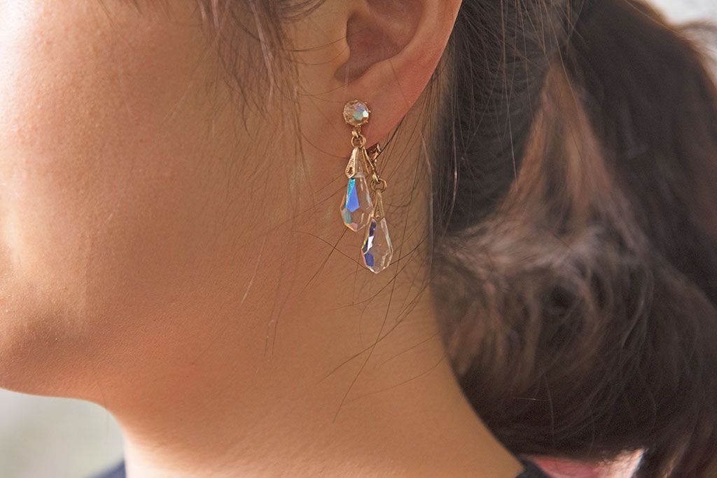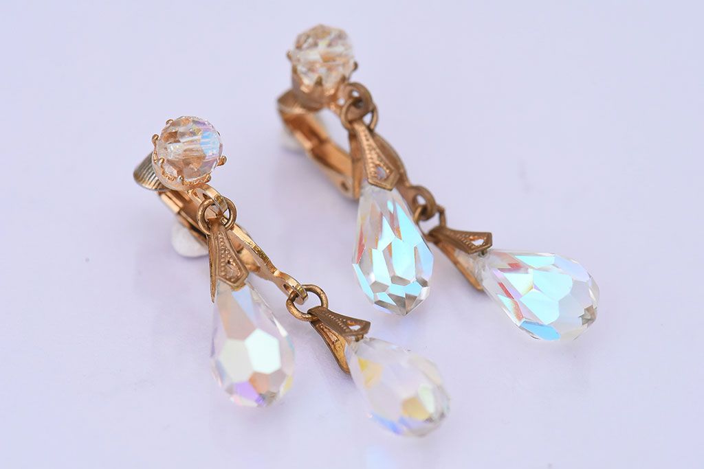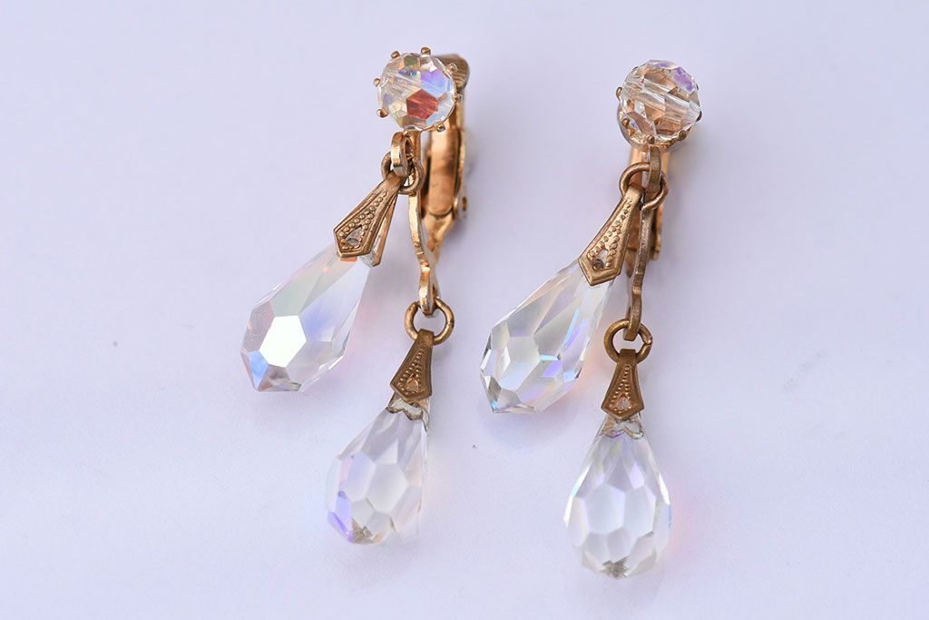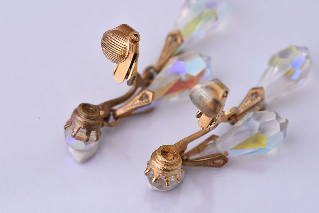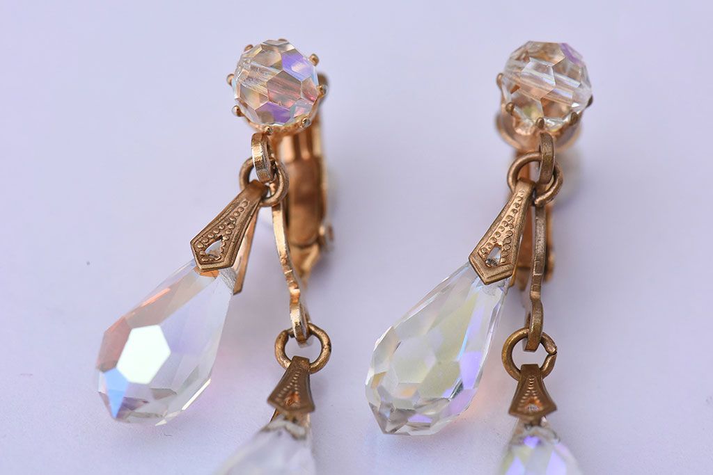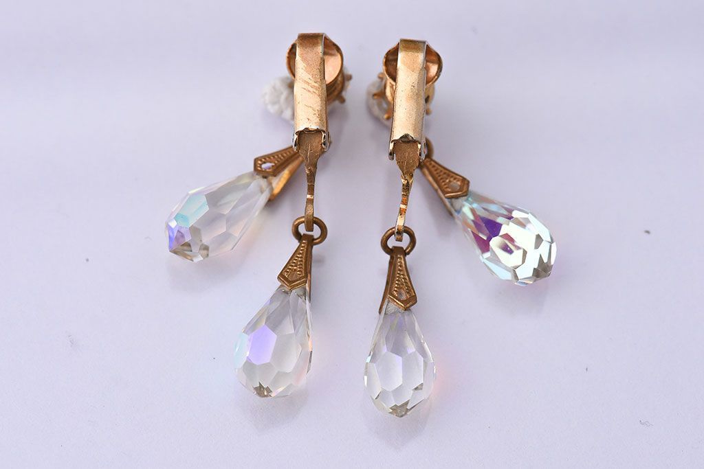 アンティーク雑貨 ヨーロッパビンテージ クリアビジュー付きイヤリング(ジュエリー・アクセサリー)