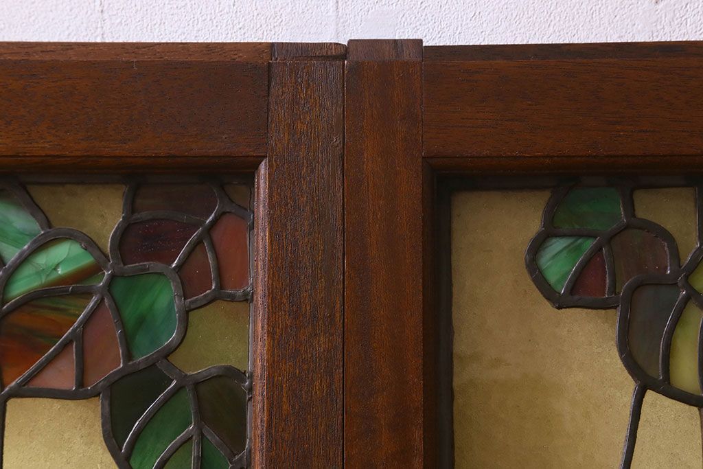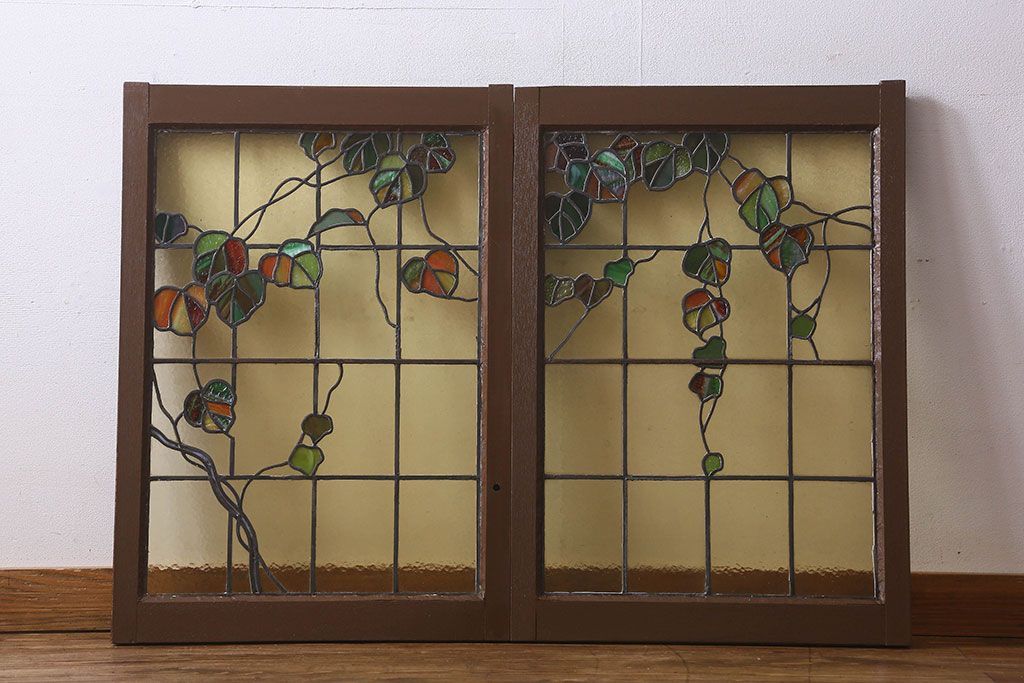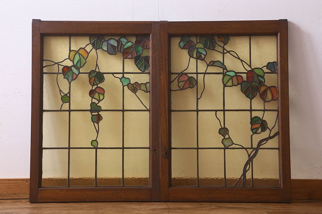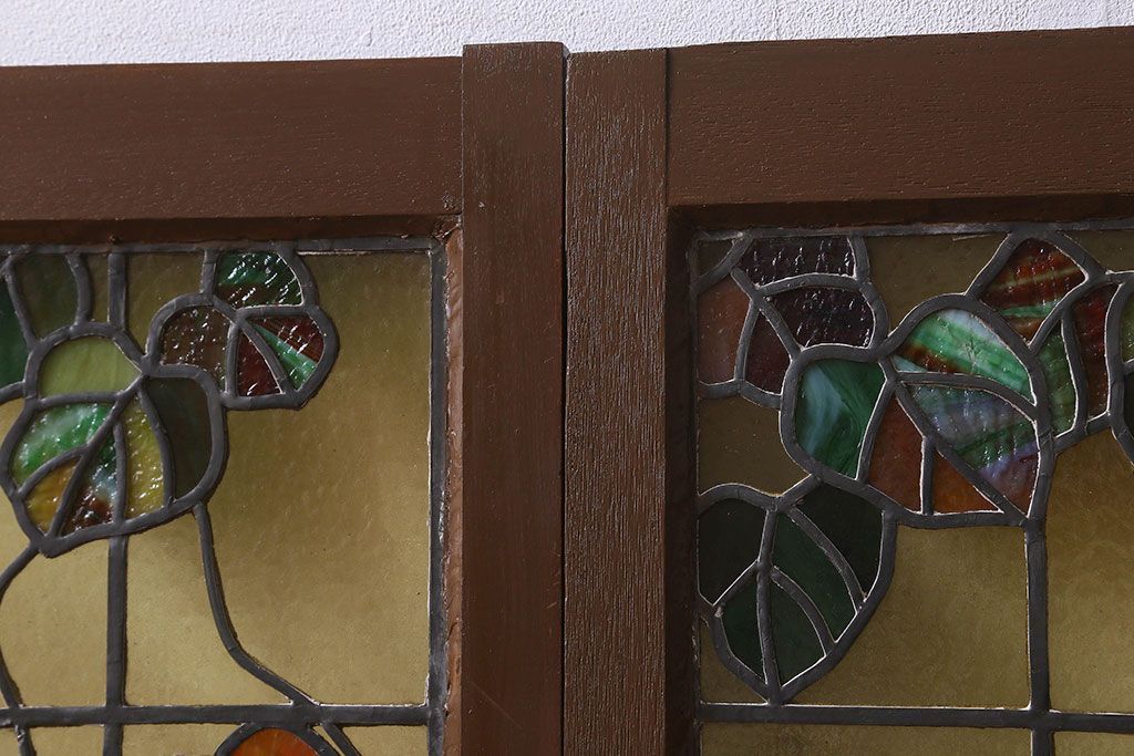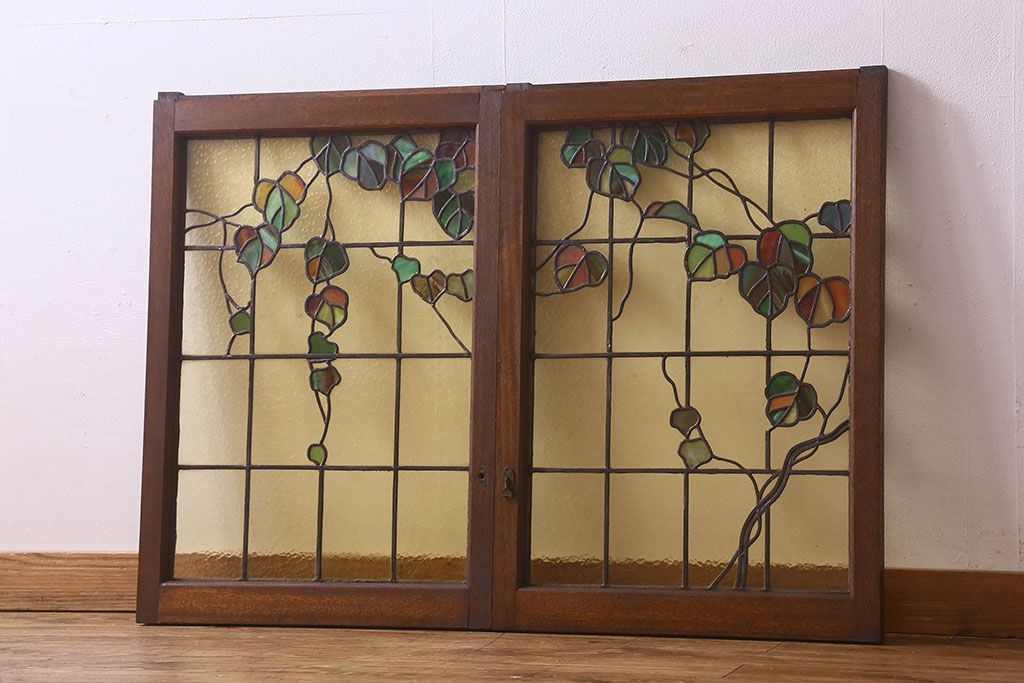 アンティーク雑貨 昭和初期 日本製 お部屋を洋館のような雰囲気に ステンドグラスのガラス戸(引き戸、建具)2枚組