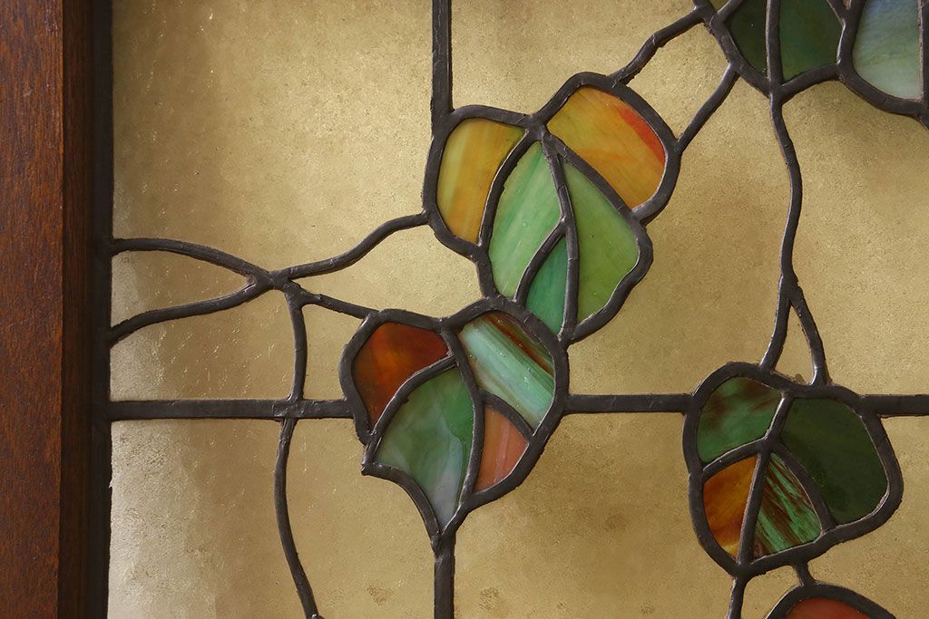 ラフジュ工房> ステンドグラス > アンティーク雑貨 昭和初期 日本製 お部屋を洋館のような雰囲気に ステンドグラスのガラス戸(引き戸、建具)2枚組