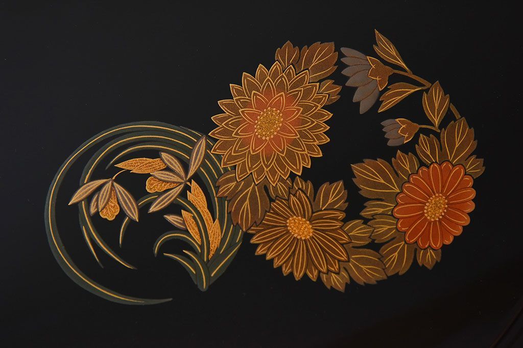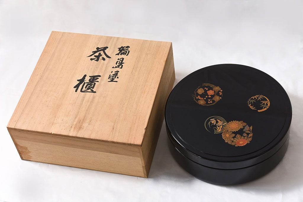 アンティーク雑貨 茶道具 輪島塗 花丸蒔絵 木製茶櫃(茶器、小物入れ)(定価約20万)