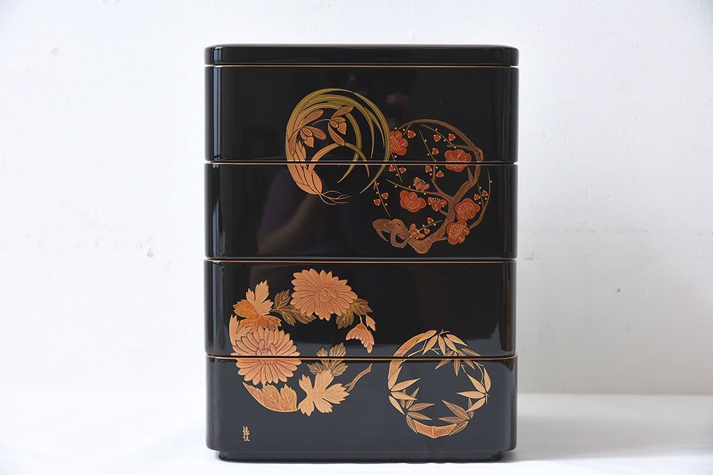 輪島塗 花丸蒔絵 木製四段重箱(お重)(定価約70万)
