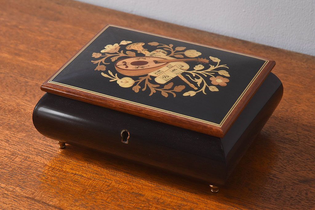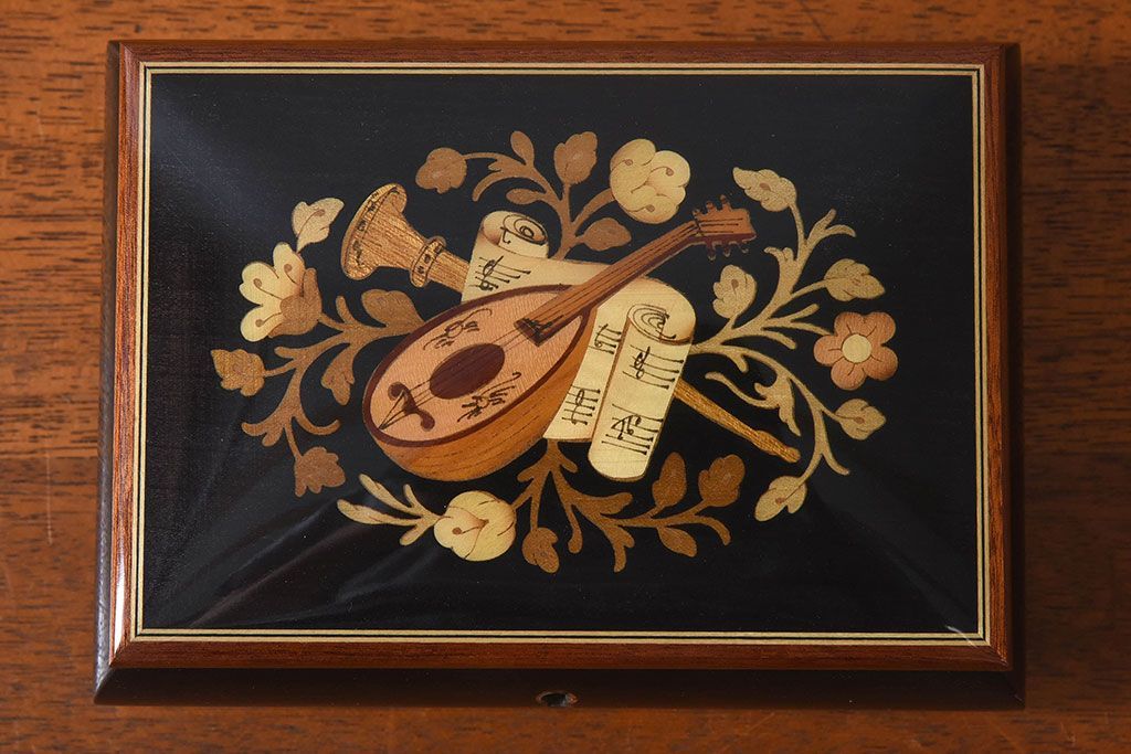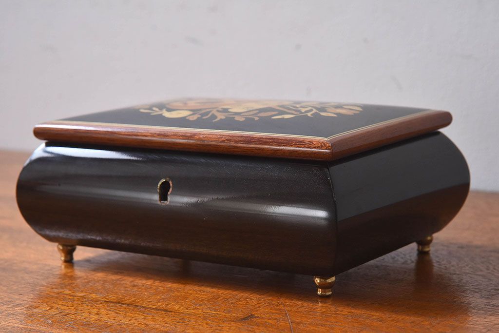 アンティーク雑貨 ビンテージ イタリア製 MAPSA 上品な雰囲気漂う象嵌のオルゴール(ジュエリーケース)
