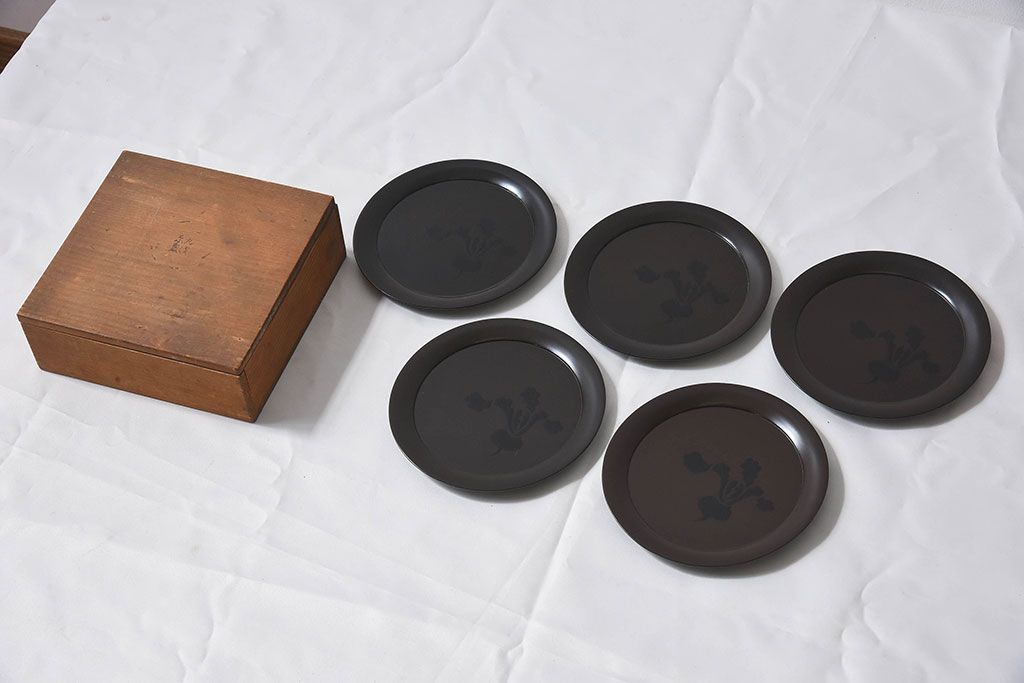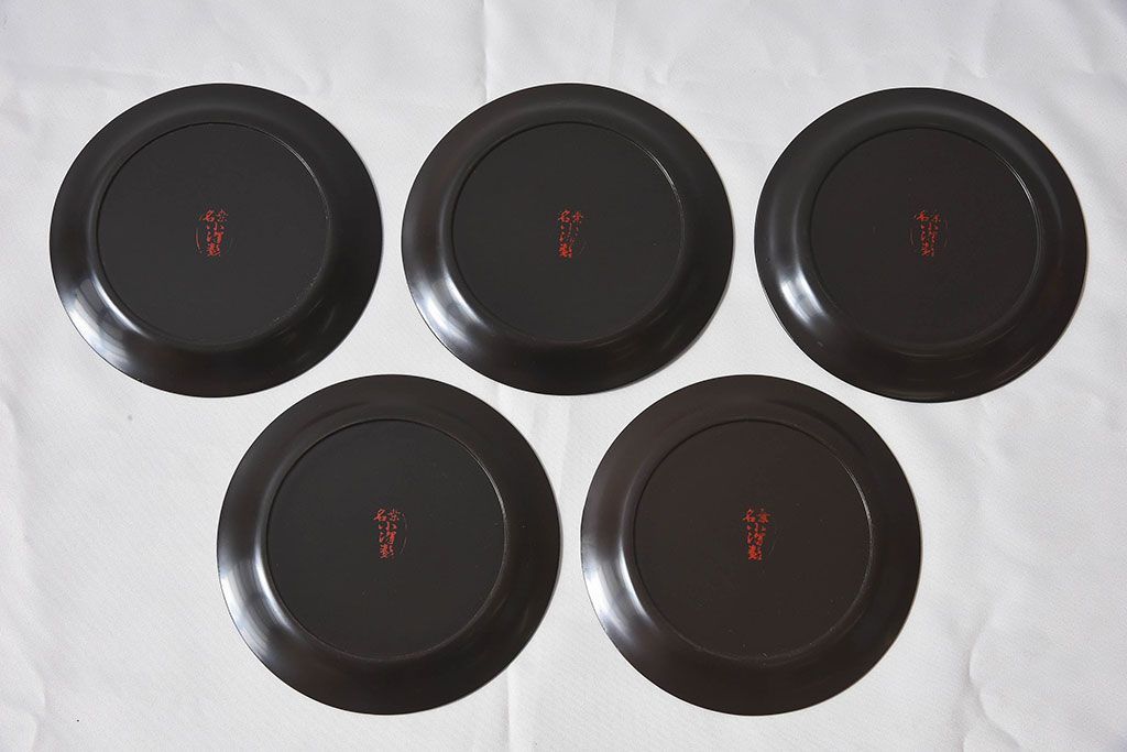 ラフジュ工房> 骨董・美術品> 骨董-漆器 > 大正〜昭和初期 桑名塗師小澤造 木製菓子皿(漆器)5枚セット