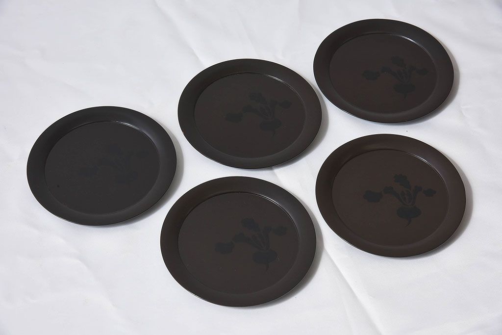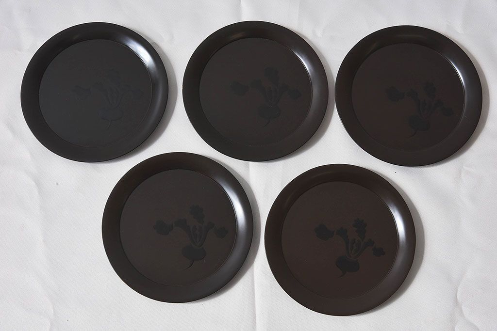 ラフジュ工房> 和食器・茶道具> 皿 > 大正〜昭和初期 桑名塗師小澤造 木製菓子皿(漆器)5枚セット