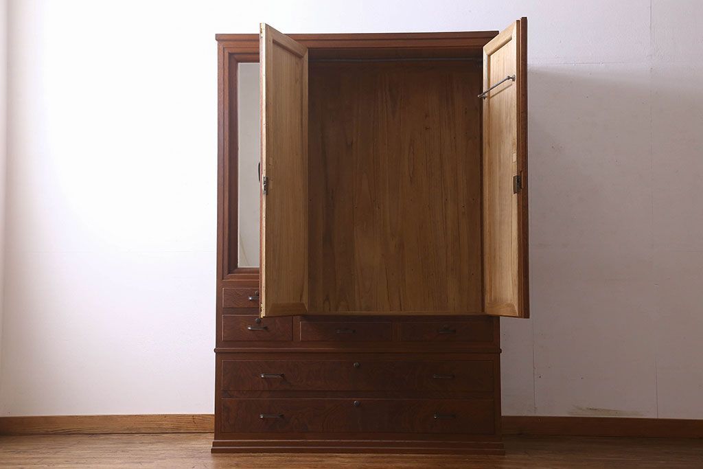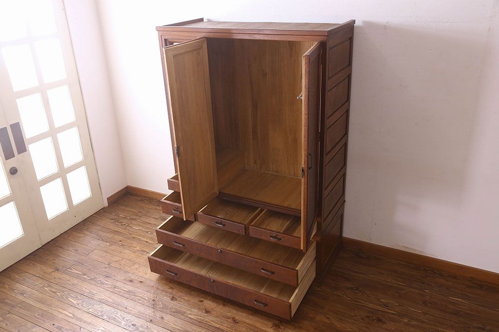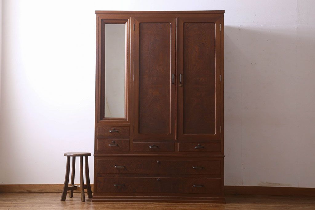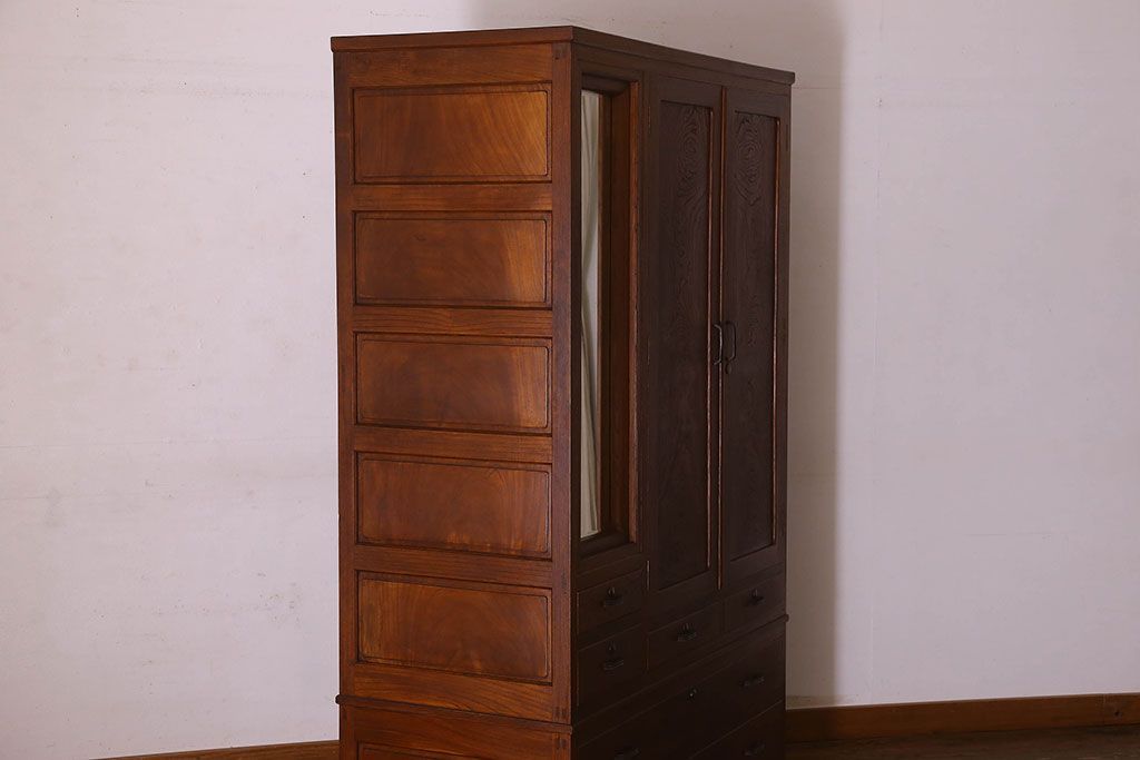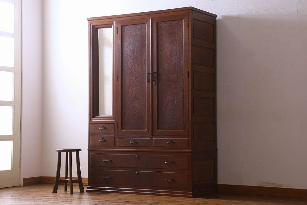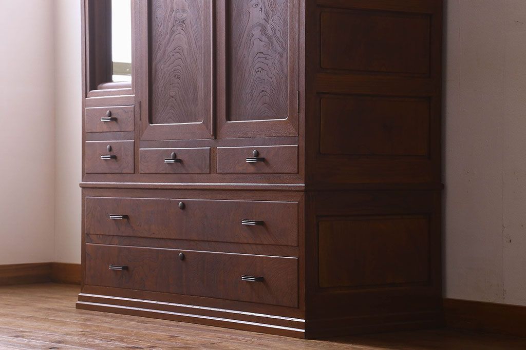 アンティーク家具 和製アンティーク ケヤキ材 重厚な存在感を放つワードローブ(収納棚、タンス)