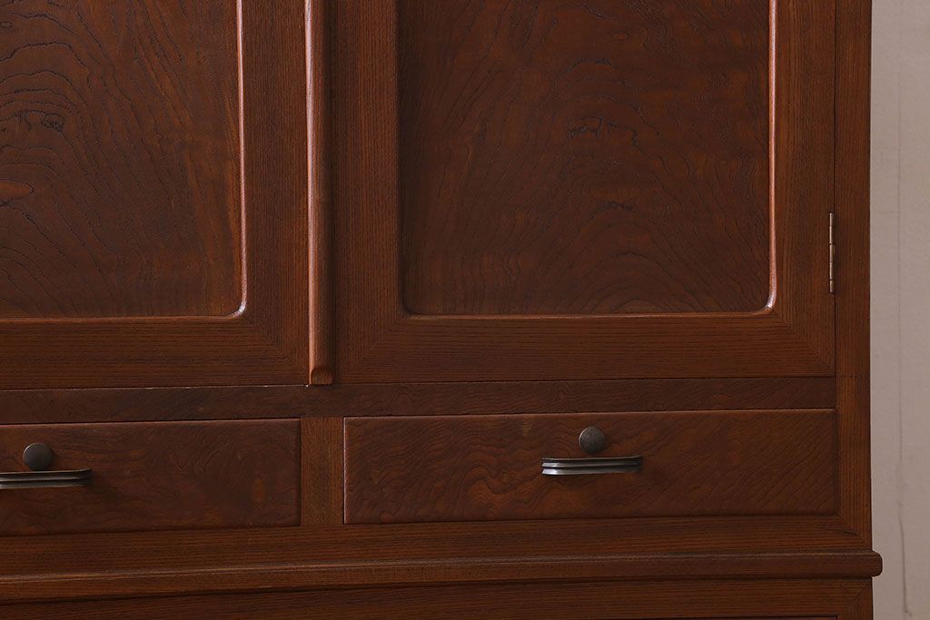 ラフジュ工房> ワードローブ・ロッカー> ワードローブ > アンティーク家具 和製アンティーク ケヤキ材 重厚な存在感を放つワードローブ(収納棚、タンス)