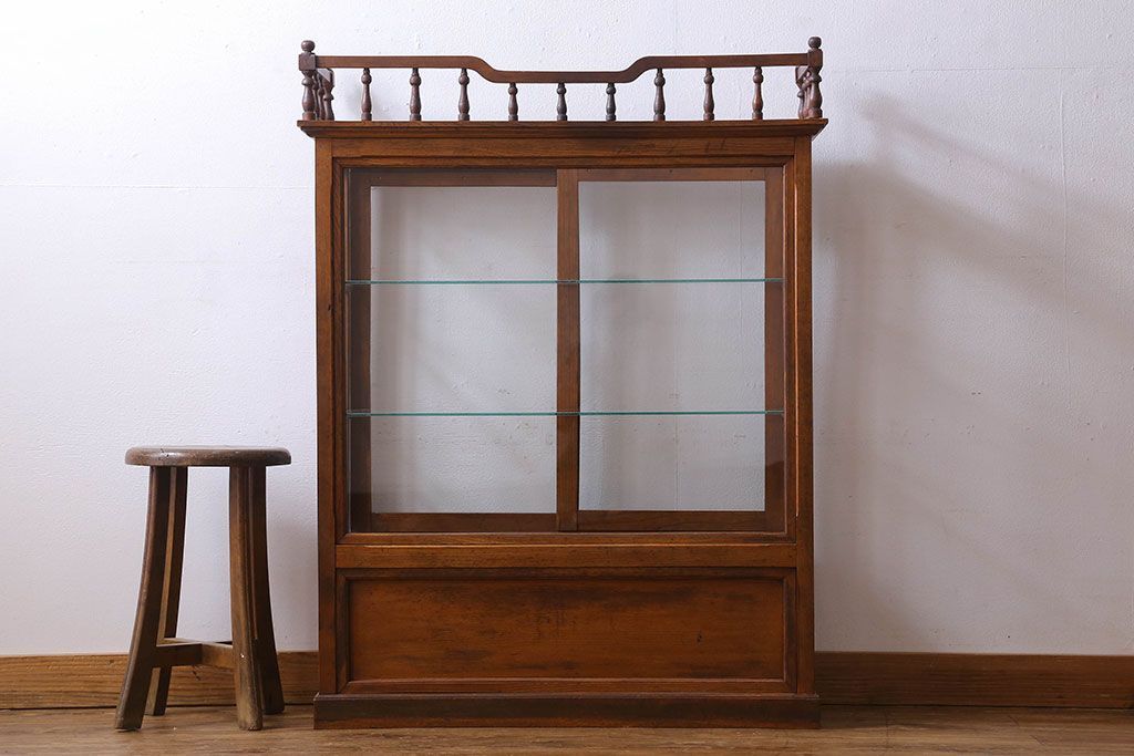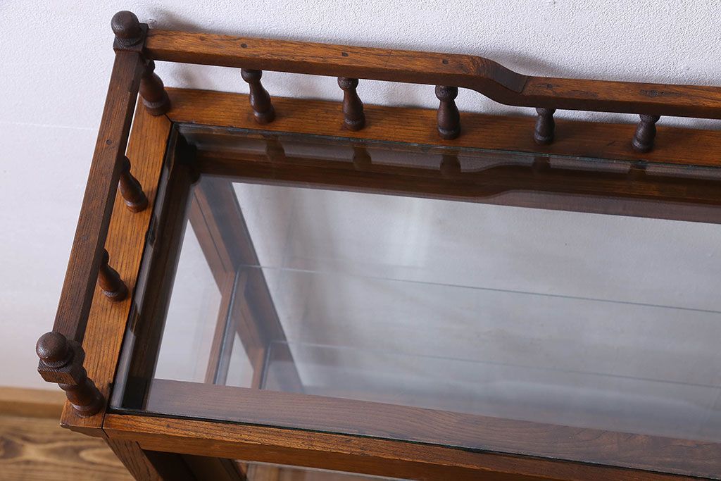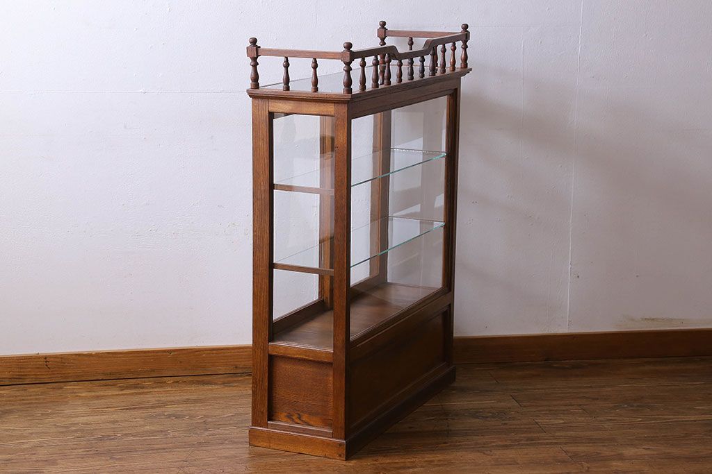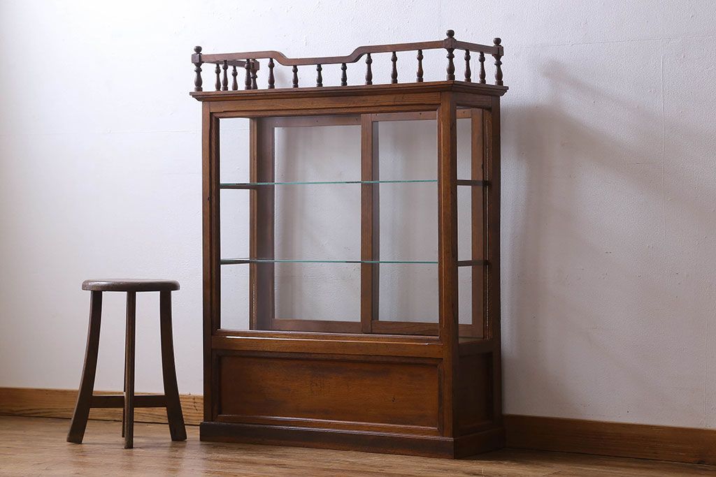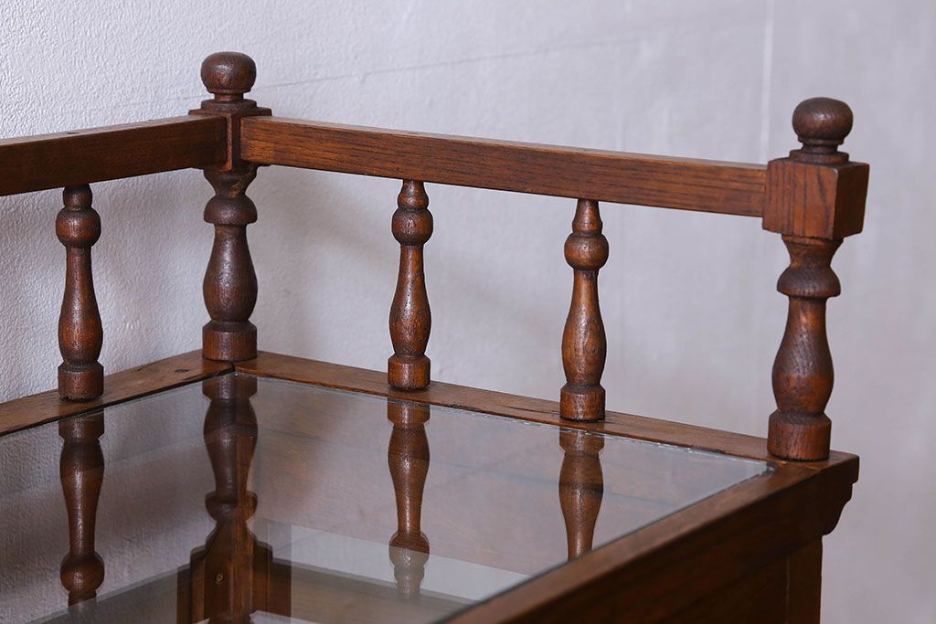 ラフジュ工房> 店舗什器 > アンティーク家具 和製アンティーク 天飾りがおしゃれな栓材のショーケース(ガラスケース、陳列棚、飾り棚)