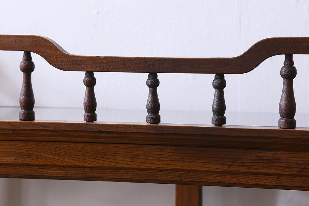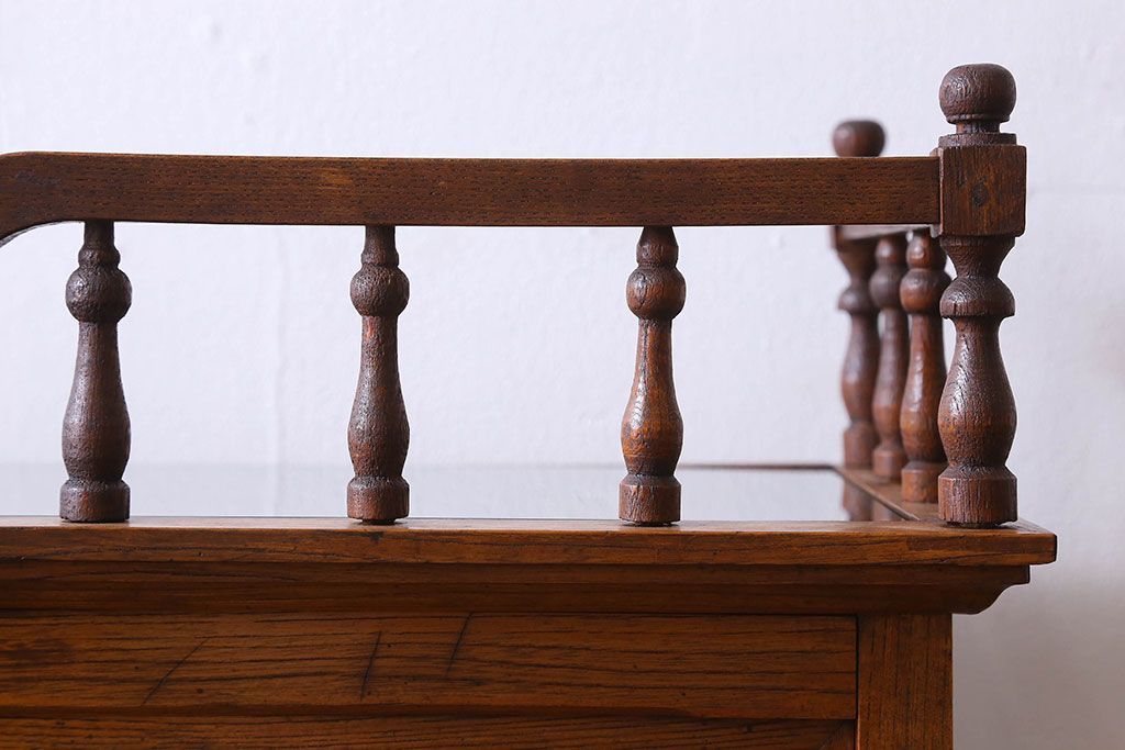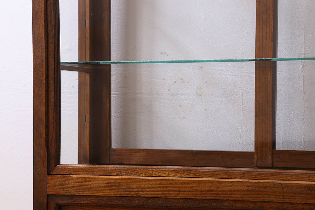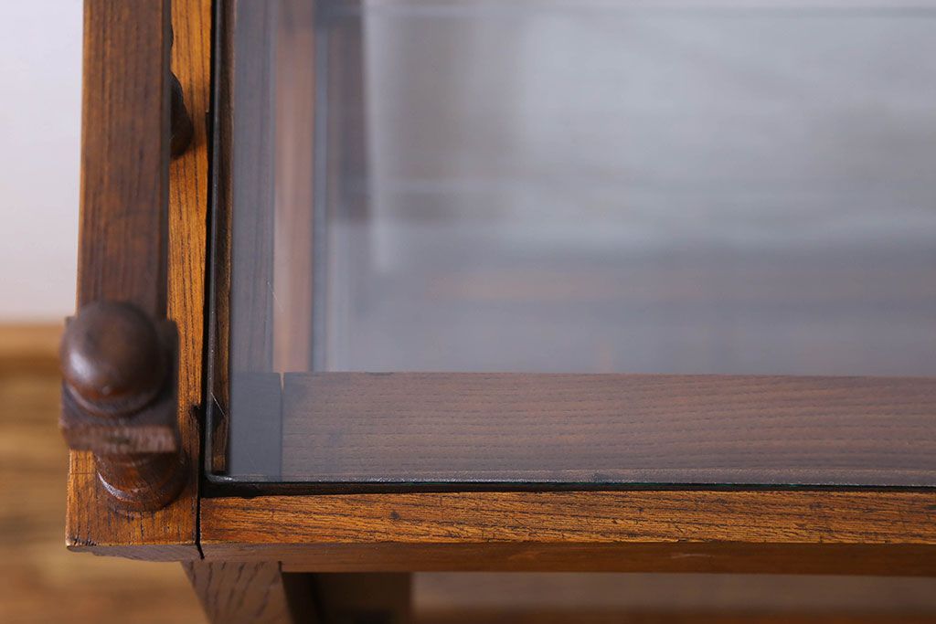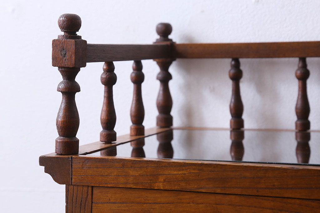 ラフジュ工房> 店舗什器 > アンティーク家具 和製アンティーク 天飾りがおしゃれな栓材のショーケース(ガラスケース、陳列棚、飾り棚)