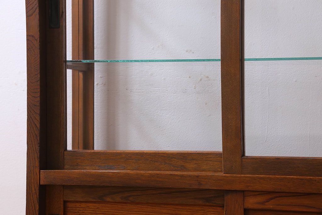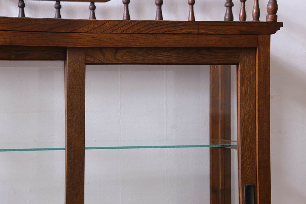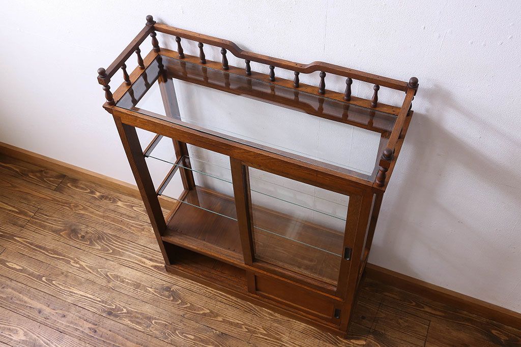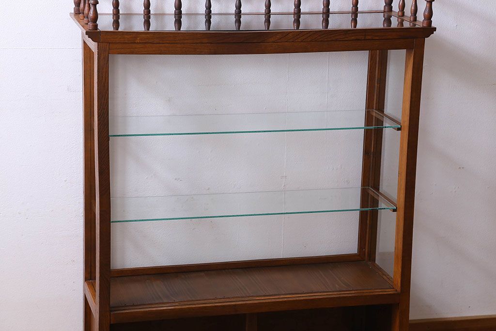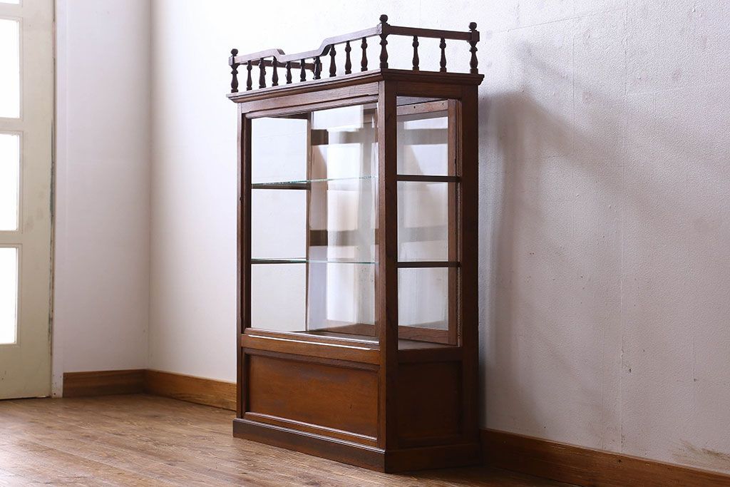 ラフジュ工房> ガラスケース・ショーケース > アンティーク家具 和製アンティーク 天飾りがおしゃれな栓材のショーケース(ガラスケース、陳列棚、飾り棚)