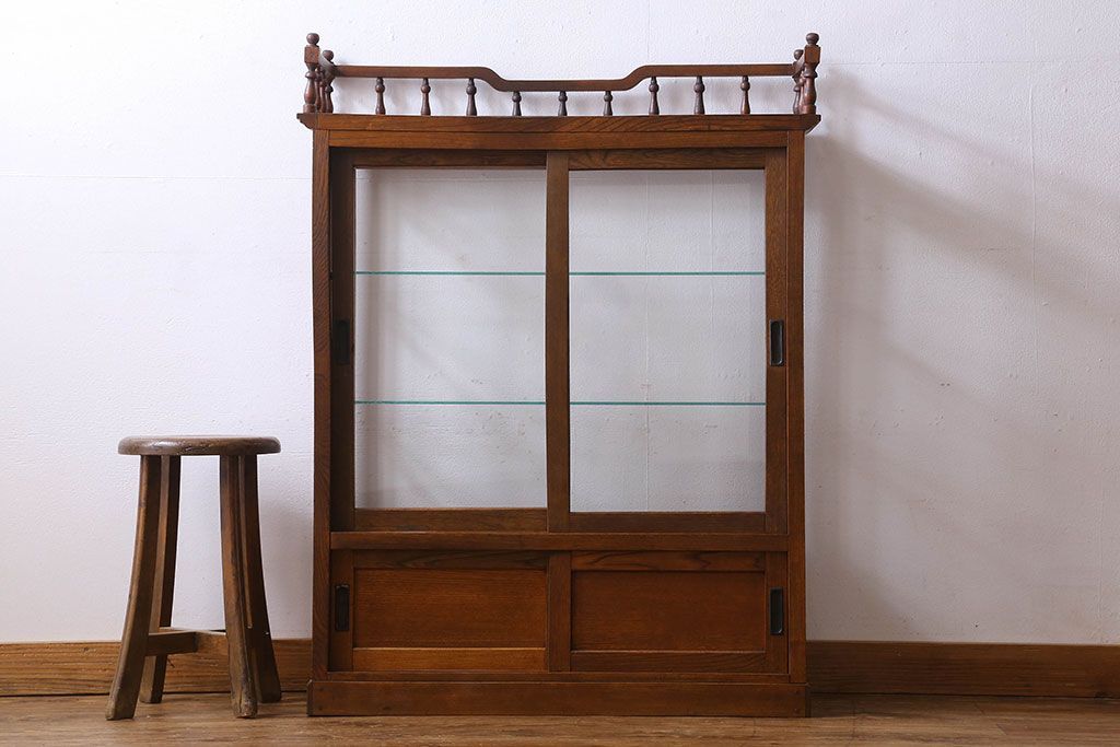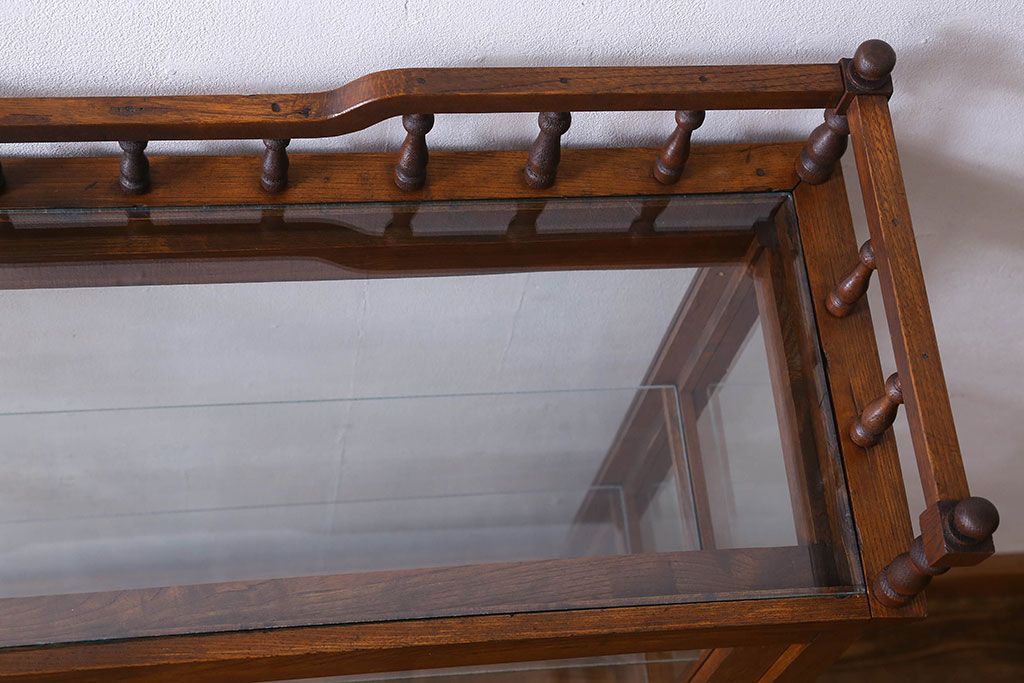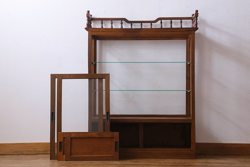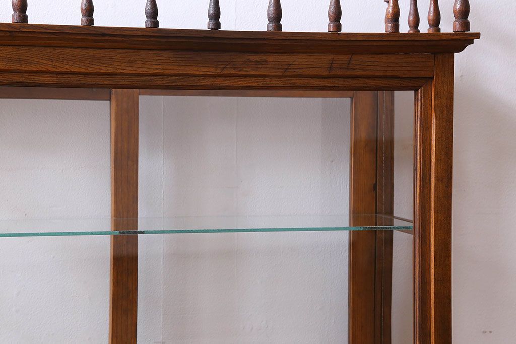 アンティーク家具 和製アンティーク 天飾りがおしゃれな栓材のショーケース(ガラスケース、陳列棚、飾り棚)