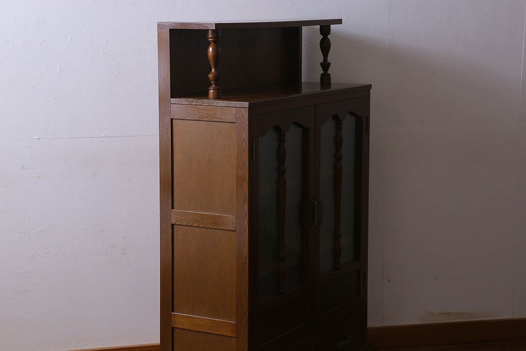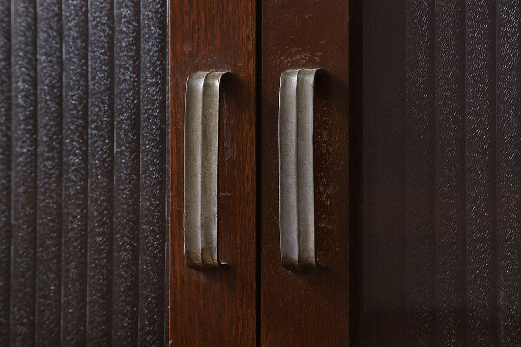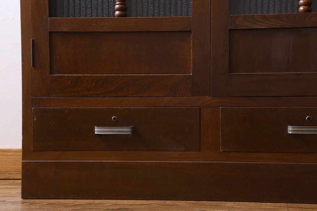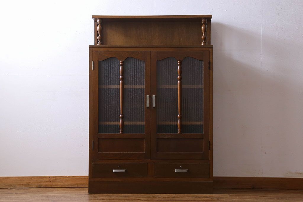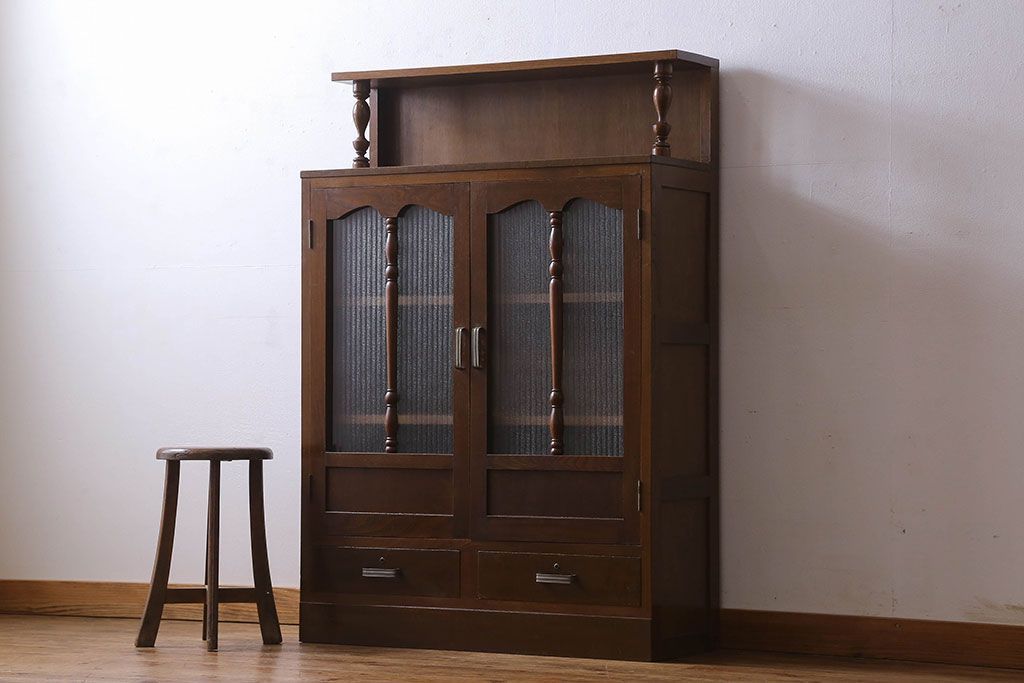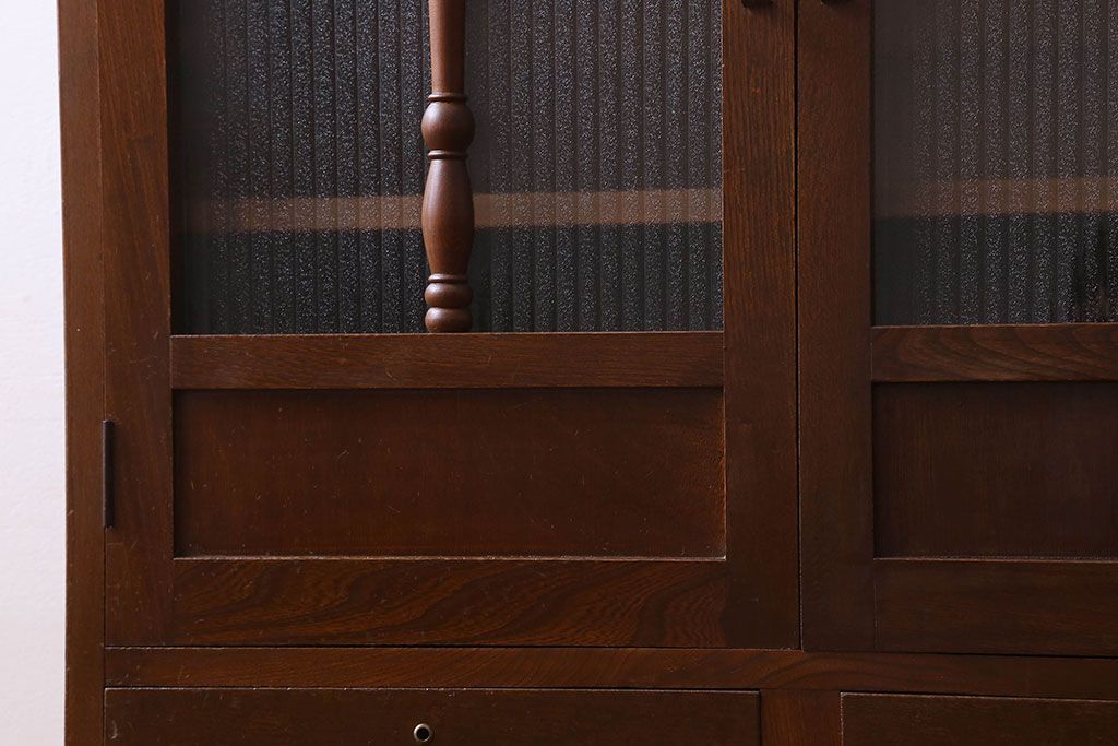 ラフジュ工房> キャビネット・戸棚> 食器棚・カップボード > レトロ家具 レトロガラス入り!上品な佇まいのアンティークブックケース(本箱、収納棚、食器棚)