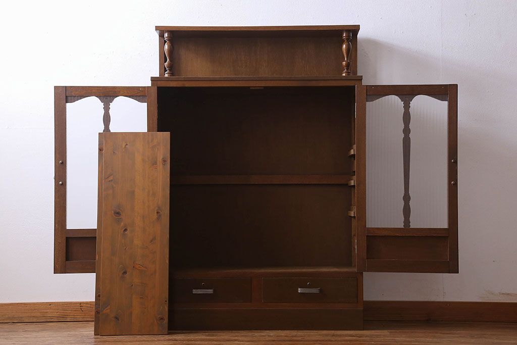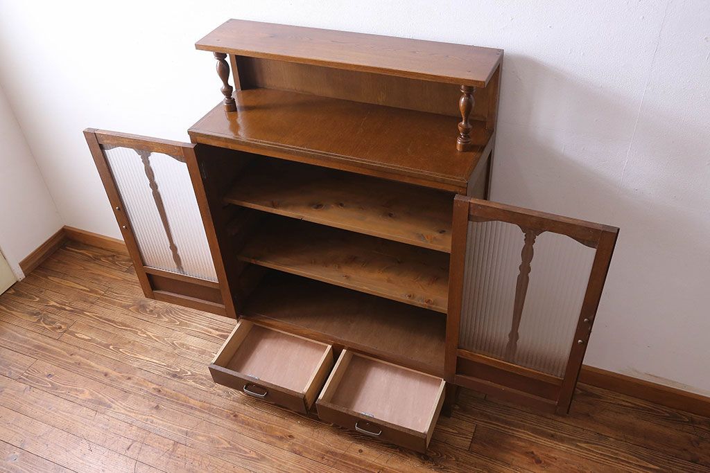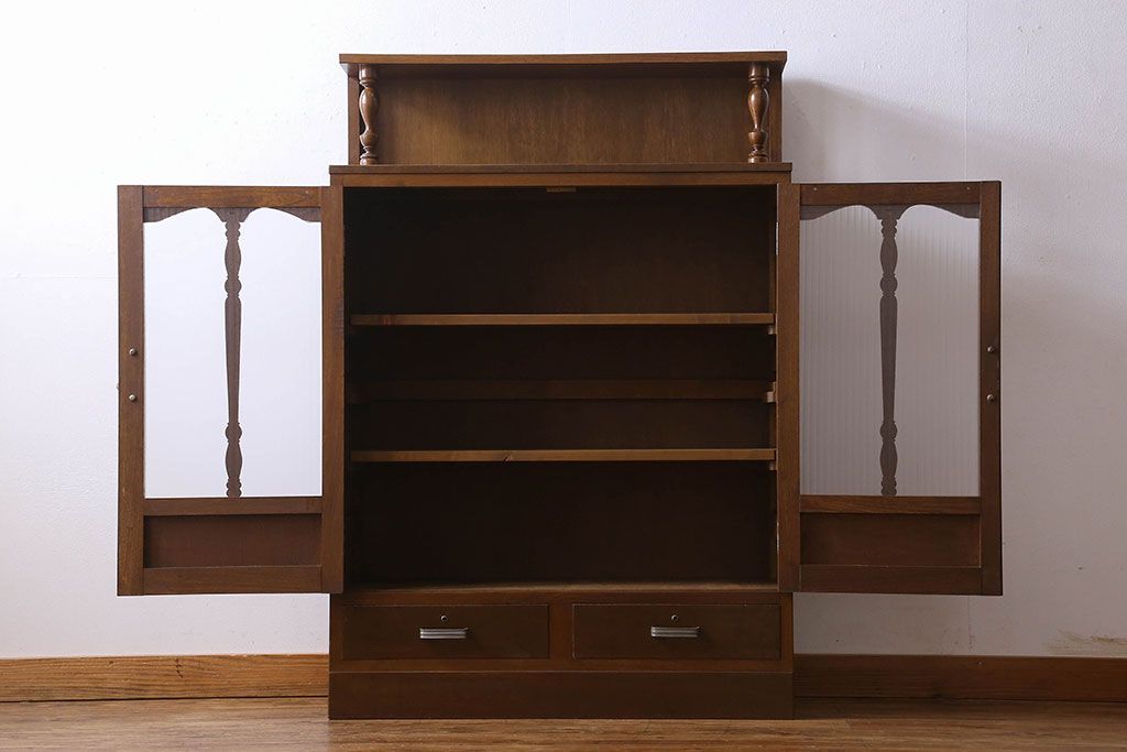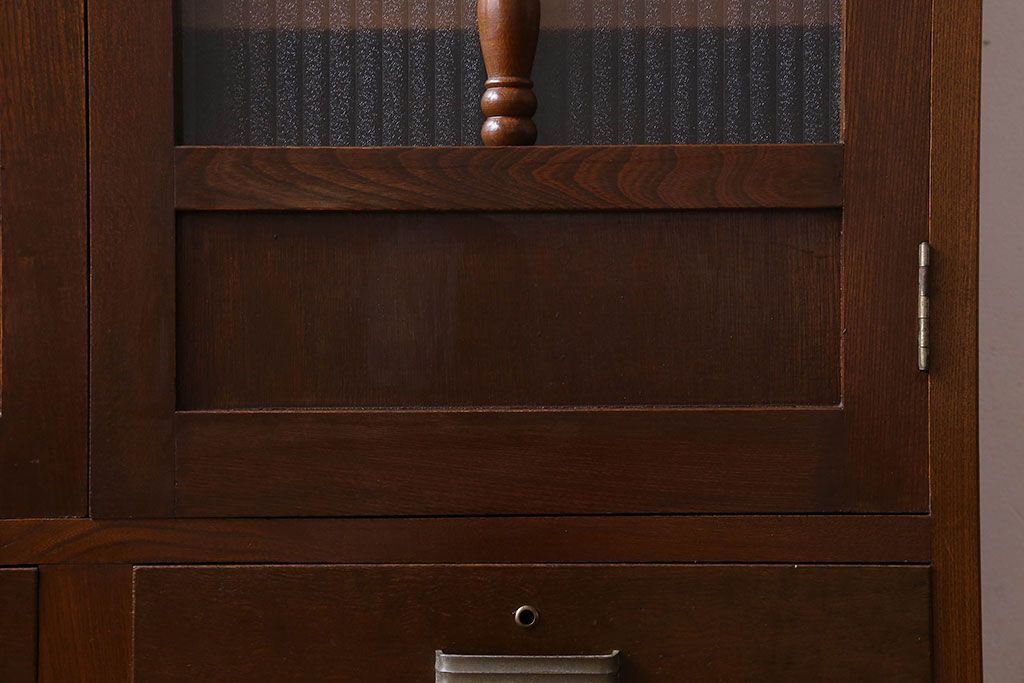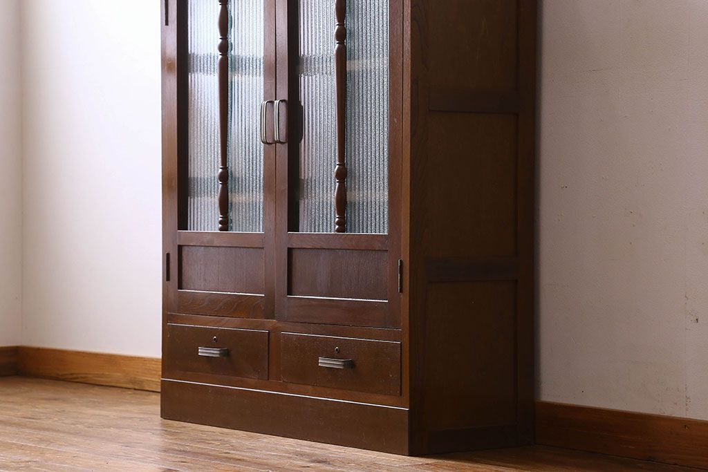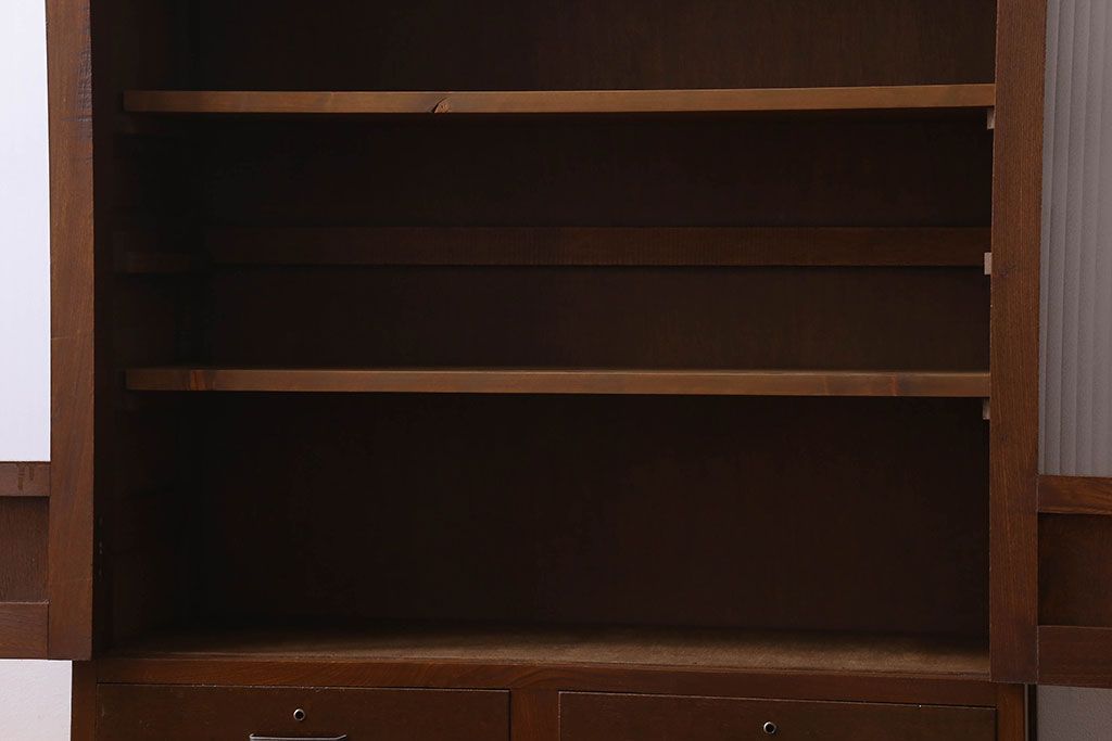 ラフジュ工房> キャビネット・戸棚> 食器棚・カップボード > レトロ家具 レトロガラス入り!上品な佇まいのアンティークブックケース(本箱、収納棚、食器棚)