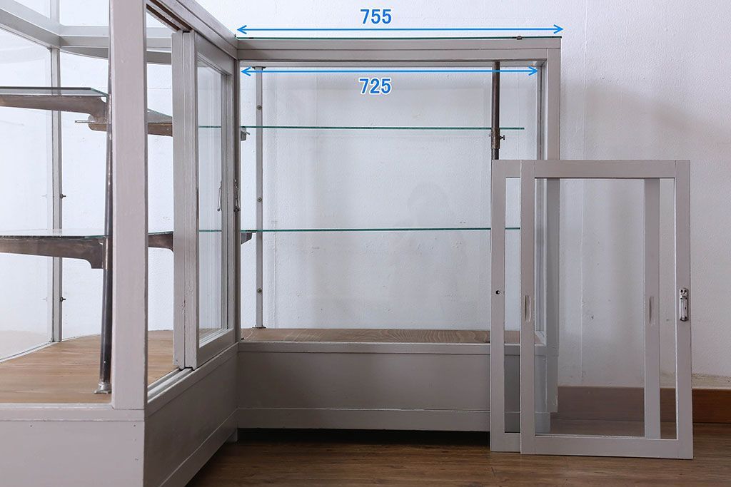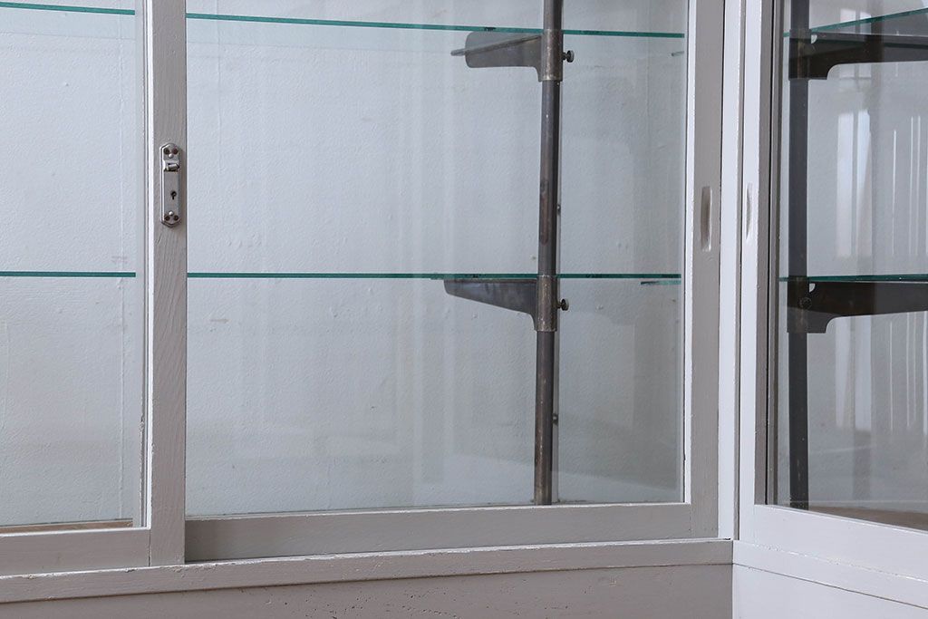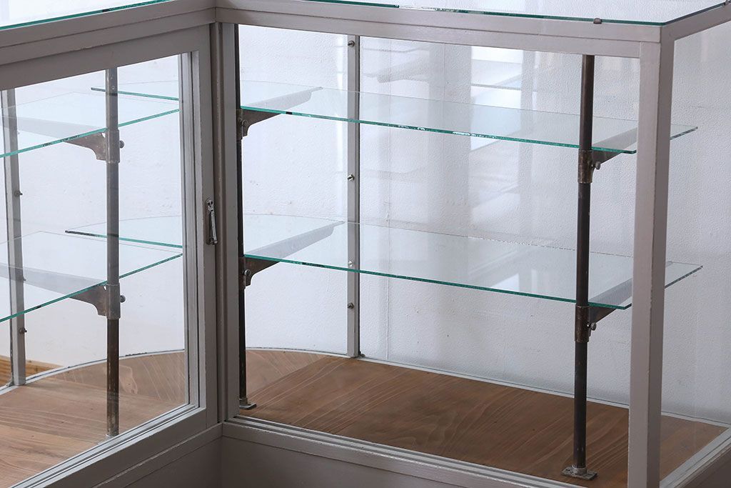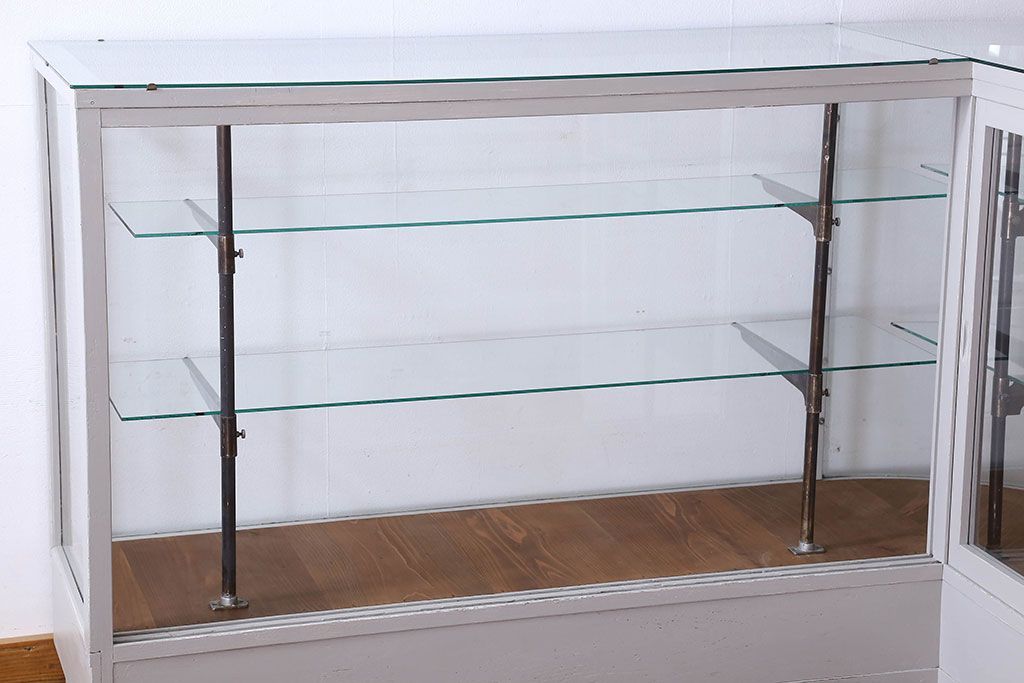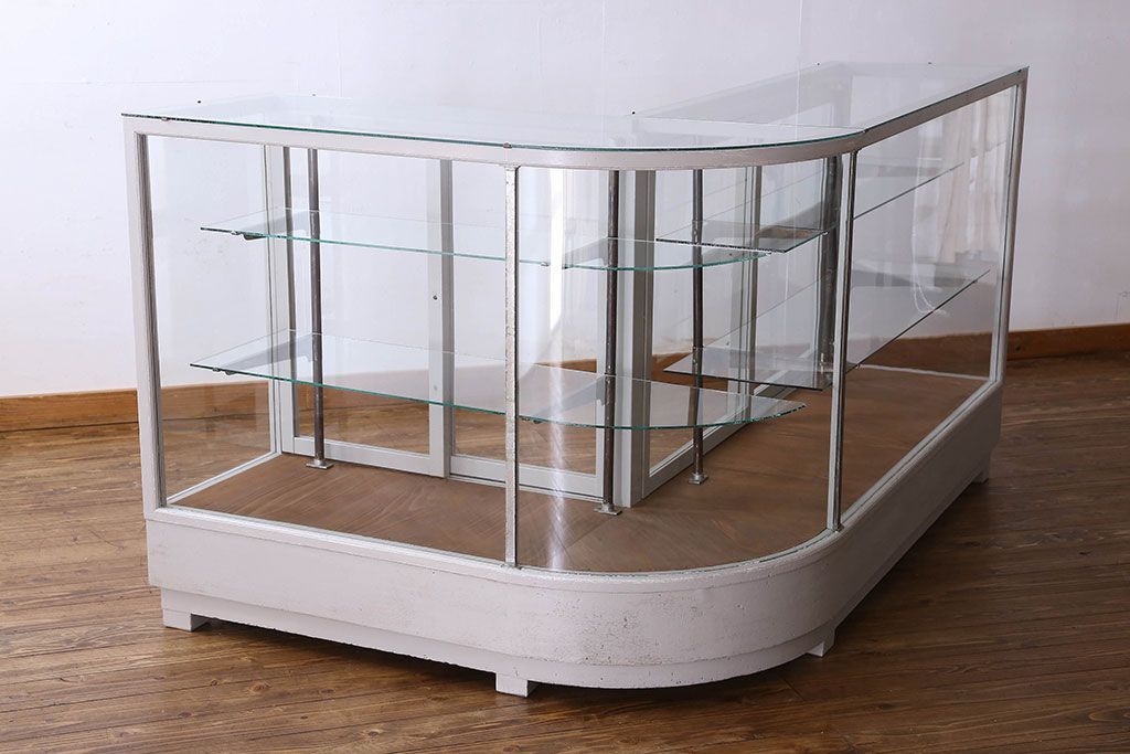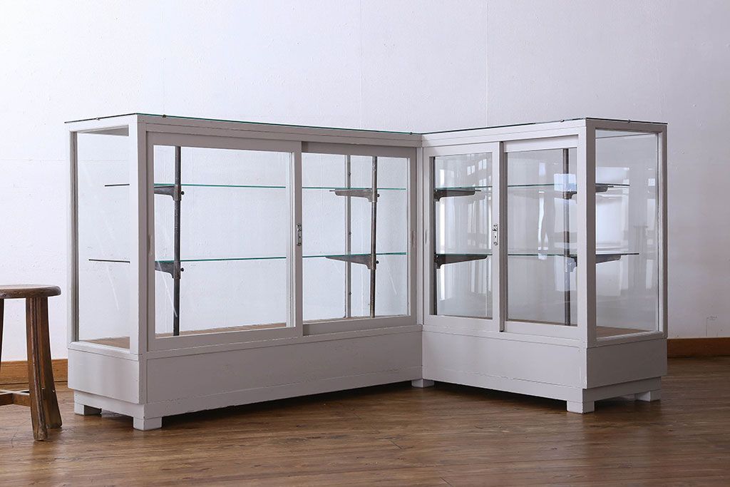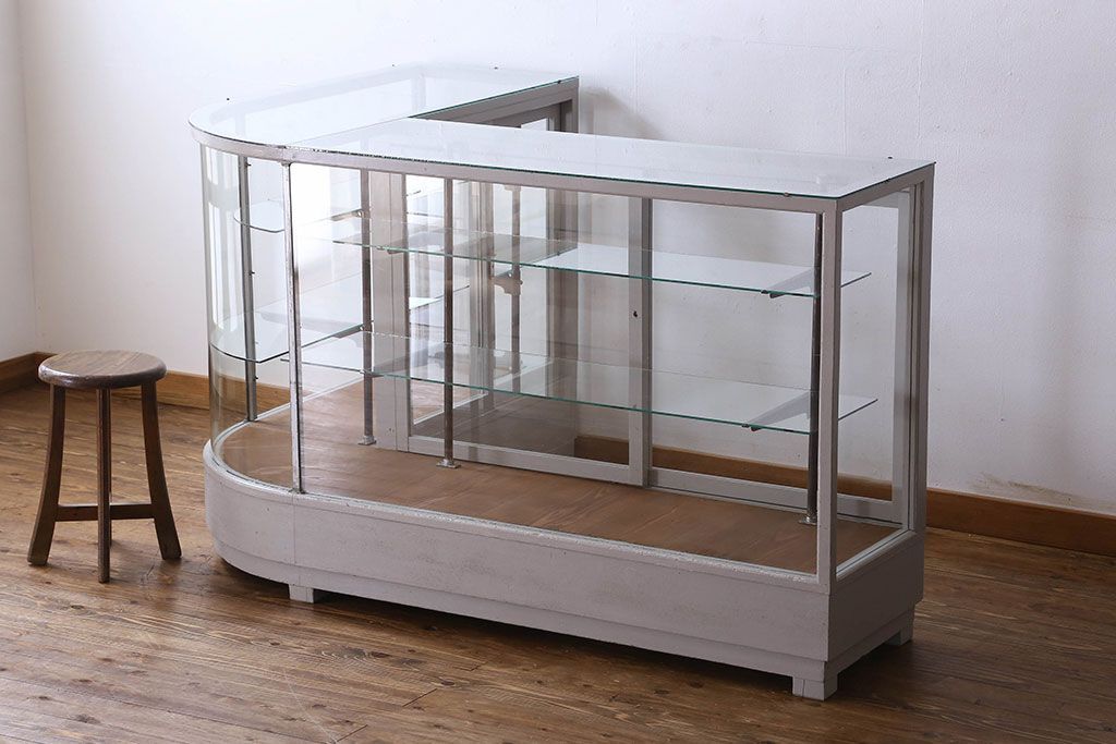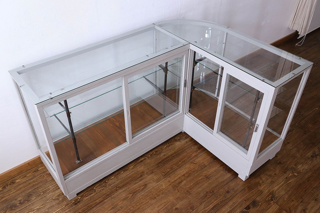 ラフジュ工房> ガラスケース・ショーケース> L型ショーケース > ペイント家具 落ち着きのあるナチュラルな雰囲気が魅力的なショーケース(ガラスケース、陳列棚、飾り棚)