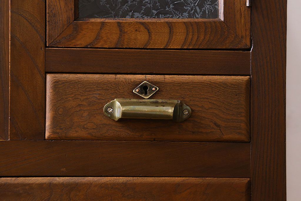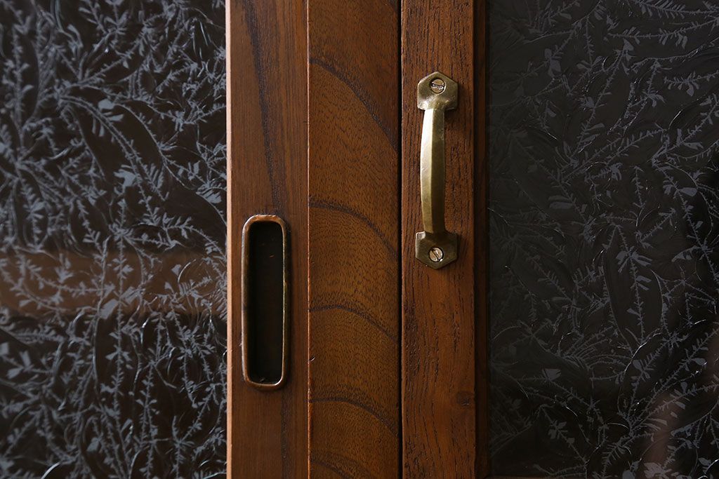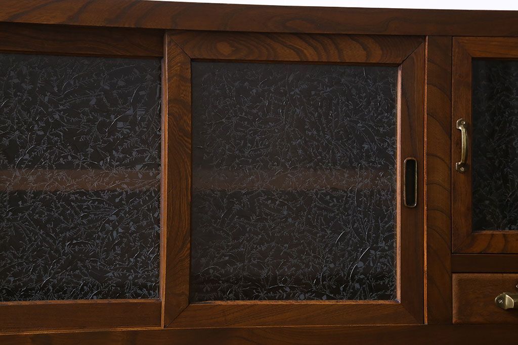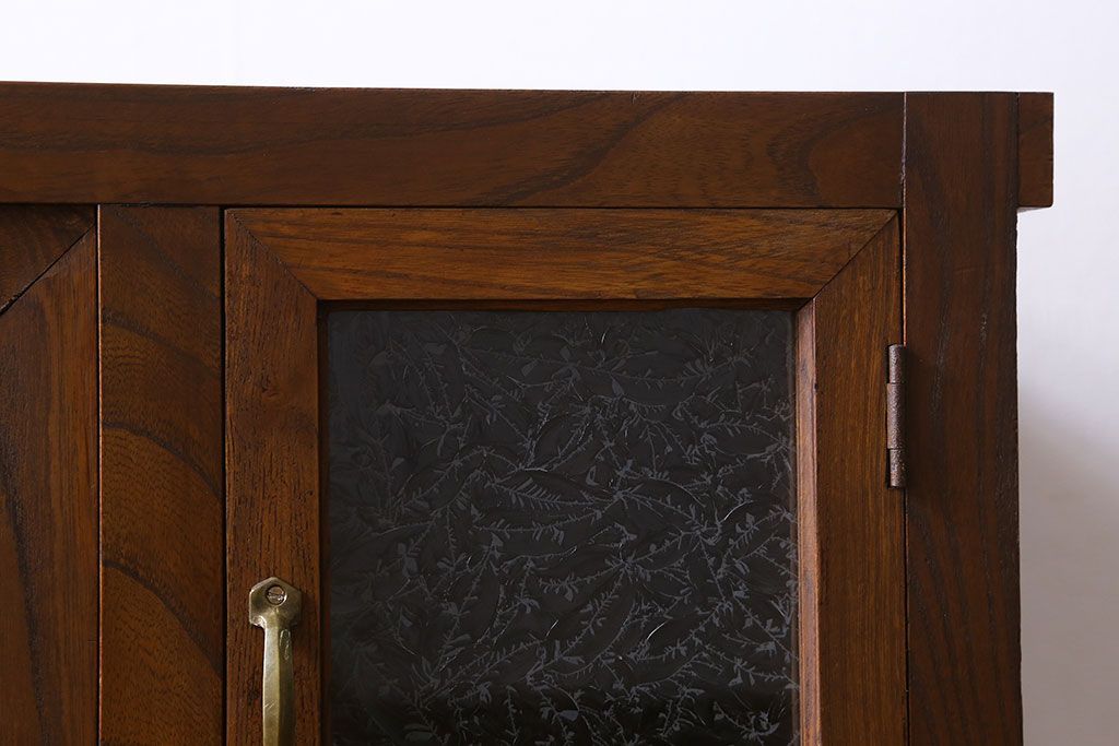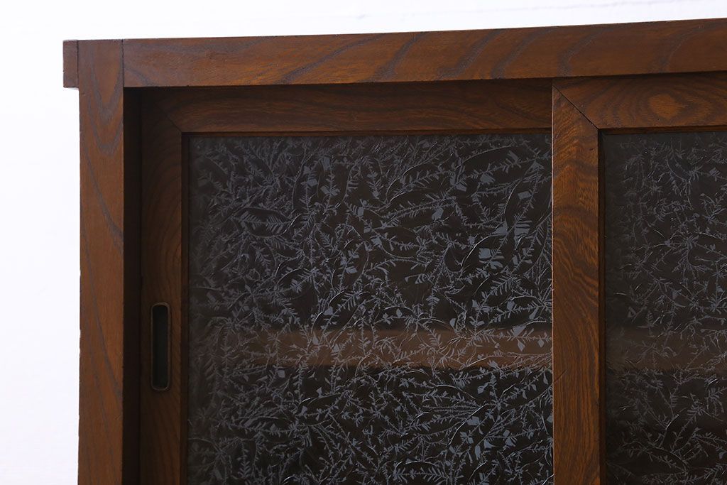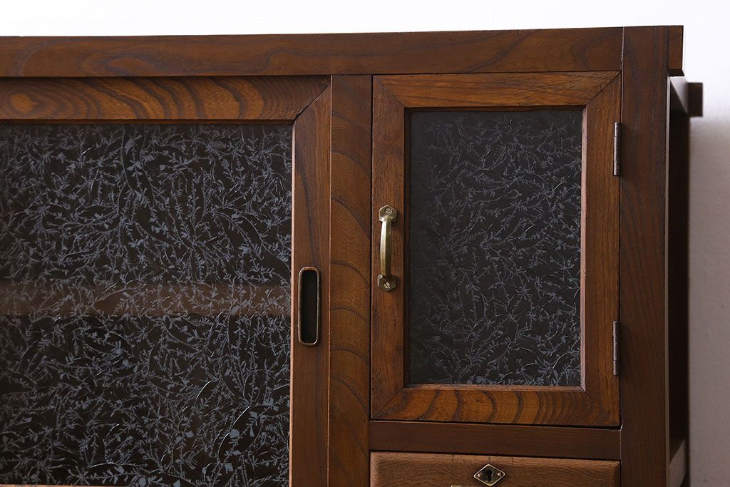 レトロ家具 和製アンティーク 結霜ガラス入り レトロな脚付きキャビネット(収納棚、テレビボード)