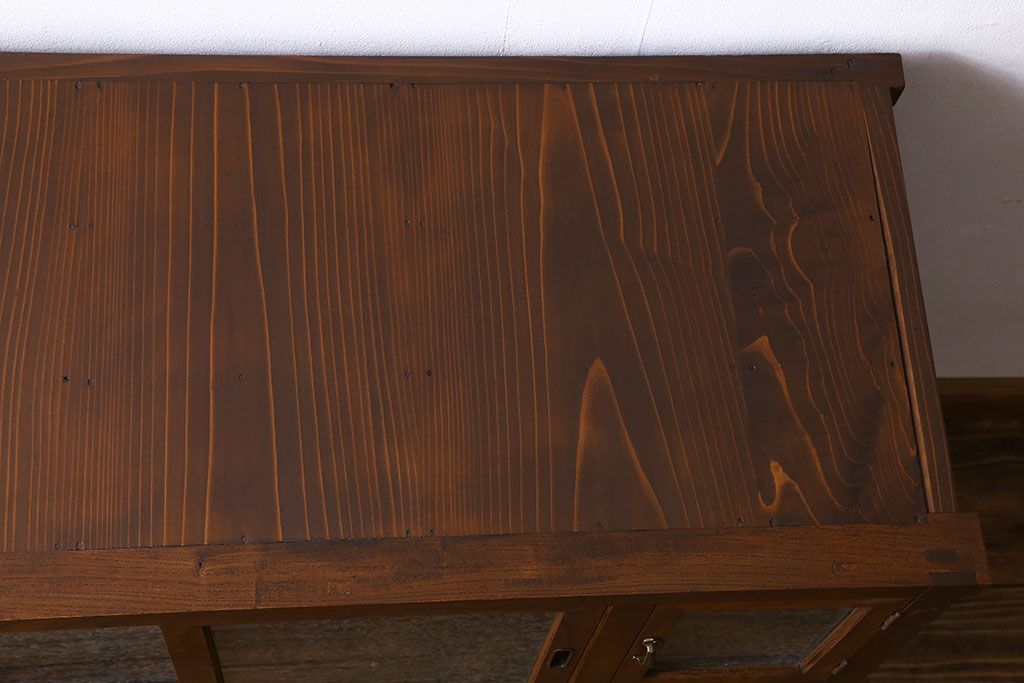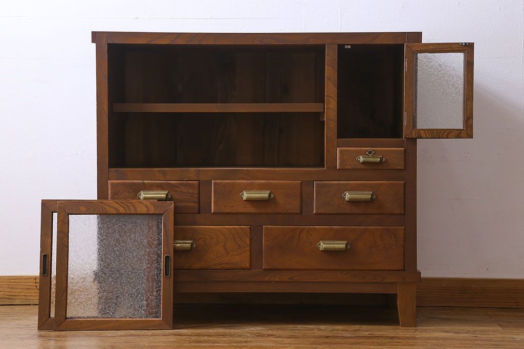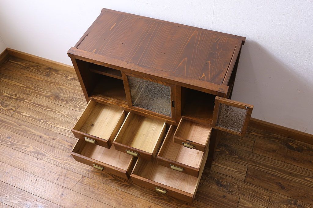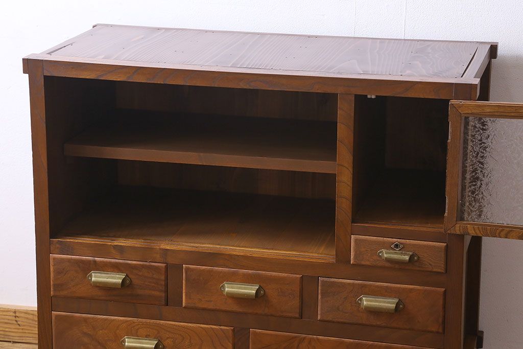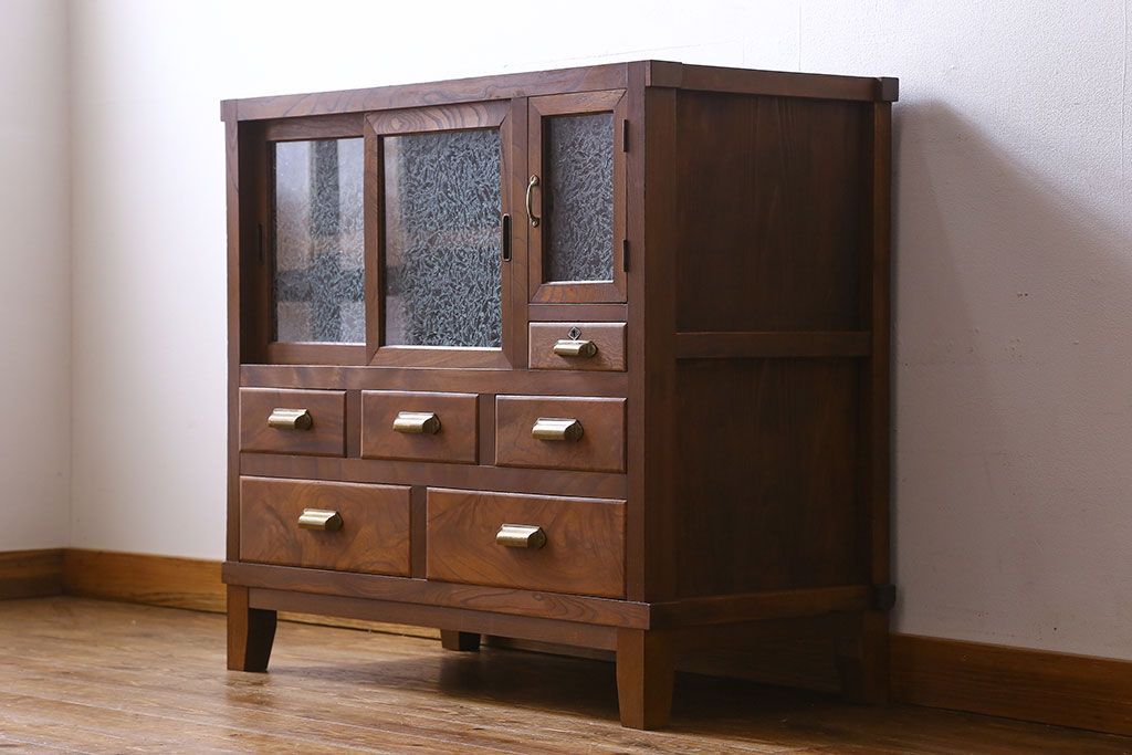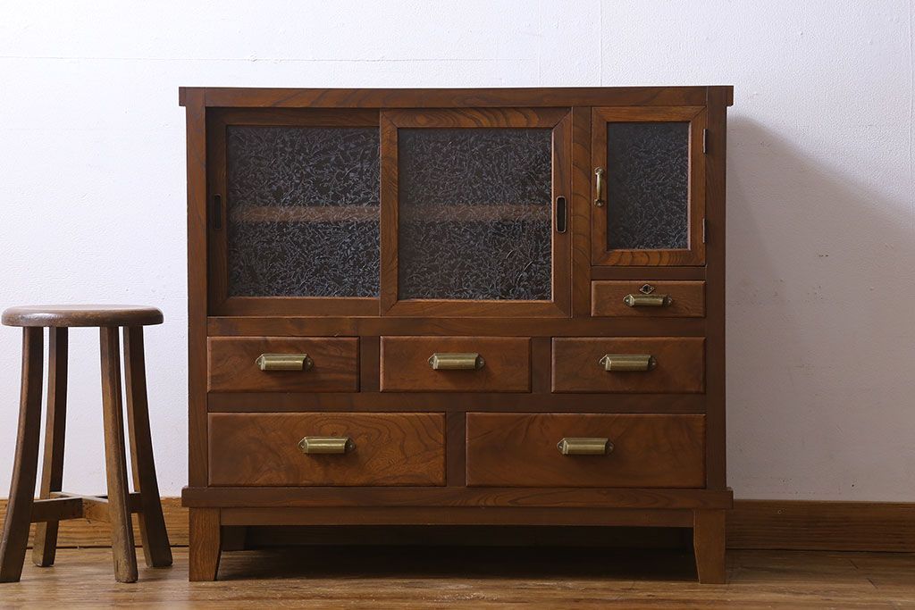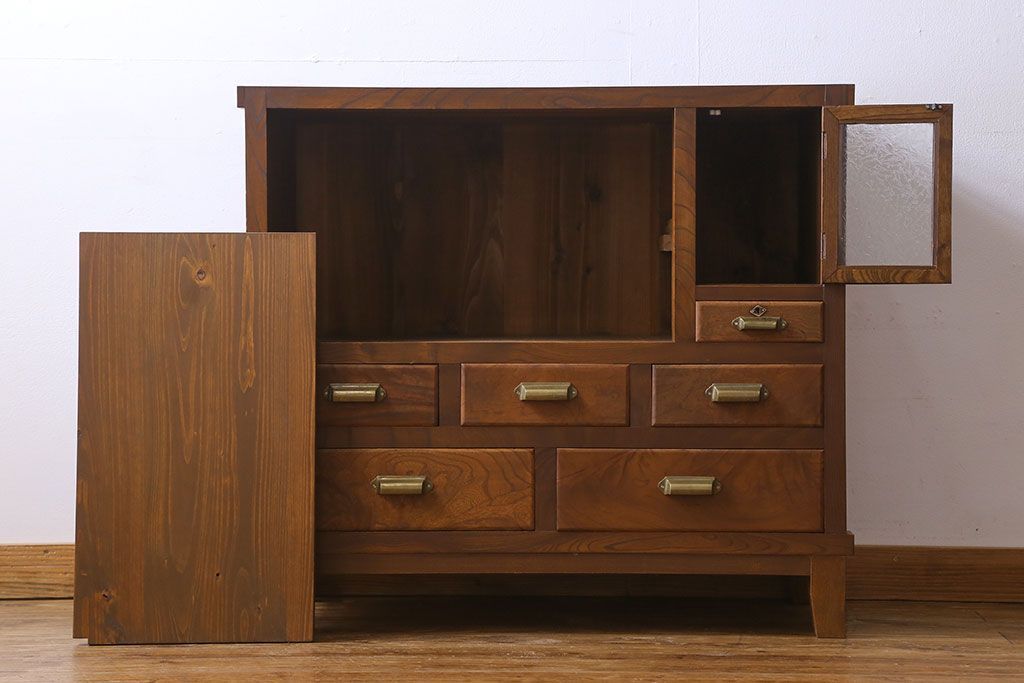 レトロ家具 和製アンティーク 結霜ガラス入り レトロな脚付きキャビネット(収納棚、テレビボード)