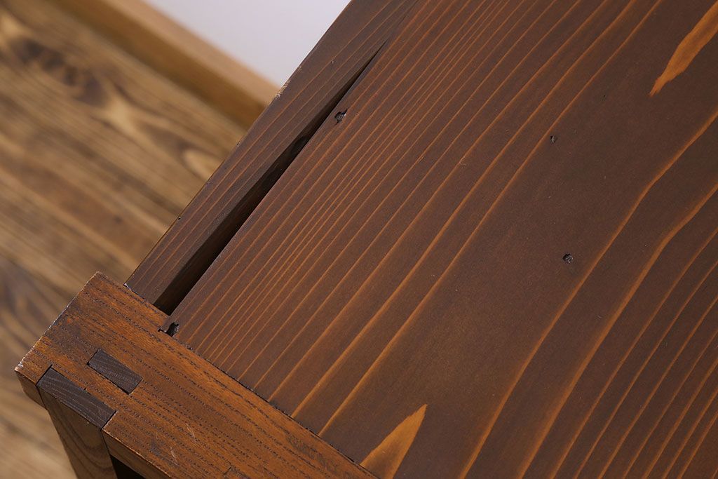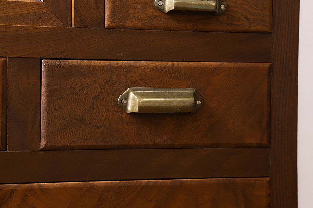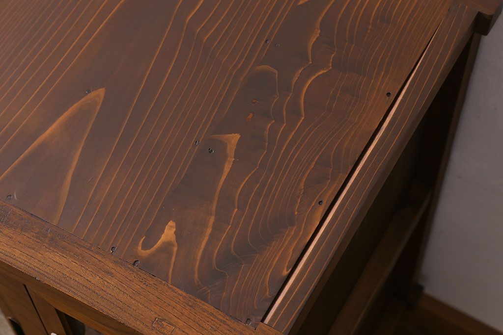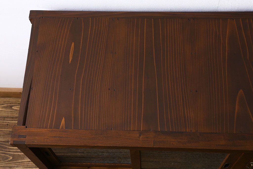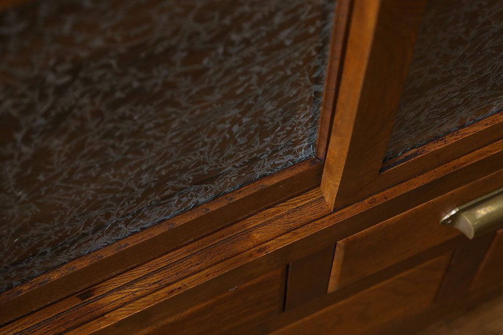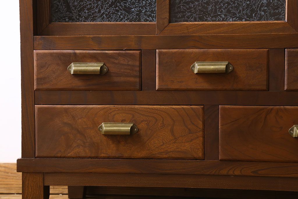 レトロ家具 和製アンティーク 結霜ガラス入り レトロな脚付きキャビネット(収納棚、テレビボード)